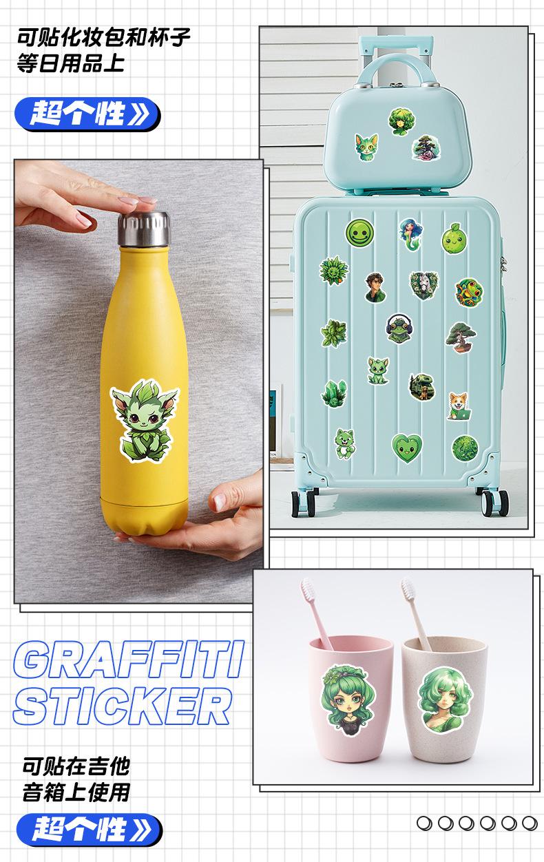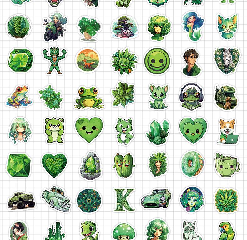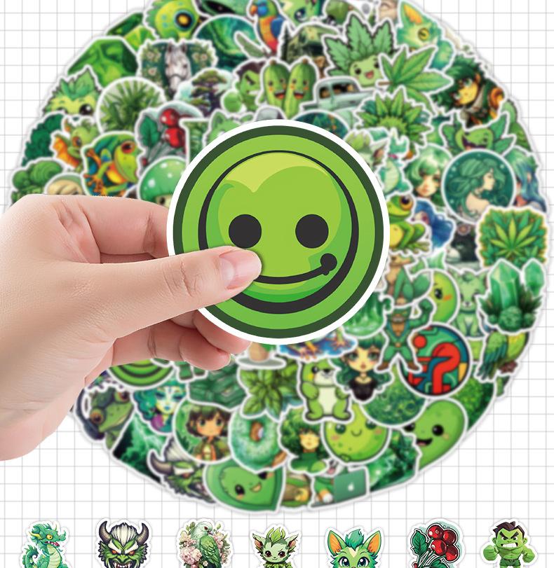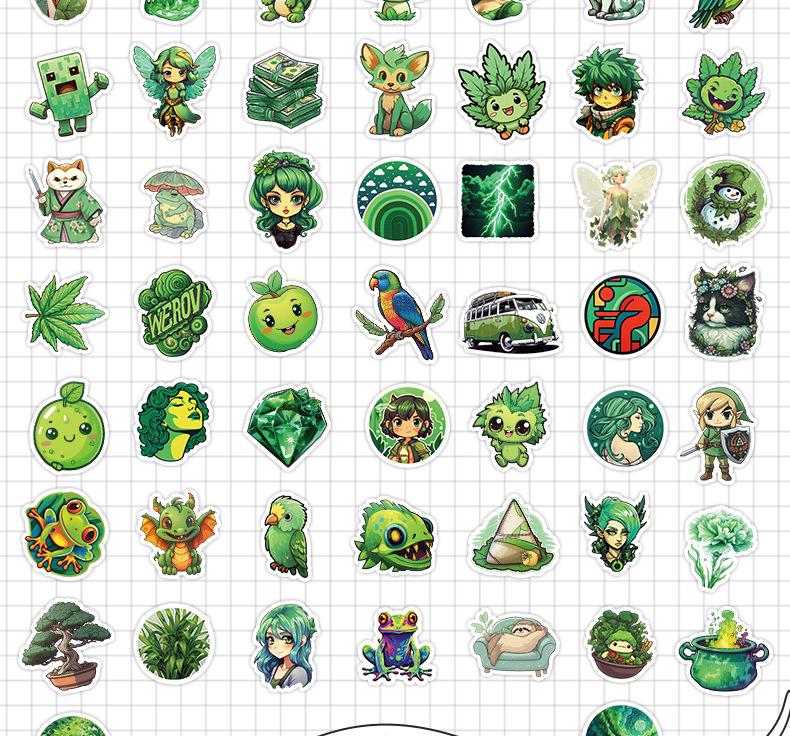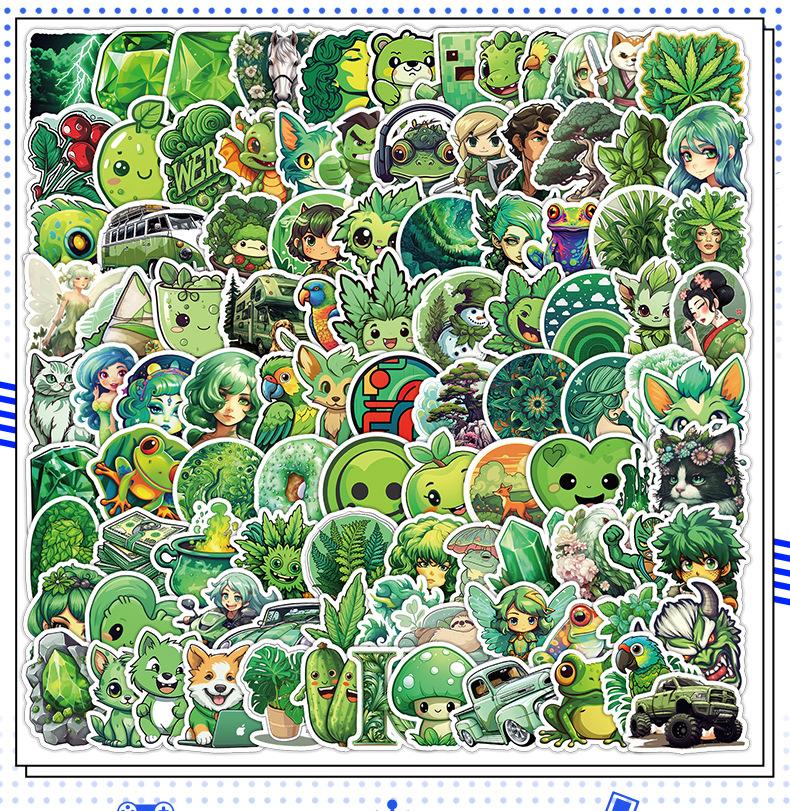 100 pegatinas de grafiti verdes para teléfono móvil, taza de agua, equipaje, pegatinas decorativas impermeables, pegatinas creativas para diario.