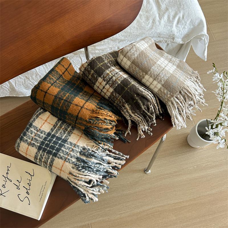 Otoño e Invierno nuevo suave glutinoso bufanda a cuadros para mujer tipo cachemira estilo coreano Dongdaemun versátil chal largo bufanda al por mayor