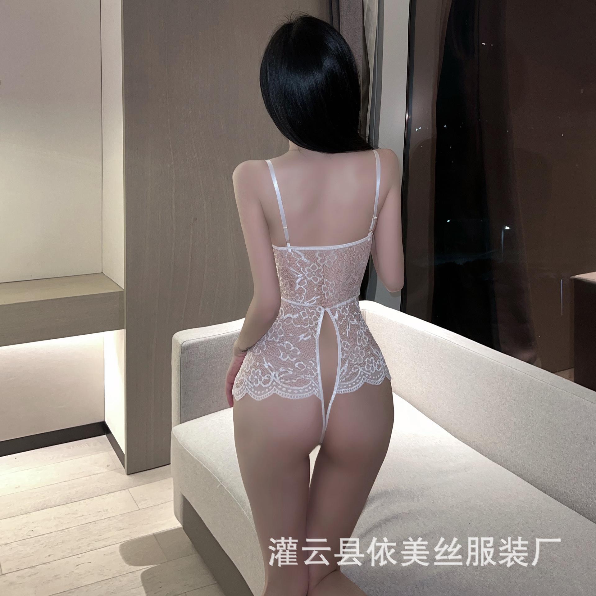 Lencería sexy Mandesire para mujer, mono de encaje con lazo, sexy, de extremo abierto, para cama libre, uniforme caliente, tentación sm