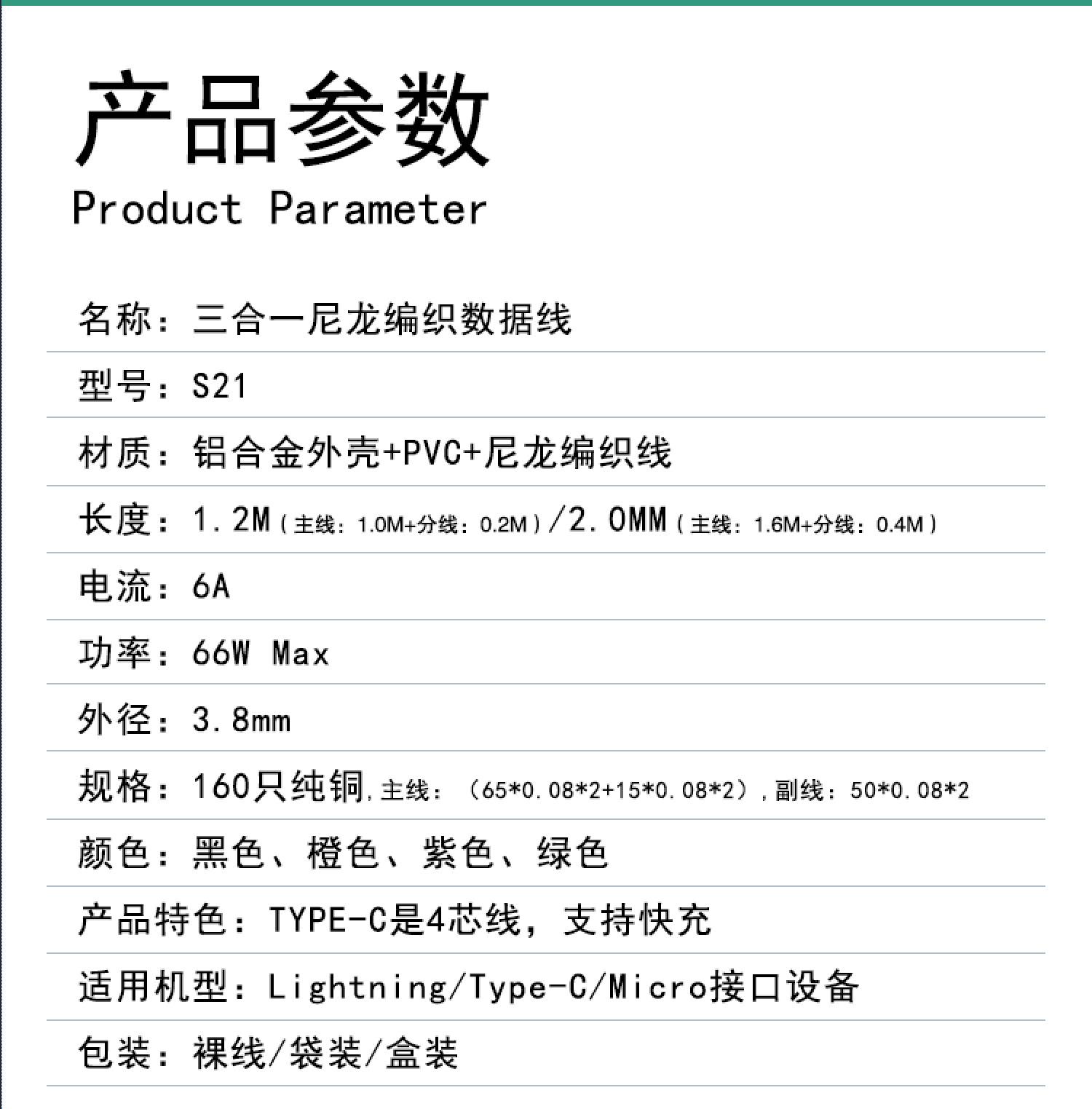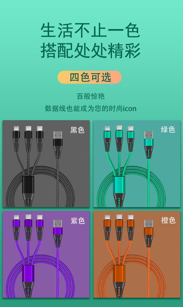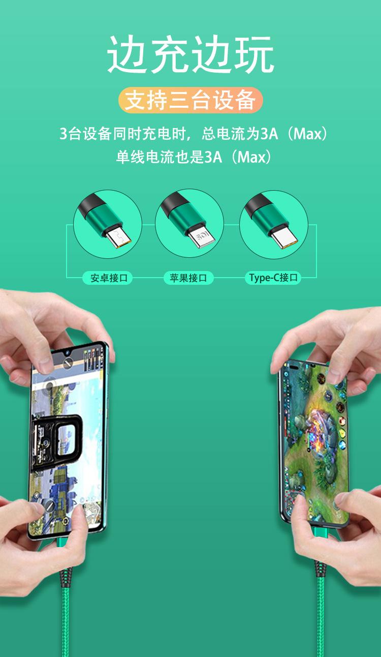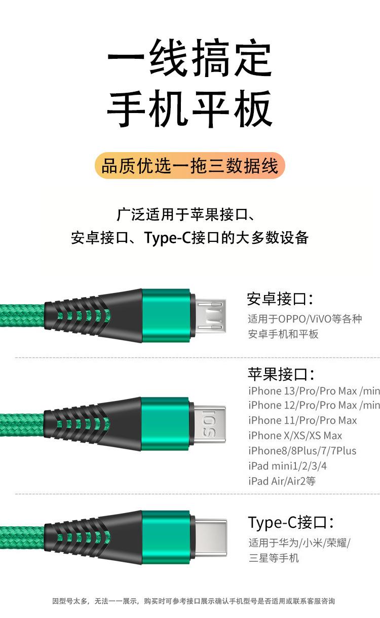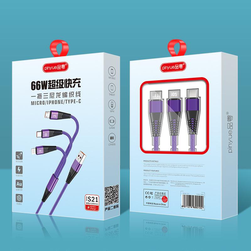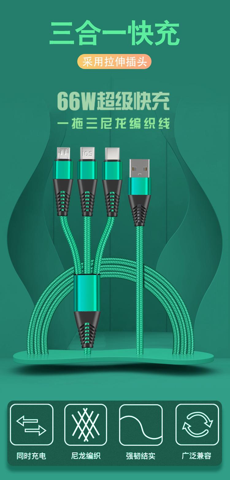Cable de Datos Tres en Uno de Carga Súper Rápida de 66W Cable Cargador Uno a Tres para typec Cable de Carga para Teléfono Móvil Huawei