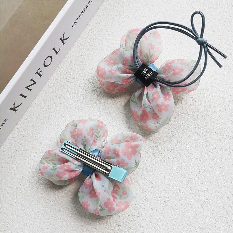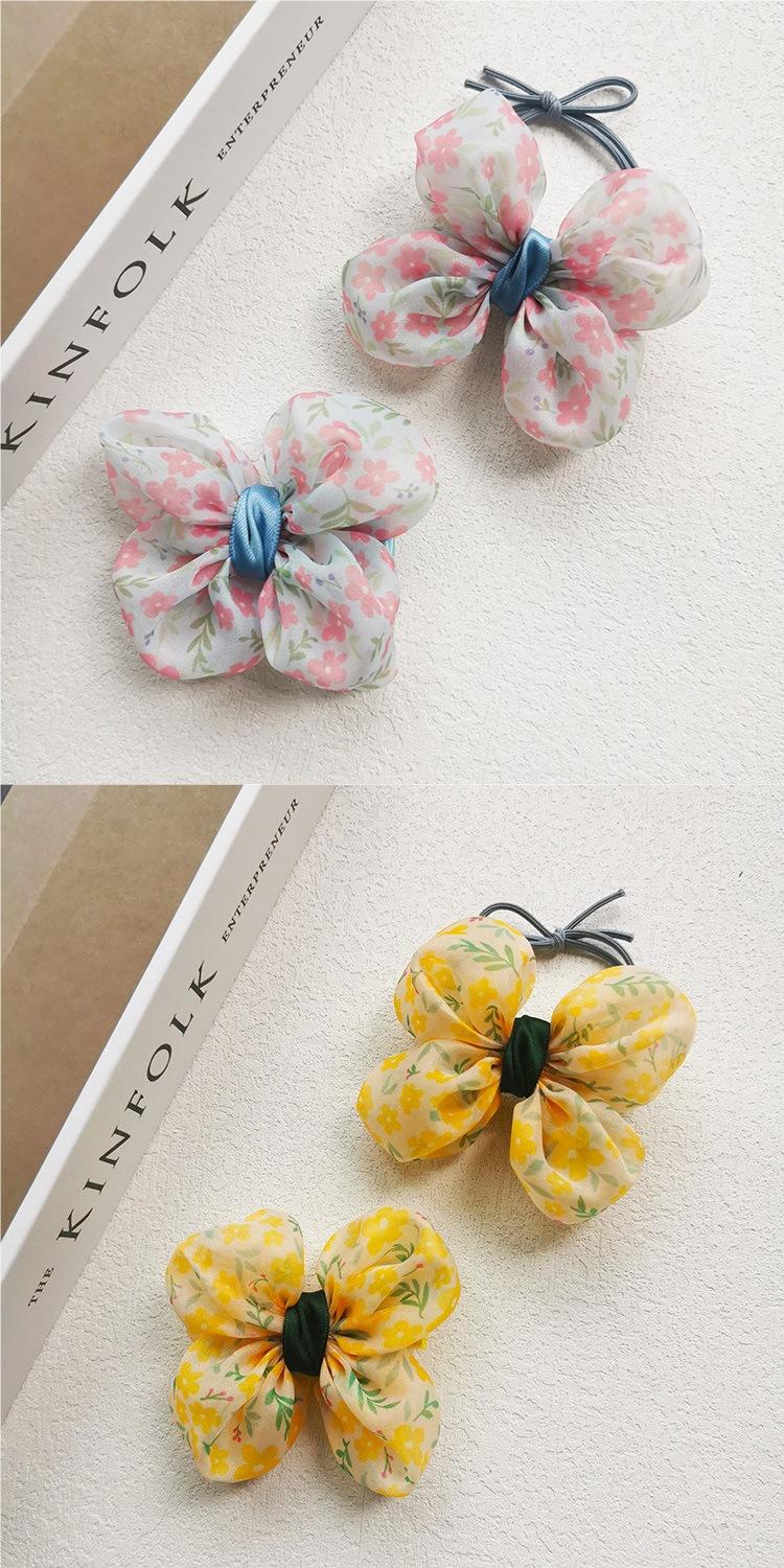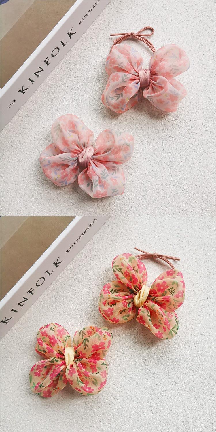 Nueva versión coreana de horquilla con lazo floral pequeño para niña, anillo para el cabello dulce con cabeza de bolas, accesorios para el cabello de princesa, al por mayor