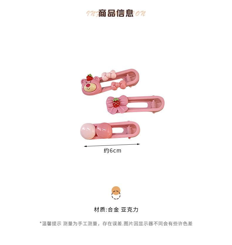 Horquilla de dibujos animados para niños, accesorios para el cabello de oso de fresa, flequillo lateral para niñas, pinza para el cabello rota, pinza BB, tocado de niña pequeña, horquilla