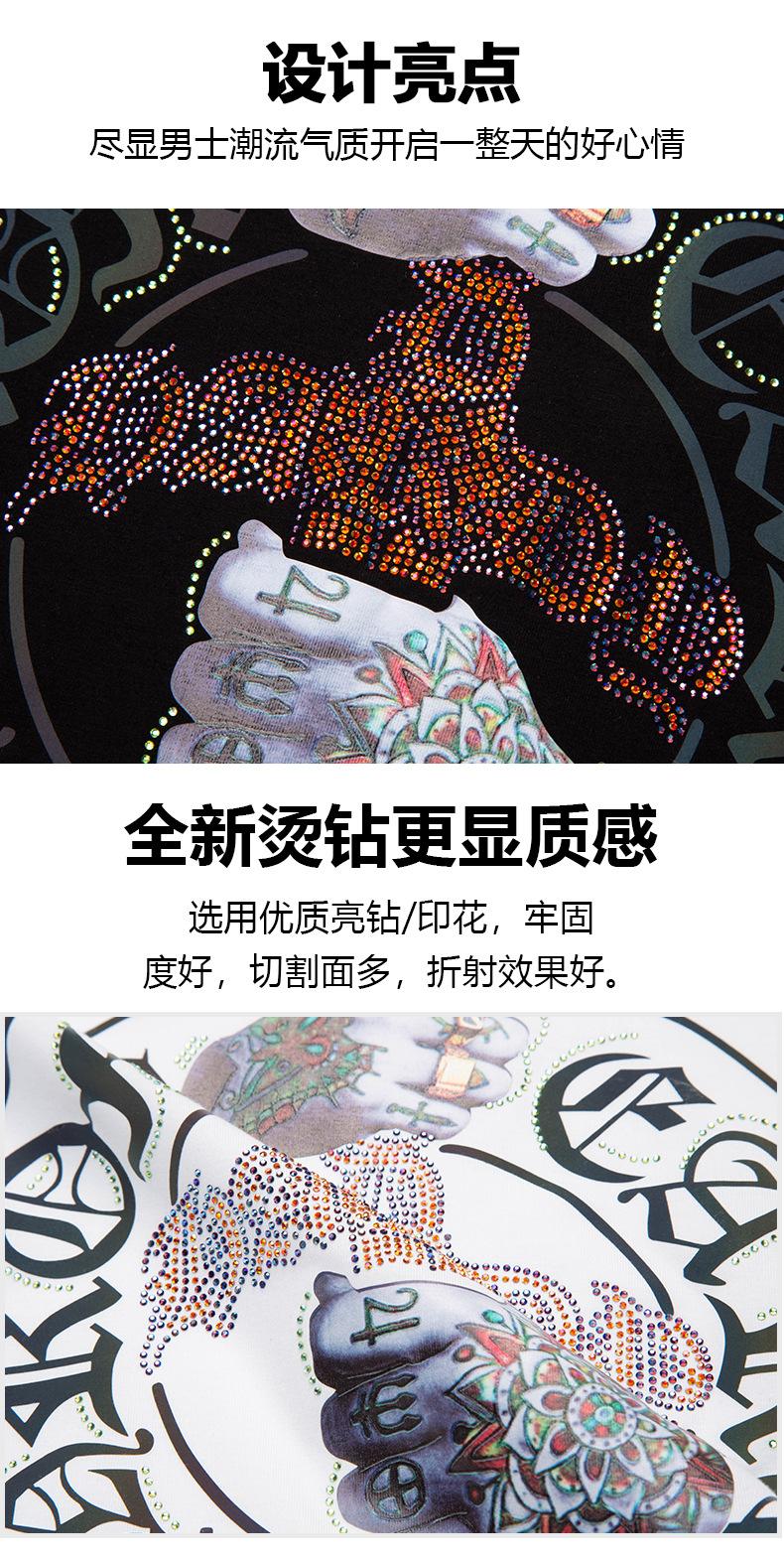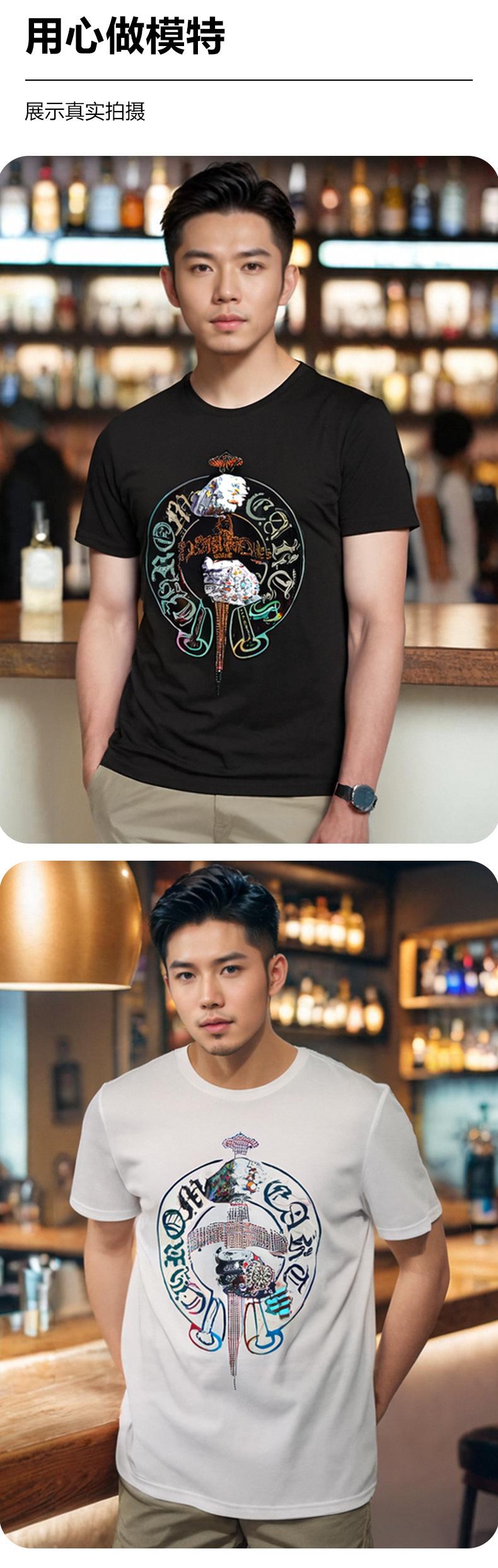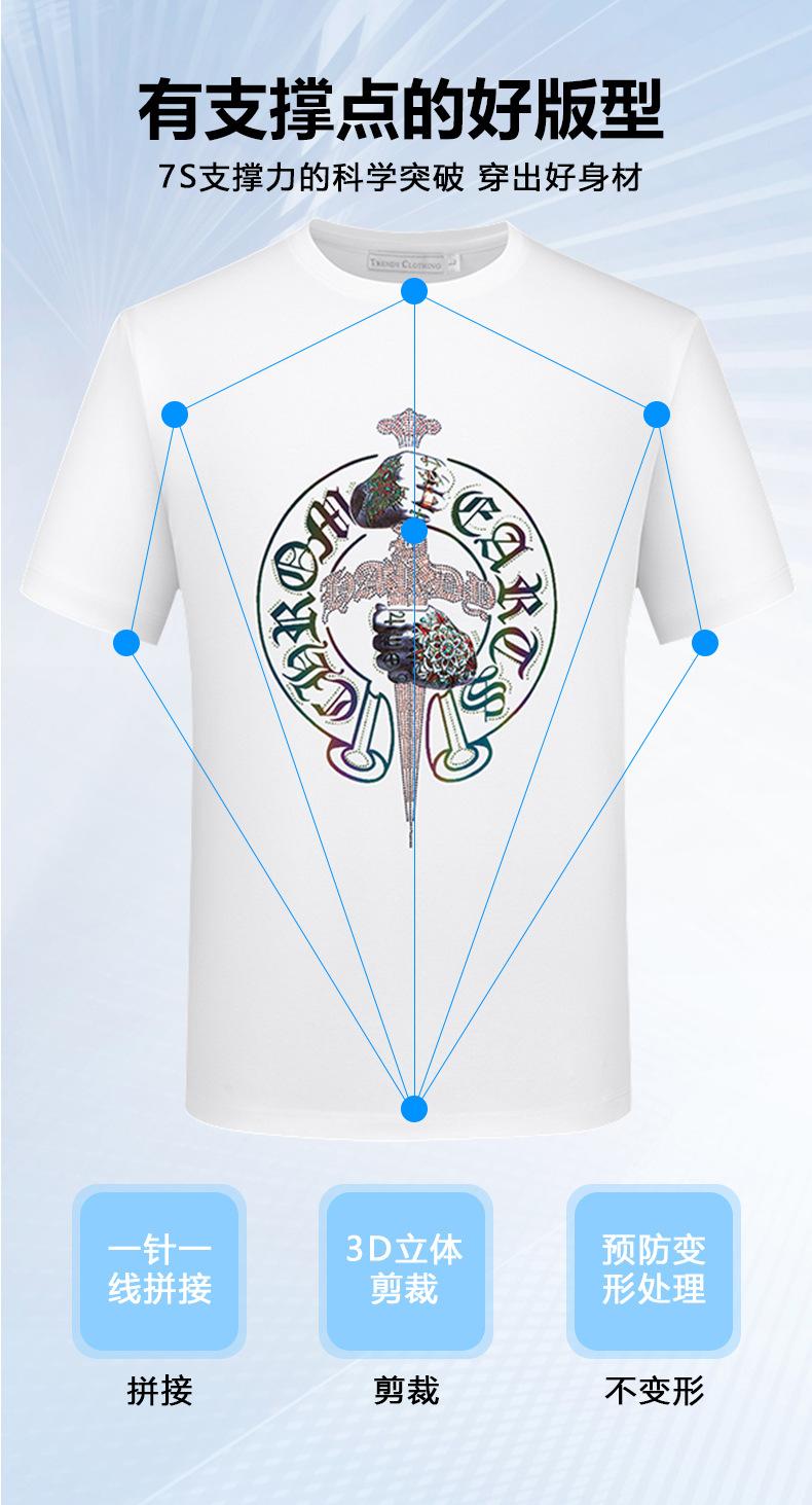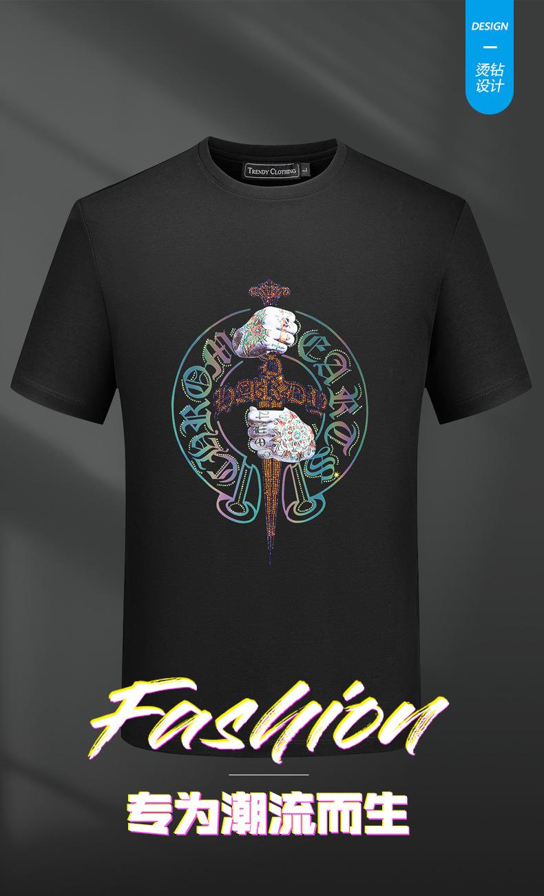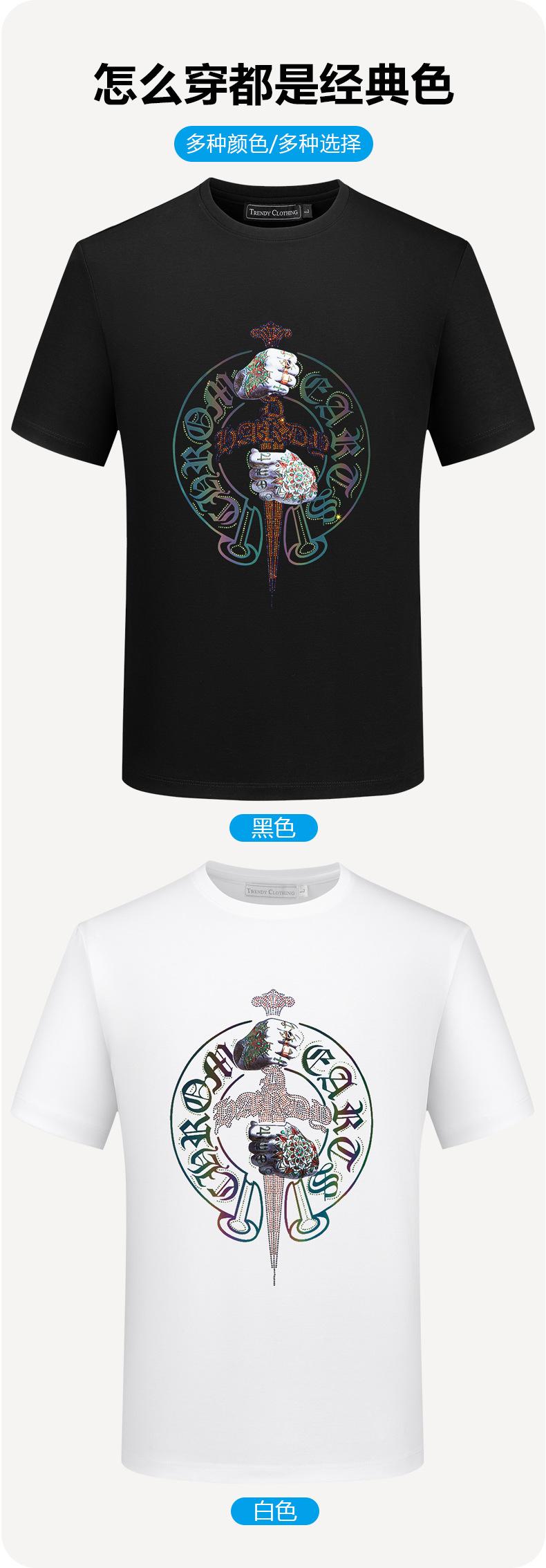 Playera de Manga Corta de Marca de Moda para Hombre 2025 Nuevo Verano Ropa Estampada con Diamantes Calientes Algodón Mercerizado Talla Grande para Hombre Maduro y Estable