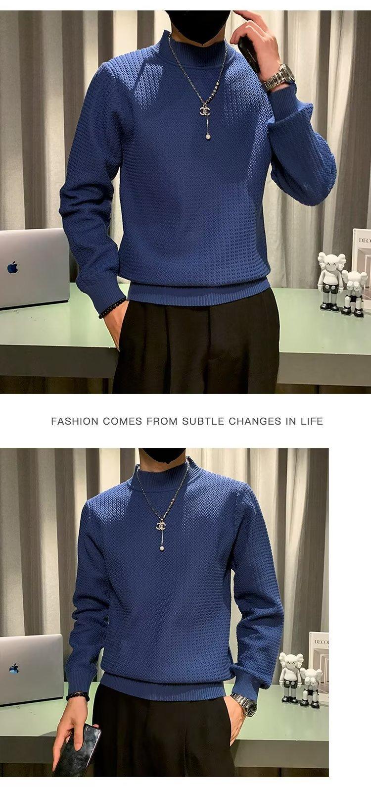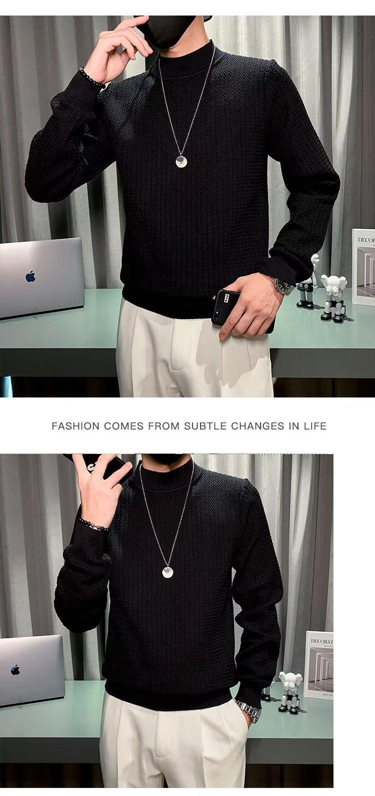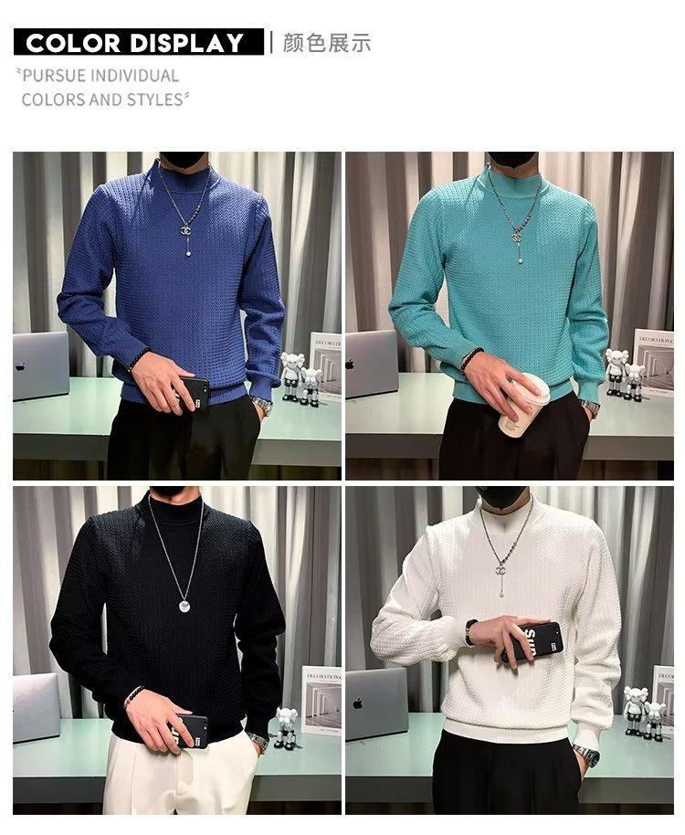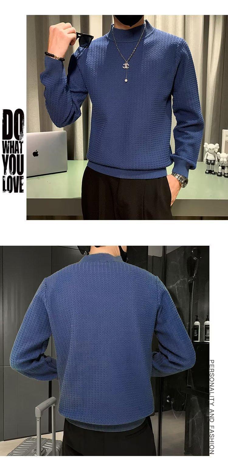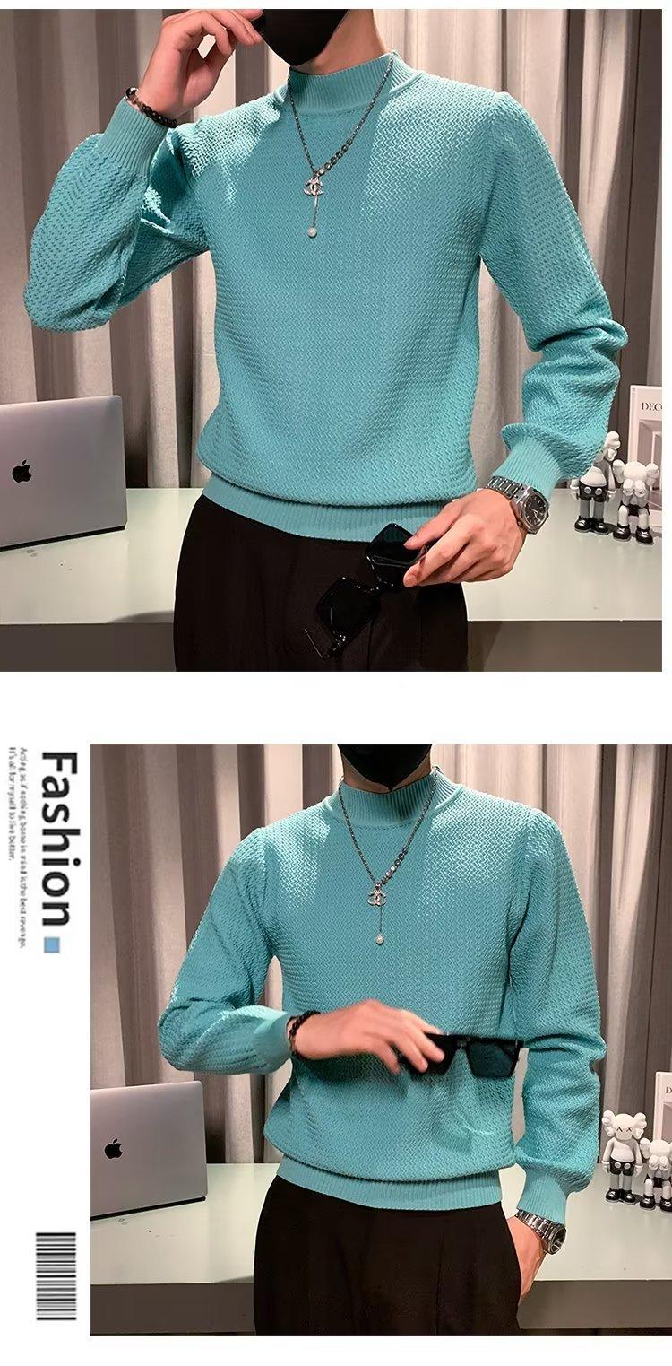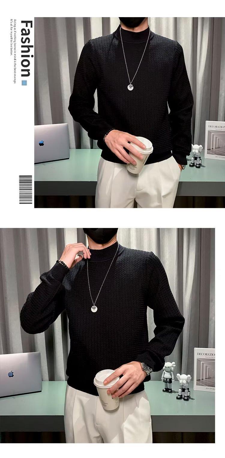 Suéter de cuello alto medio para hombre, otoño e invierno, estilo coreano, camisa interior de punto entallada, suéter de color sólido versátil de alta calidad a la moda