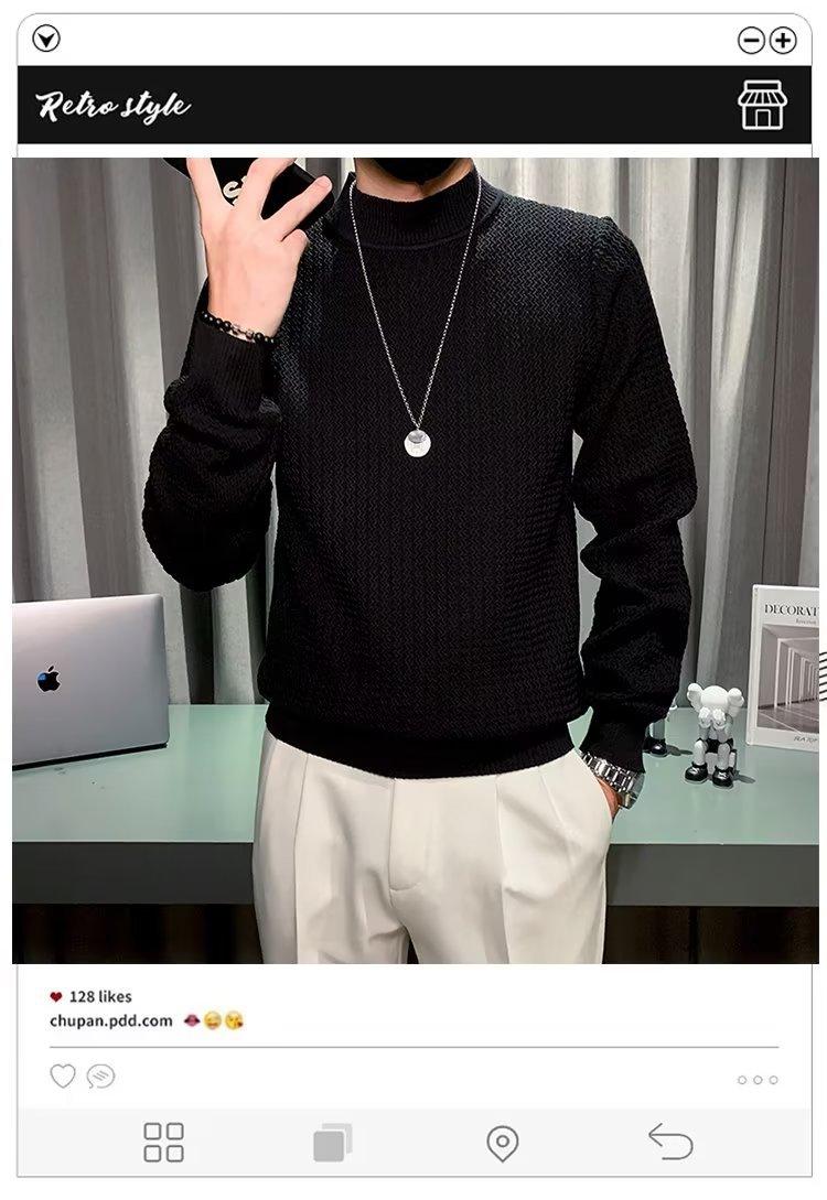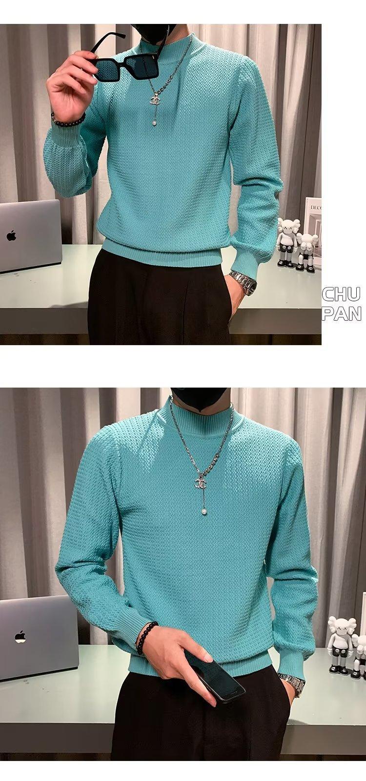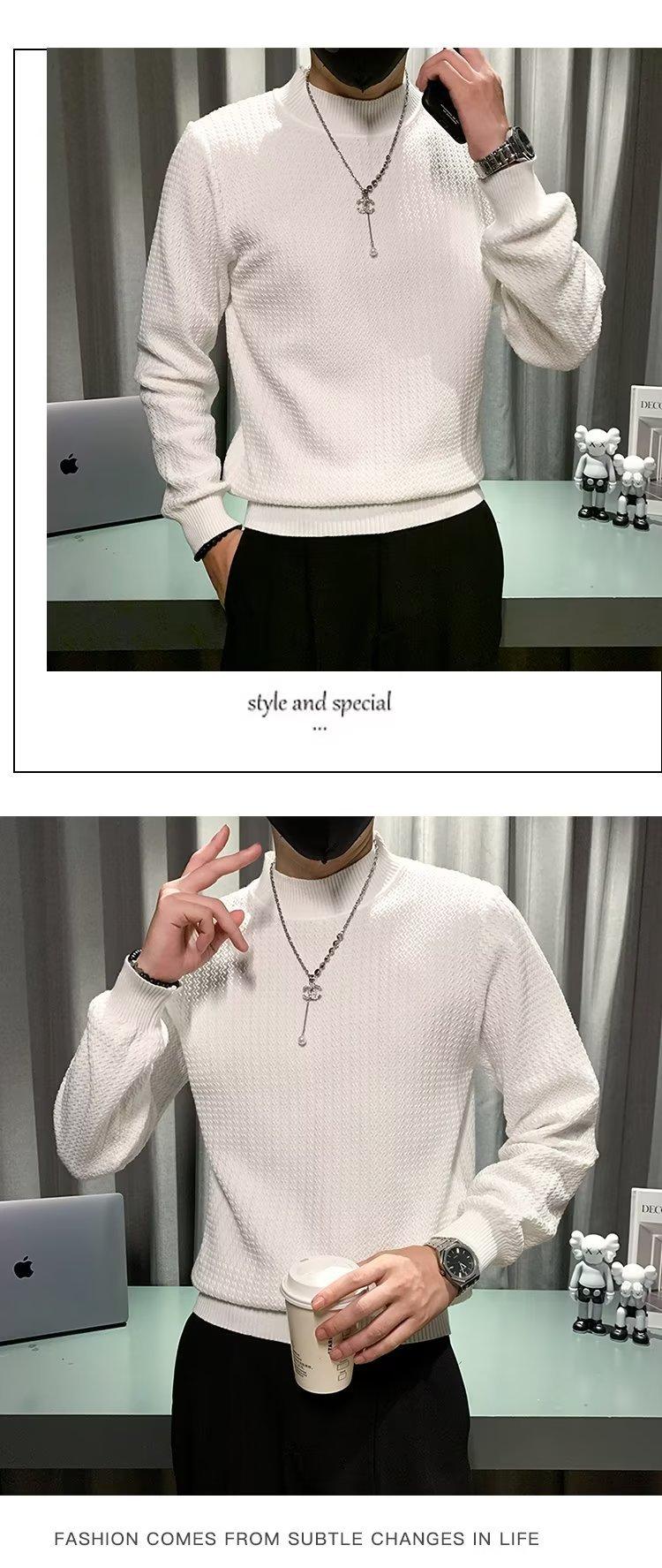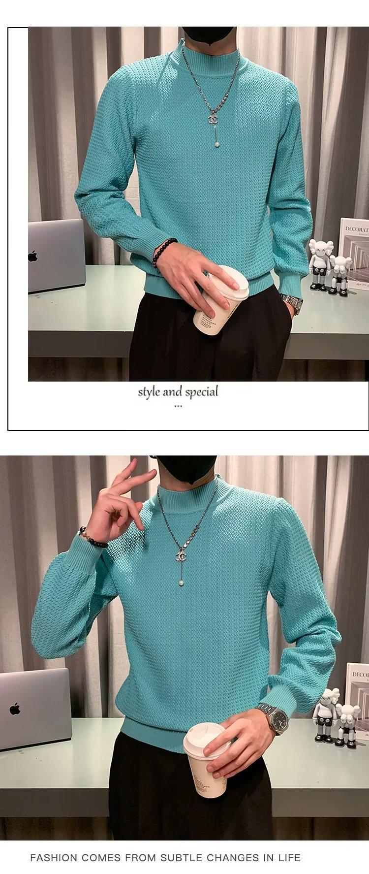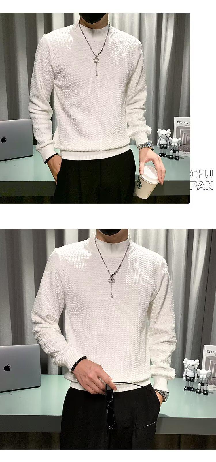 Suéter de cuello alto medio para hombre, otoño e invierno, estilo coreano, camisa interior de punto entallada, suéter de color sólido versátil de alta calidad a la moda