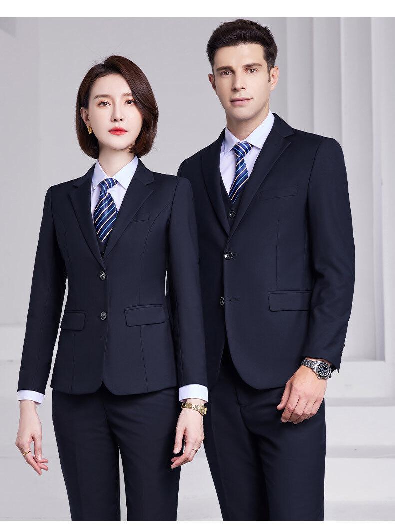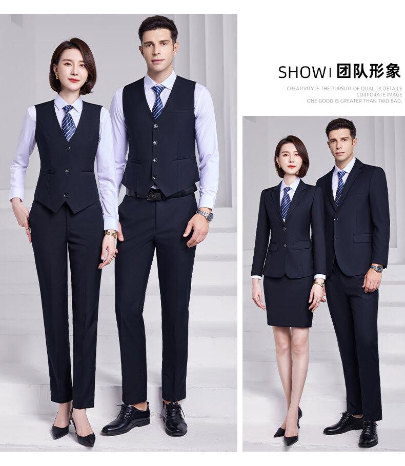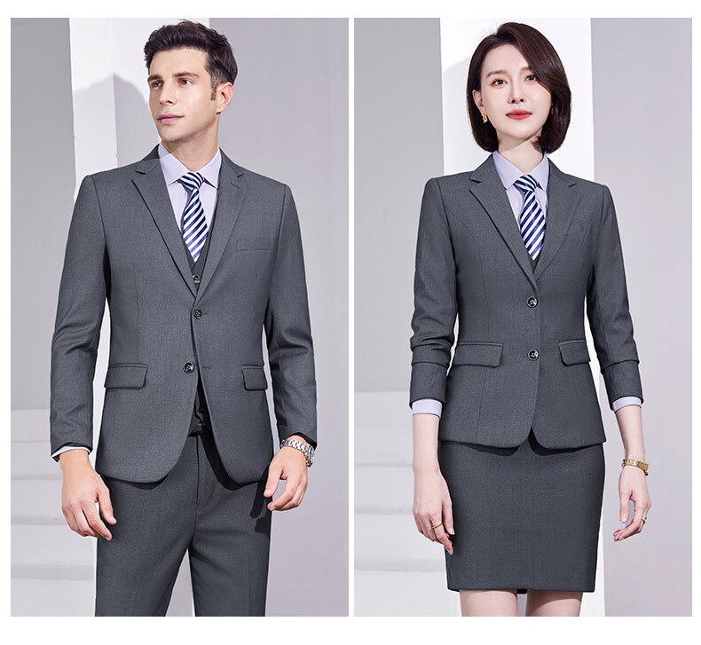 Traje slim de negocios gris de alta gama para hombre y mujer, traje chaleco de ropa de negocios igual, overol de maestro de tienda 4s