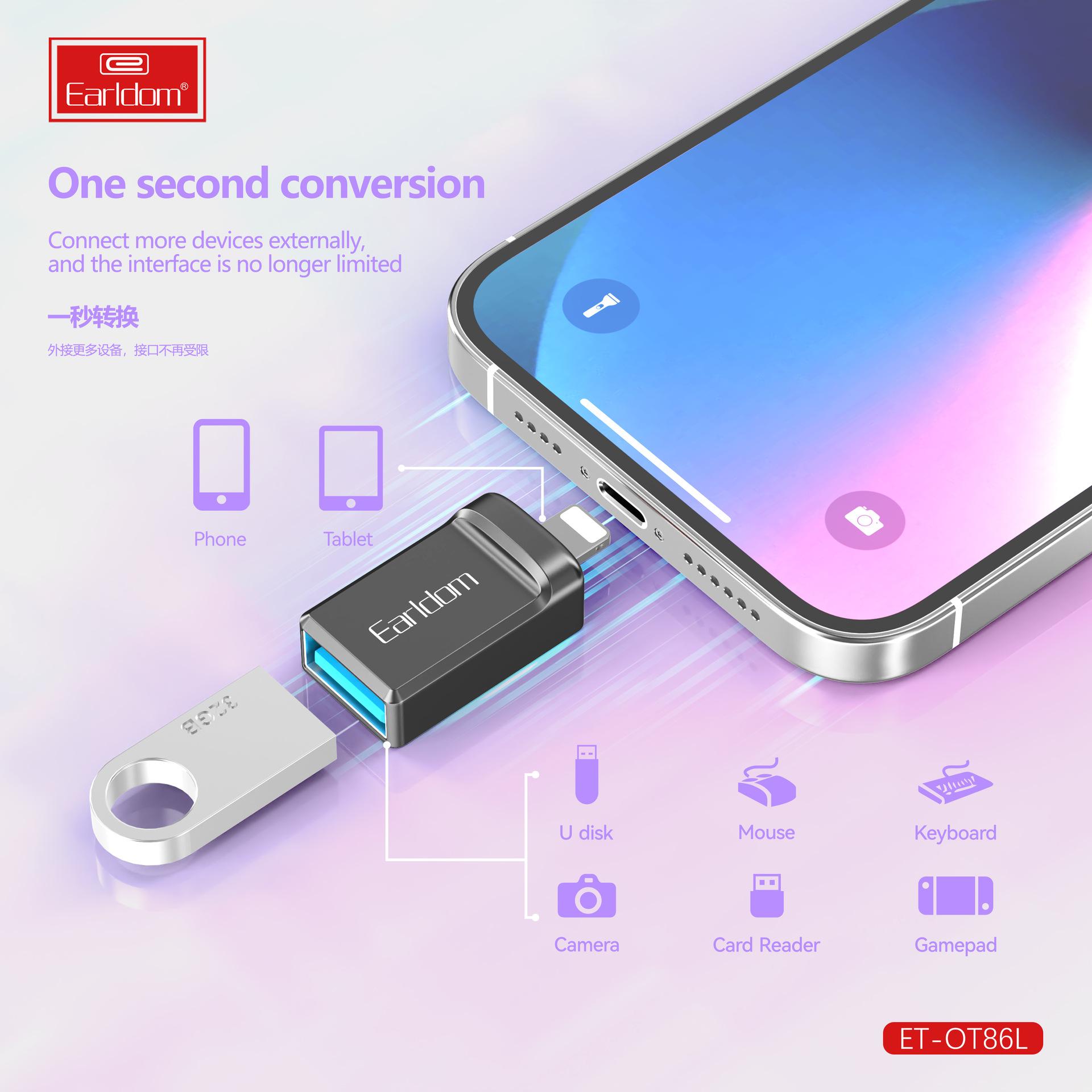 Aplicable al adaptador OTG de Apple, lector de tarjetas de sonido de disco U, adaptador Lightning, USB, iPhone y teléfono móvil.