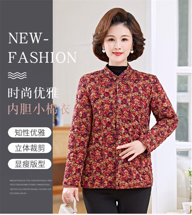 Abrigo acolchado de algodón para otoño e invierno de mamá, chaqueta acolchada de algodón para mujeres de mediana edad y mayores, abrigo interior cálido acolchado de algodón, ropa exterior, abrigo grueso a prueba de frío
