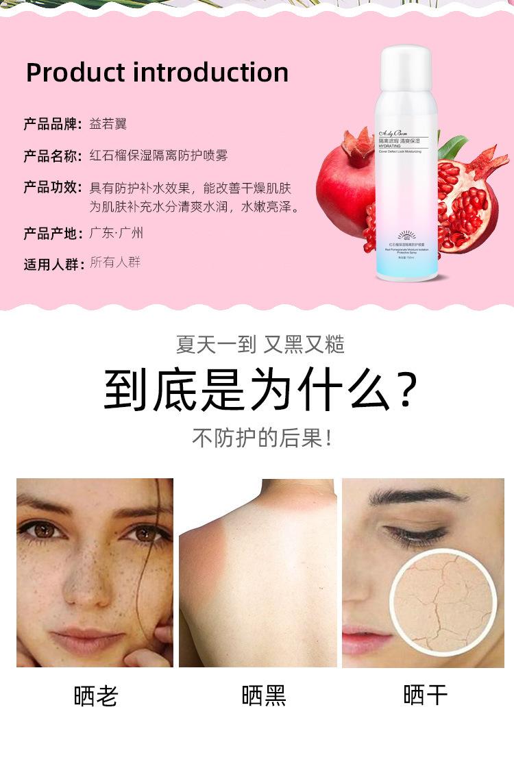 Spray protector de granada roja Yi Ruoyi hidratante aislante UV resistente al agua a prueba de sudor hidratante refrescante no graso