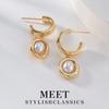 Pendientes de acero inoxidable con diseño de nicho simple y moderno de estilo universitario para mujer con circonitas cúbicas huecas.