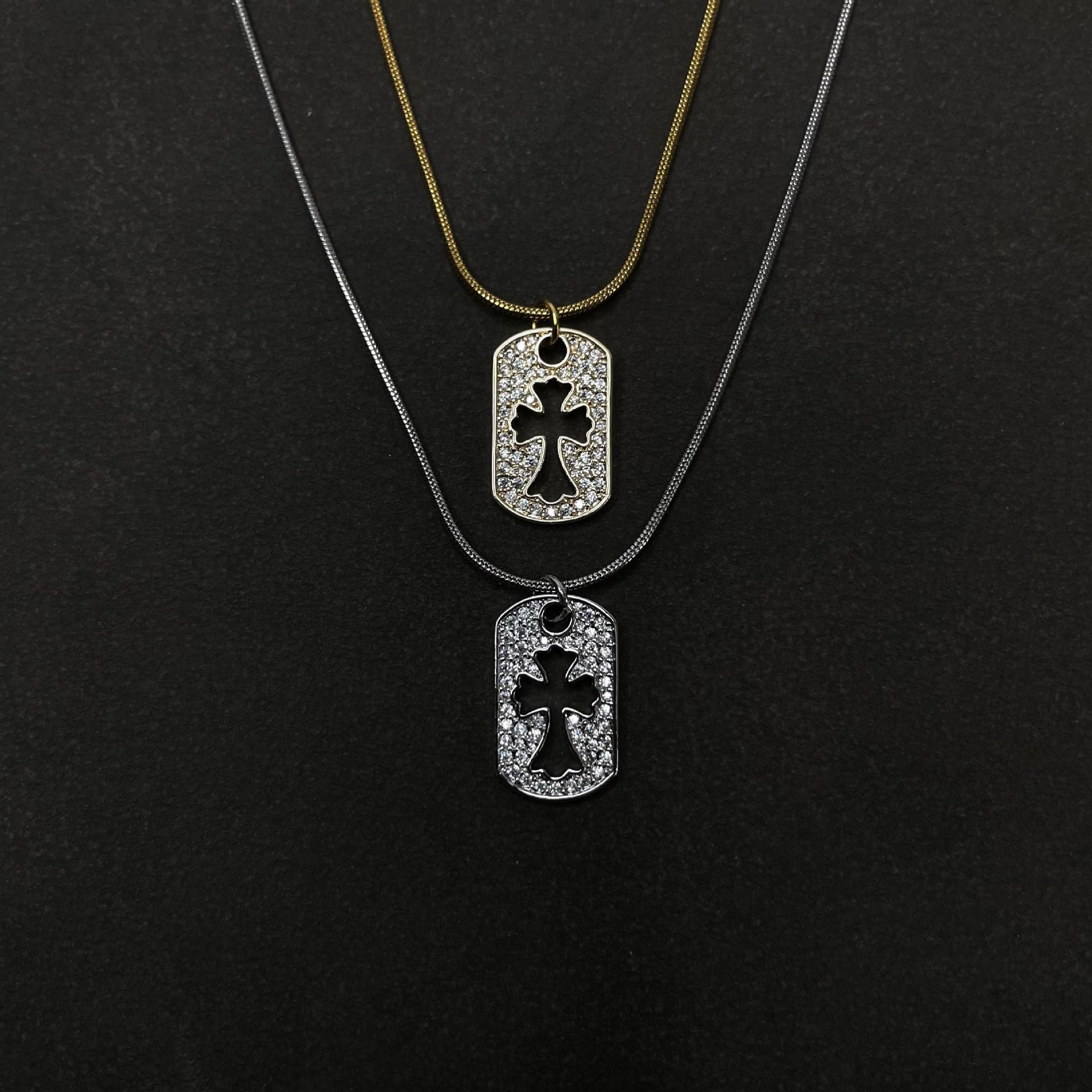 Compra Collar fino con colgante cuadrado hueco y crucífero de diamantes y circonitas, selección original de nicho al por mayor en Joom.pro