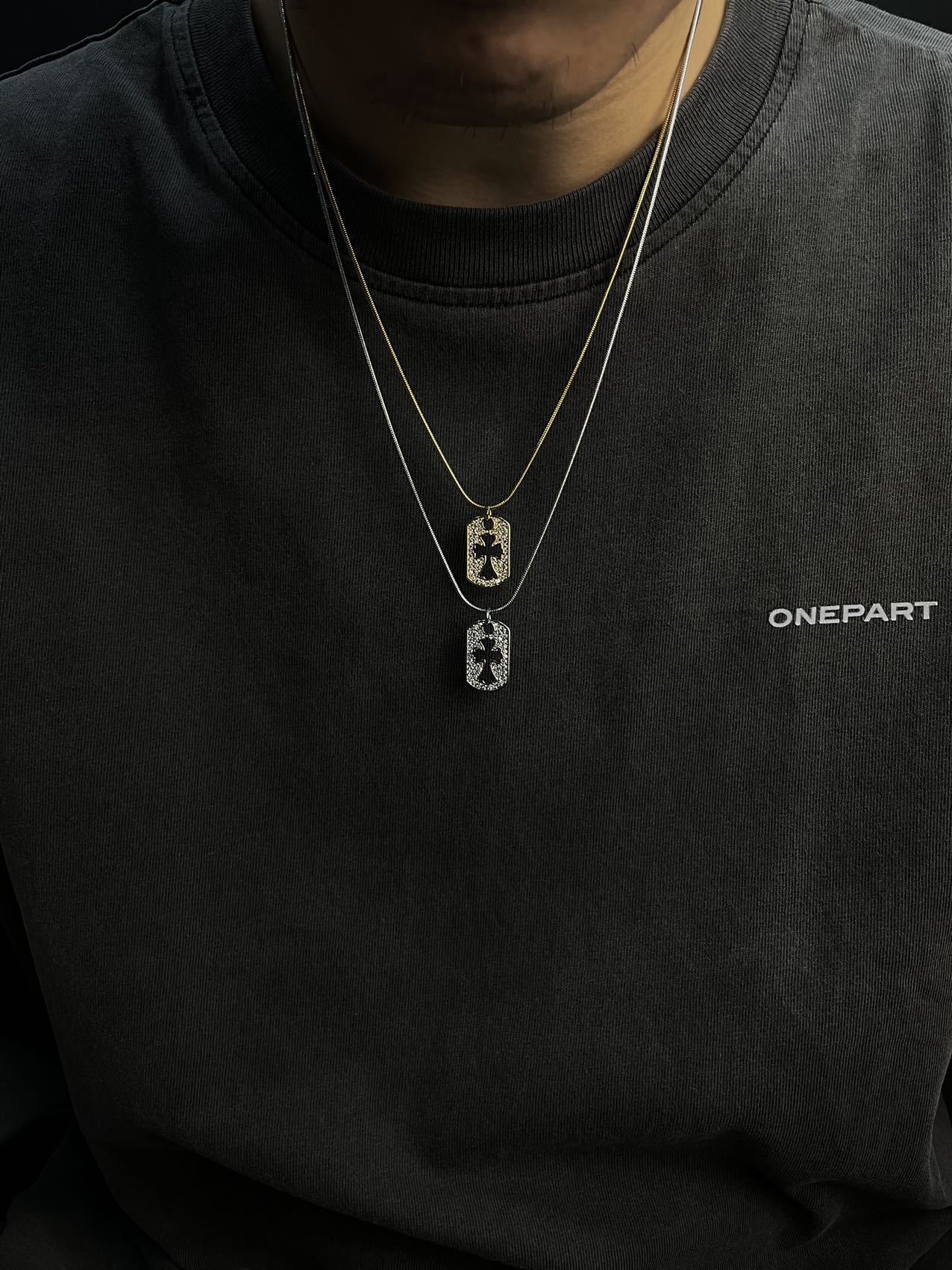 Collar fino con colgante cuadrado hueco y crucífero de diamantes y circonitas, selección original de nicho