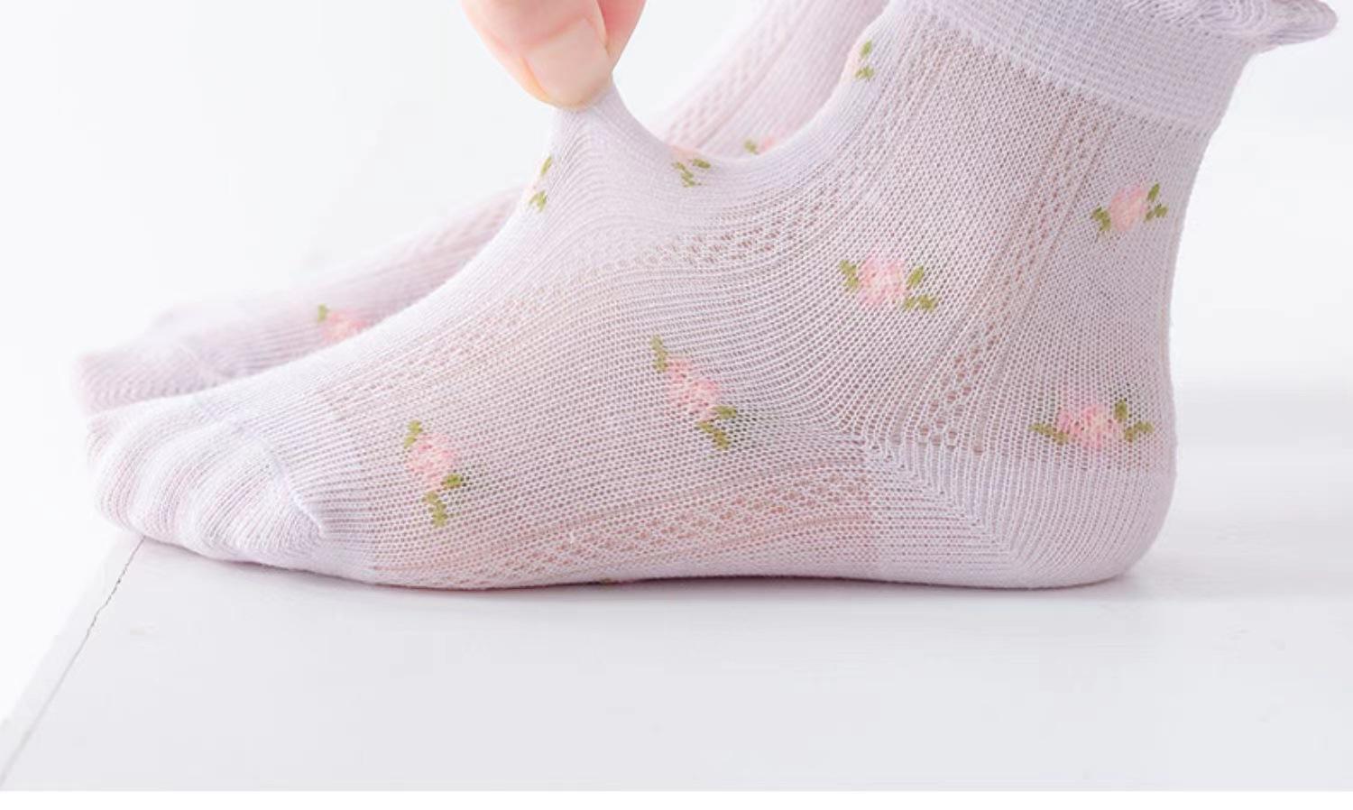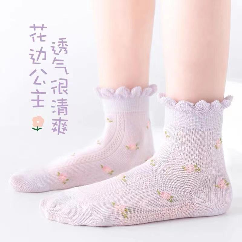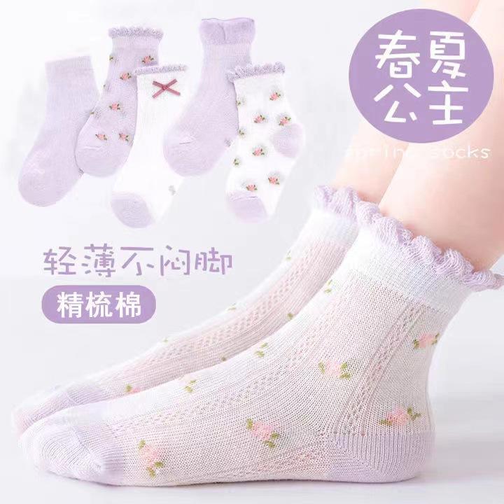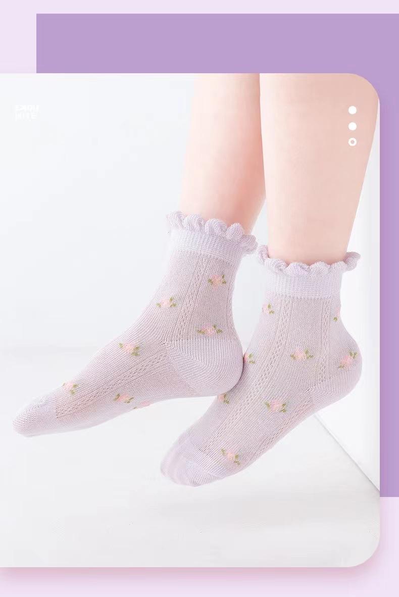 Compra Calcetines cortos de algodón con estampado floral para niñas, de malla, color morado, ligeros, transpirables y sin hueso, para primavera y verano al por mayor en Joom.pro