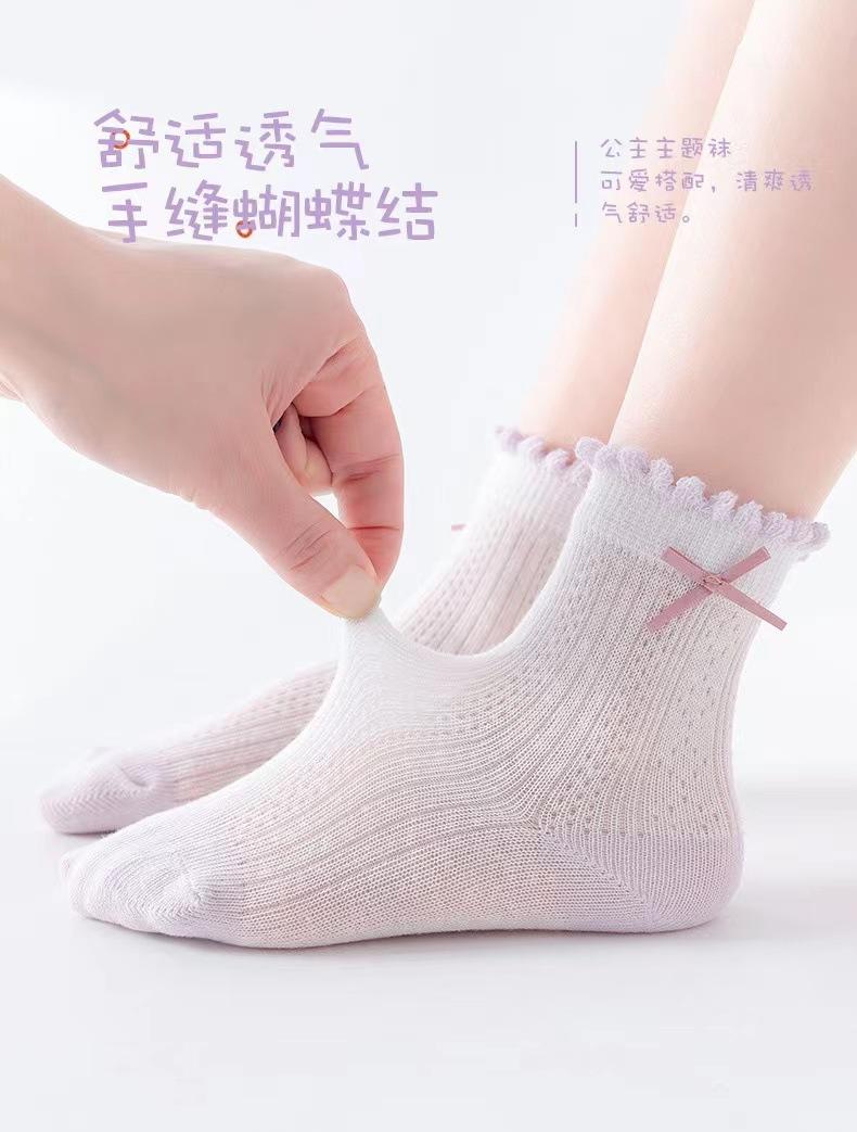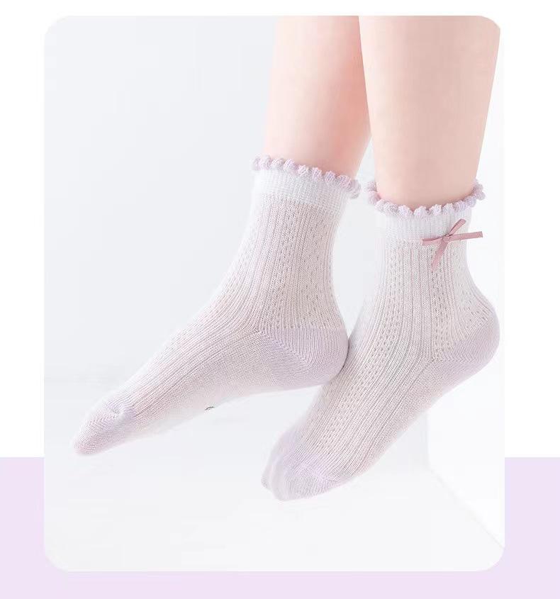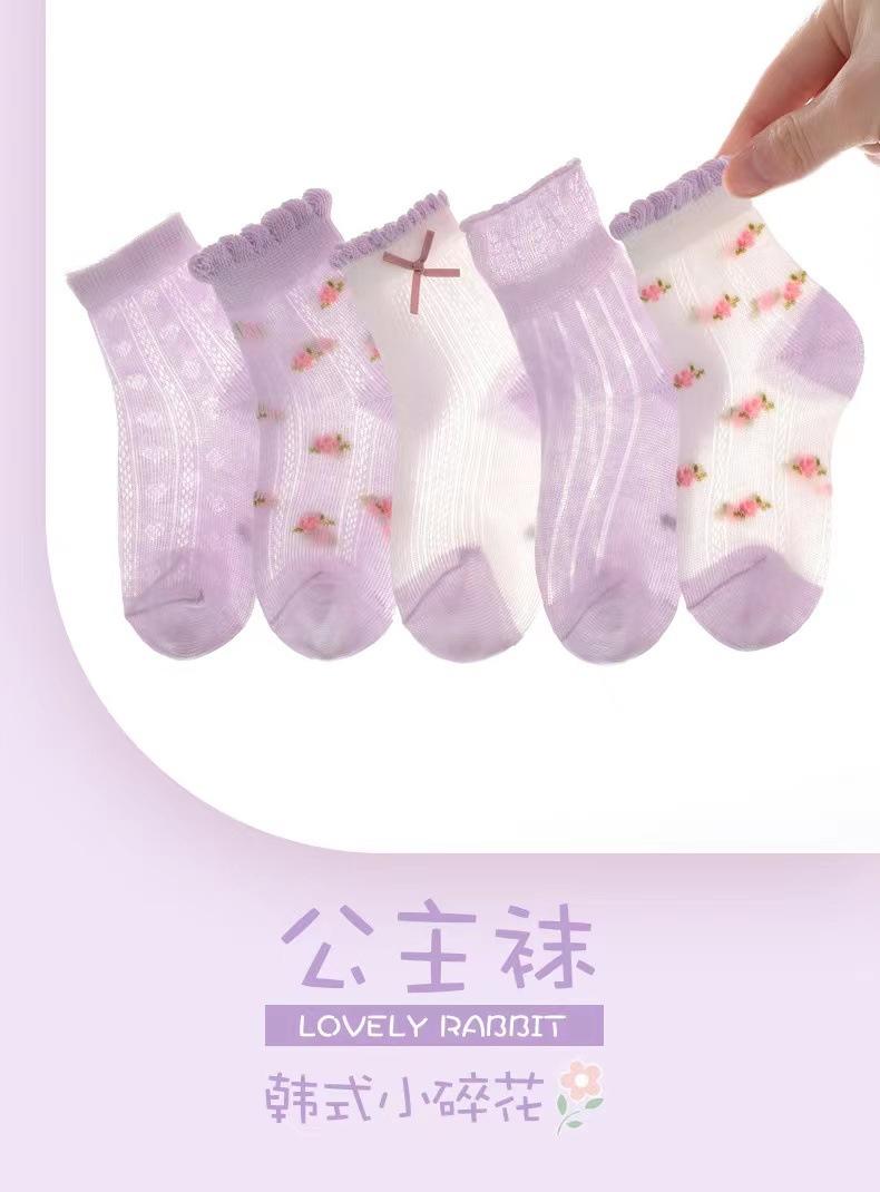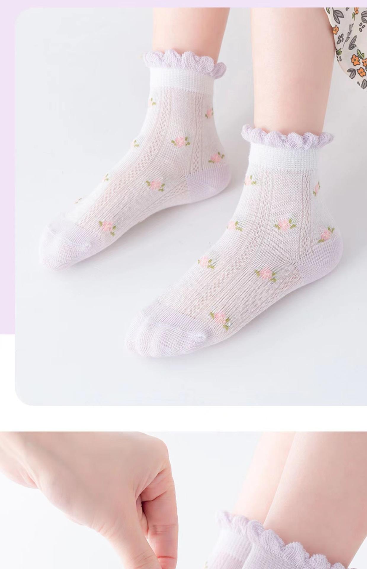 Compra Calcetines cortos de algodón con estampado floral para niñas, de malla, color morado, ligeros, transpirables y sin hueso, para primavera y verano al por mayor en Joom.pro