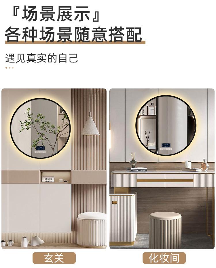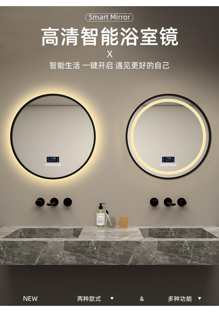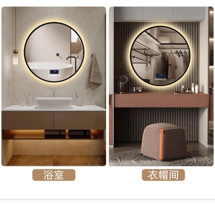 Espejo de baño inteligente redondo con marco de aluminio Tmall Genie, espejo de pared para baño con sensor táctil antivaho