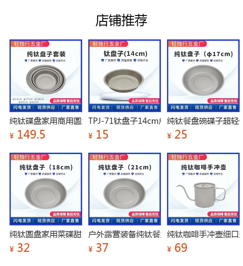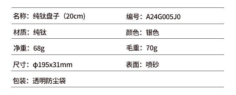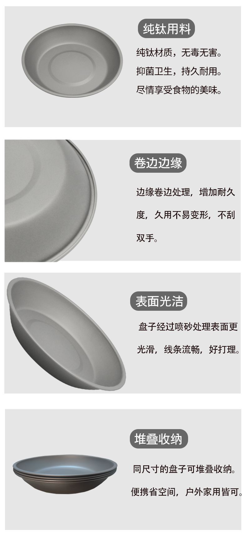 Disco de Titanio Puro 20cm Bandeja para Postre Fruta Doméstica Hotel Comercial Plato de Fondo Poco Profundo Camping al Aire Libre Viaje Plato de Cena