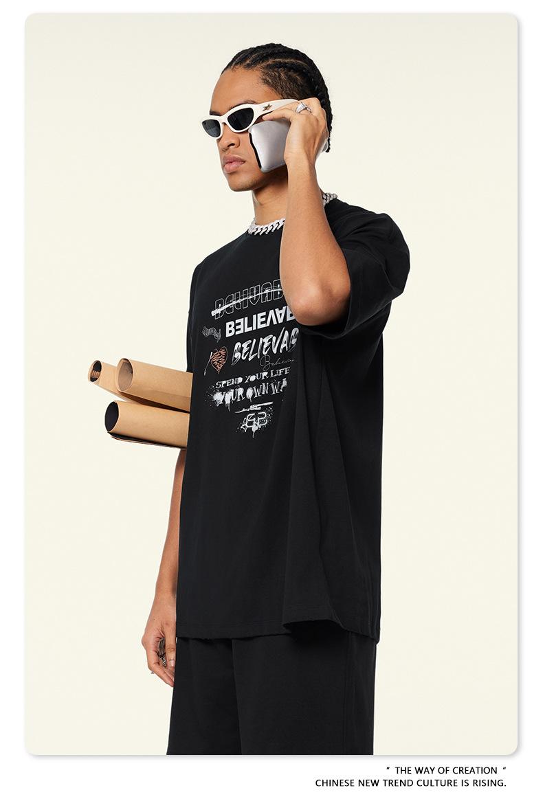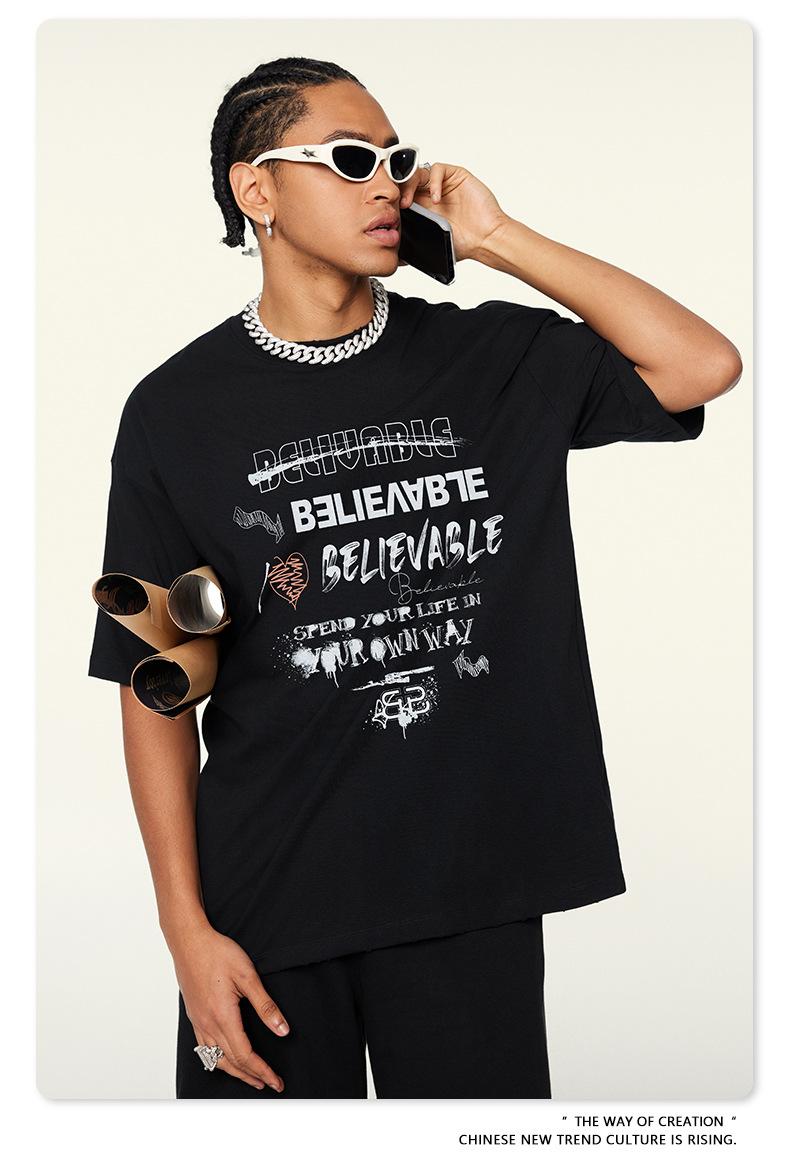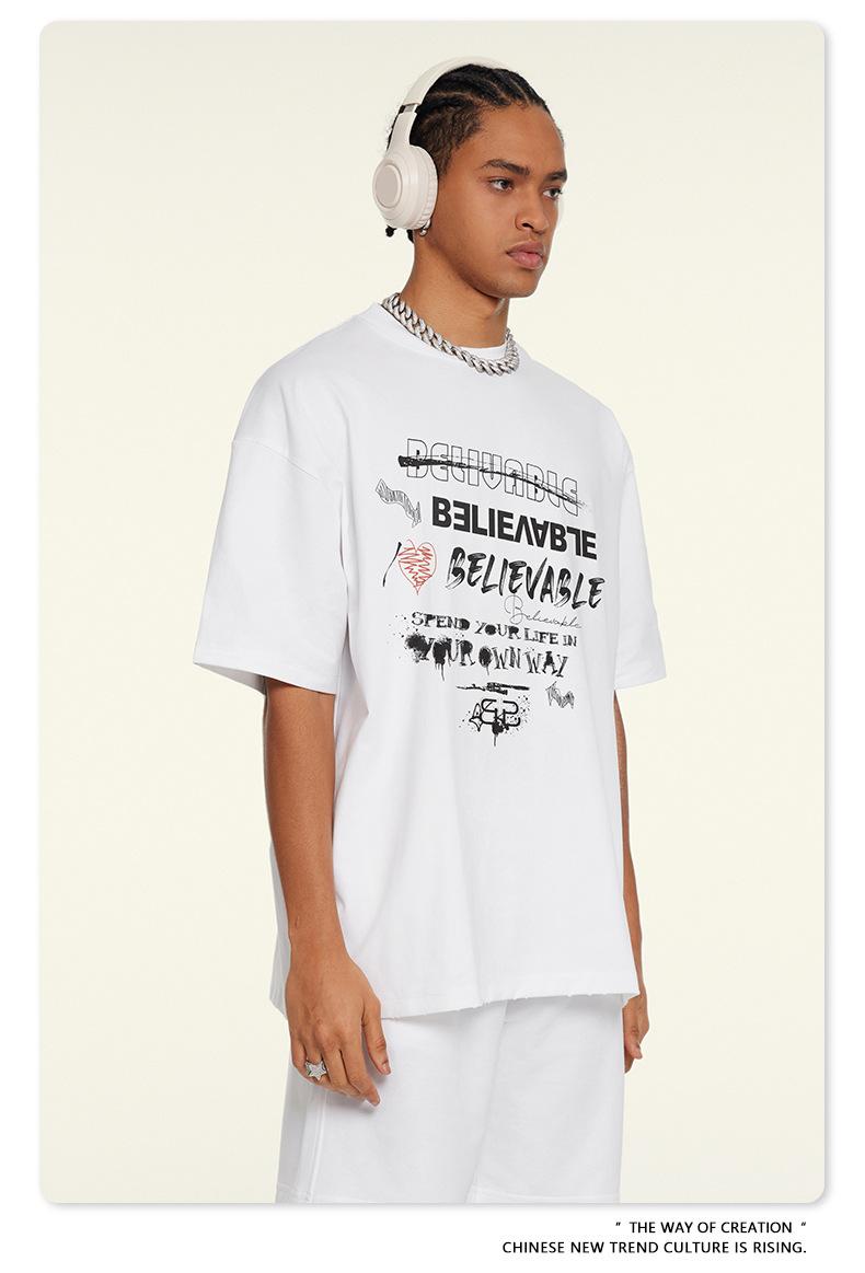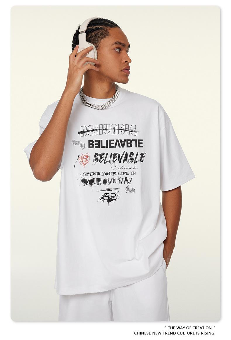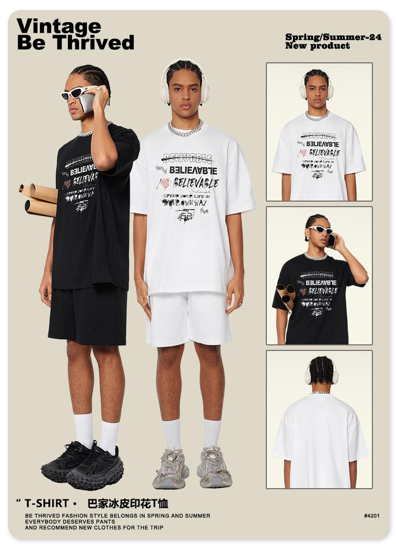 BE Men's Wear | Camiseta de manga corta con estampado retro americano para hombre, primavera/verano 2025, holgada, informal y gruesa.