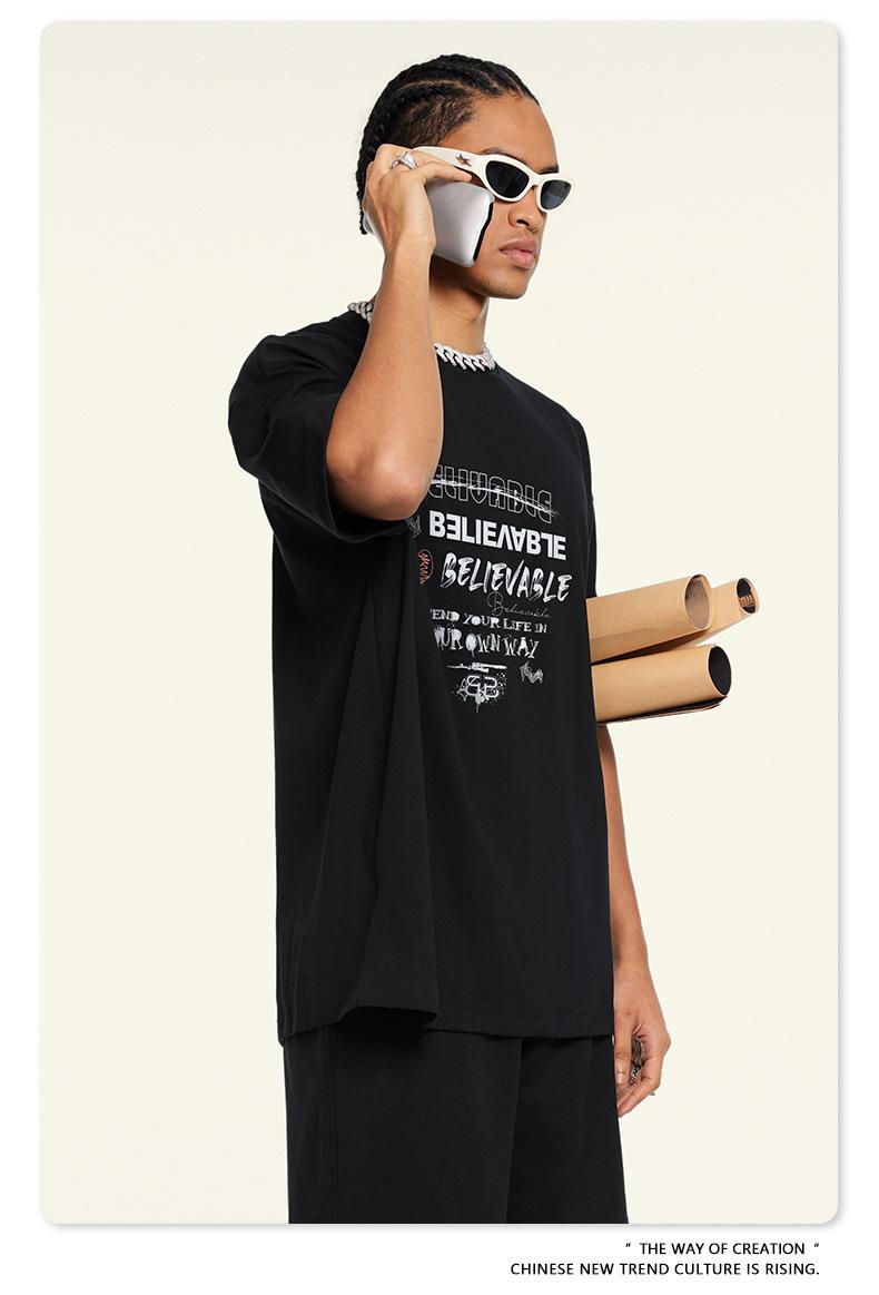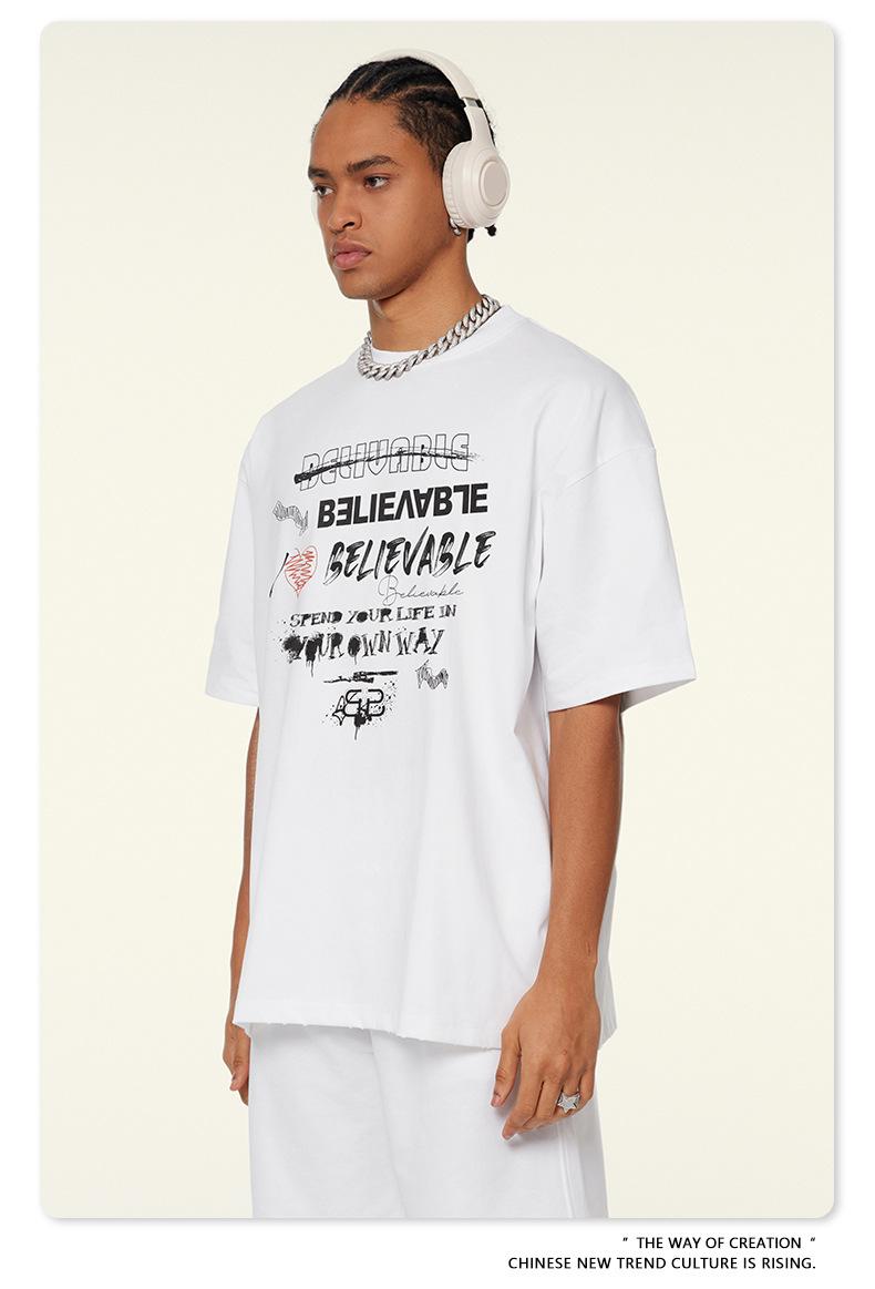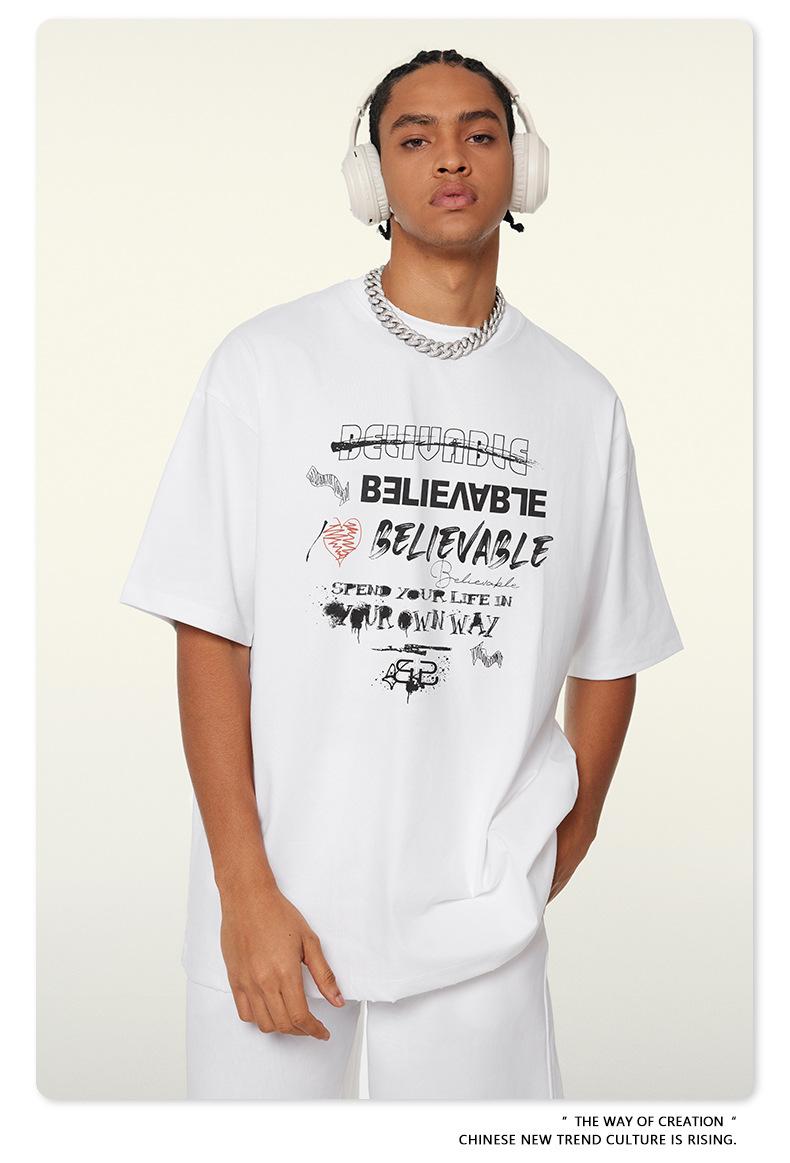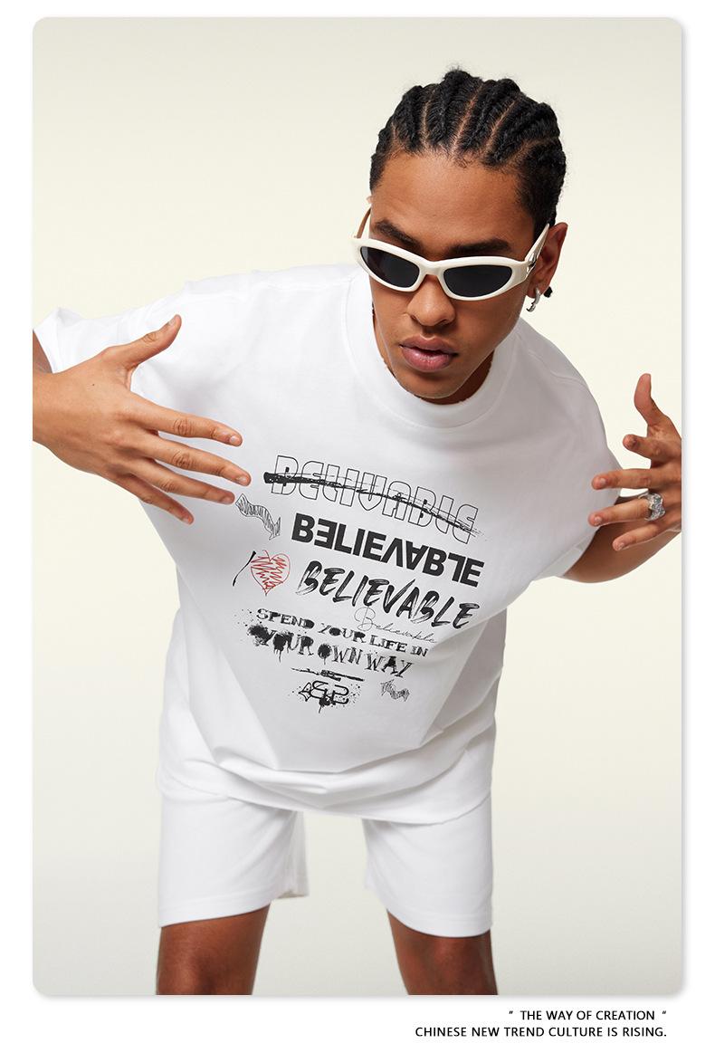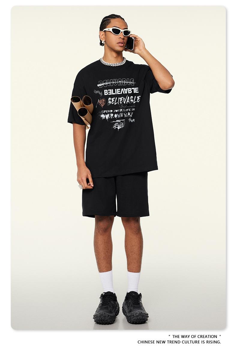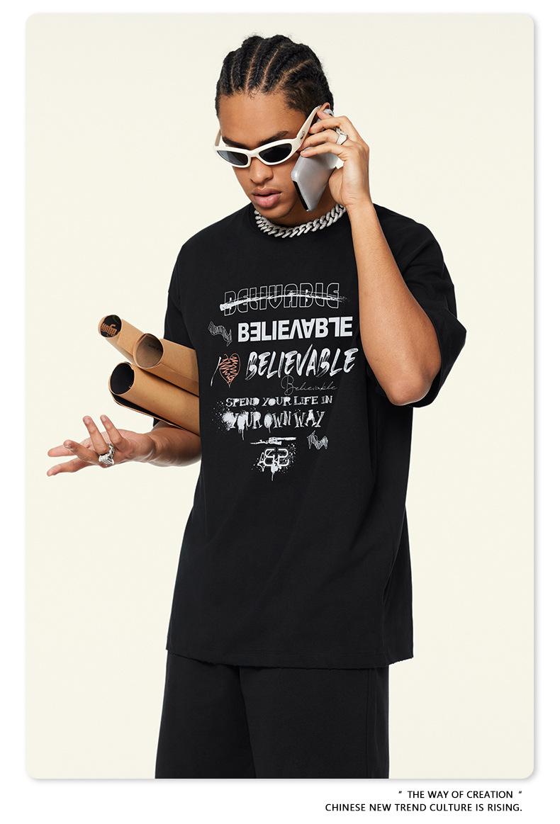 BE Men's Wear | Camiseta de manga corta con estampado retro americano para hombre, primavera/verano 2025, holgada, informal y gruesa.