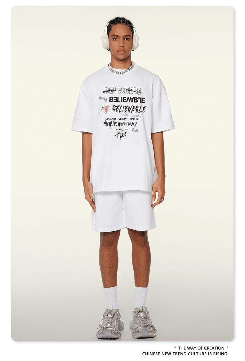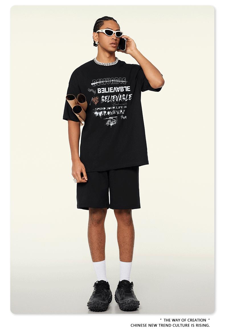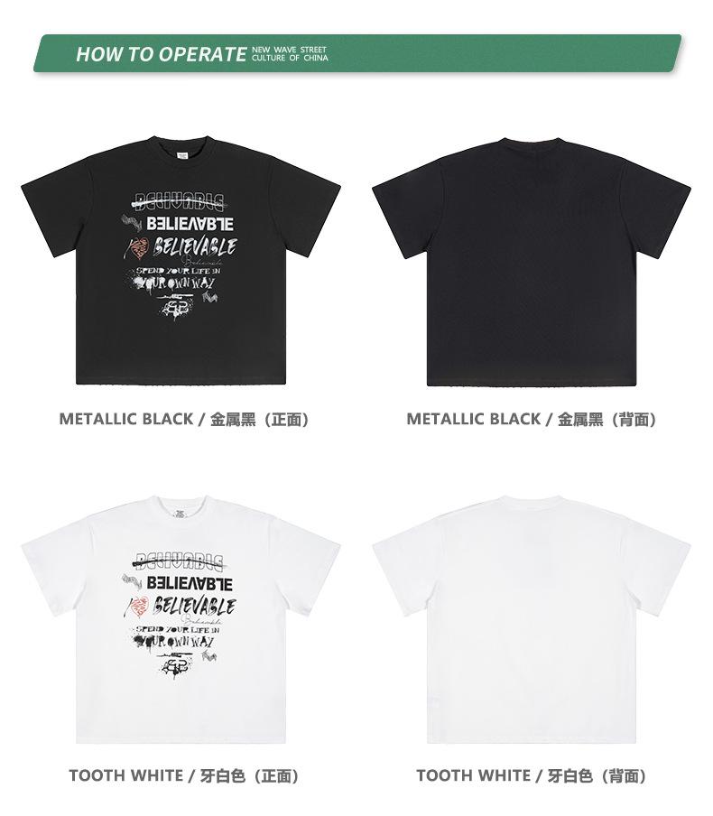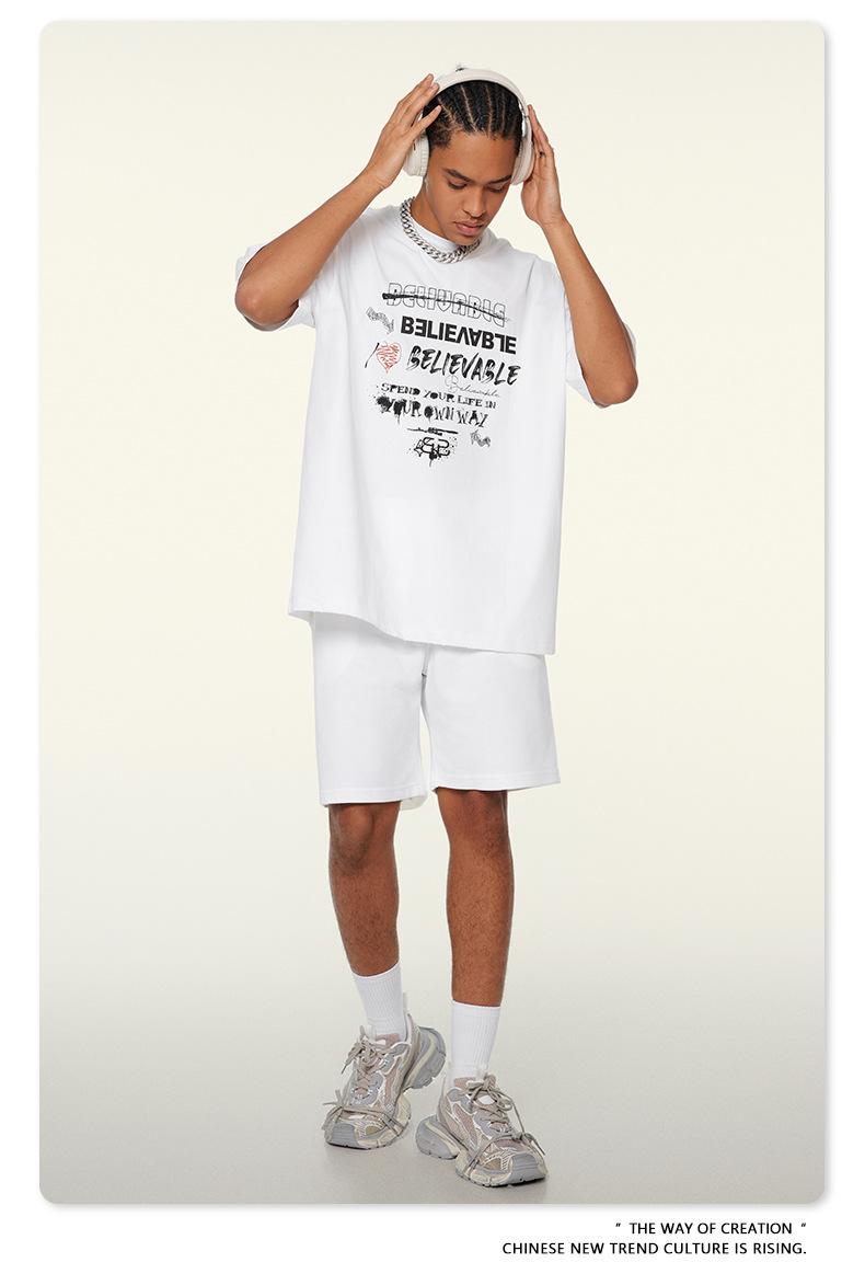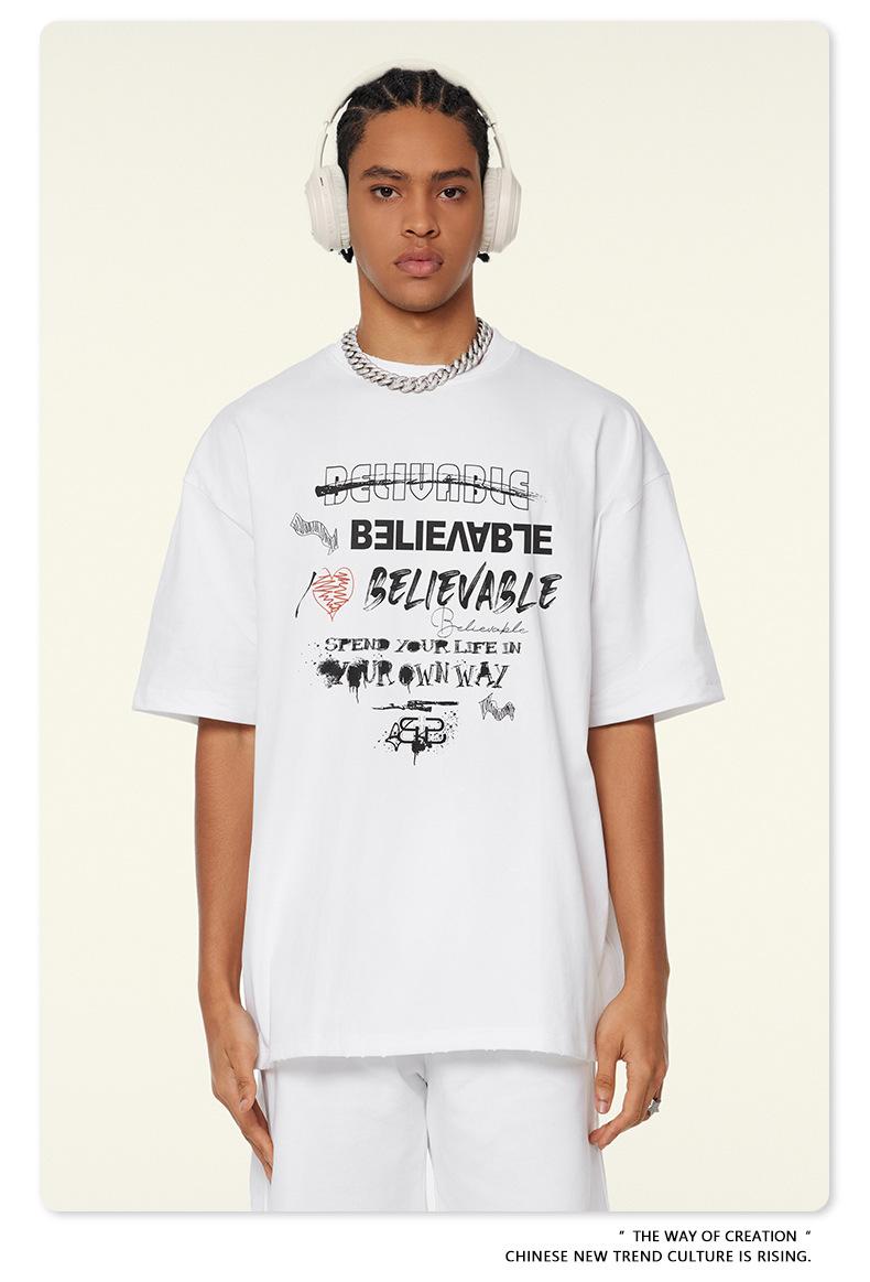 BE Men's Wear | Camiseta de manga corta con estampado retro americano para hombre, primavera/verano 2025, holgada, informal y gruesa.