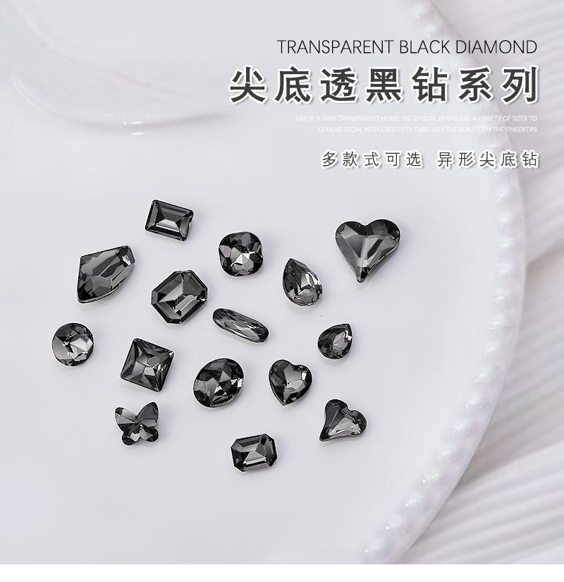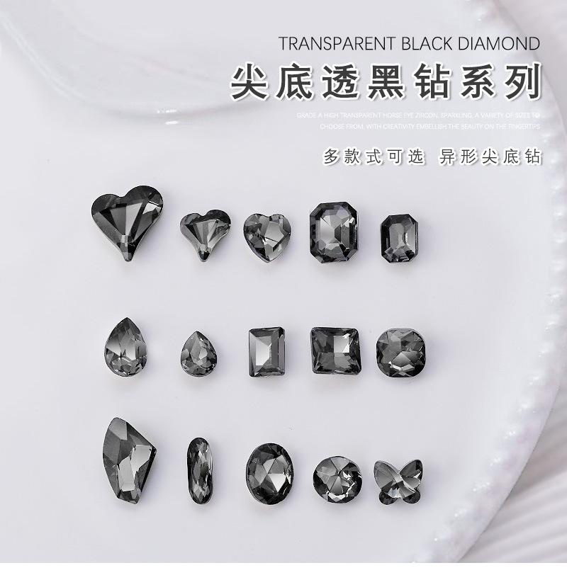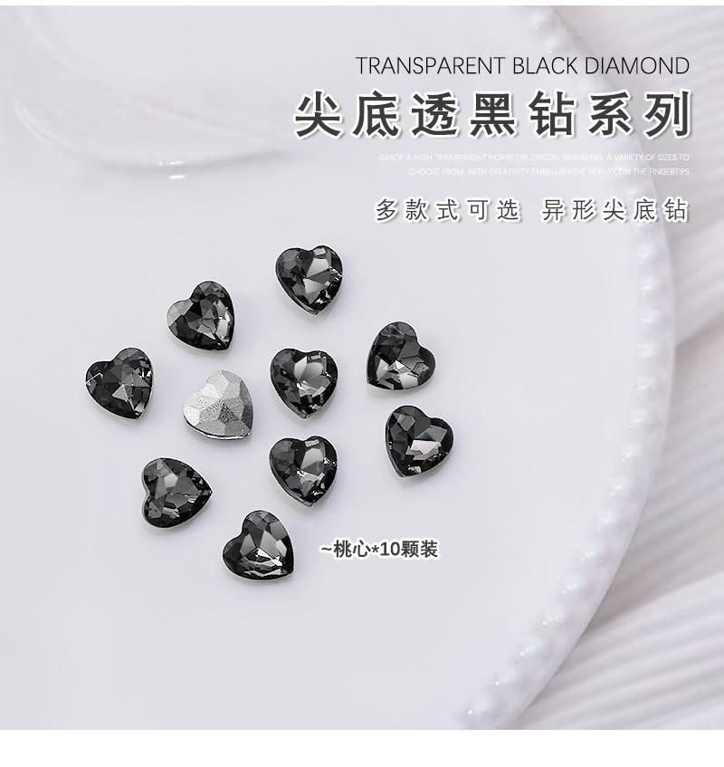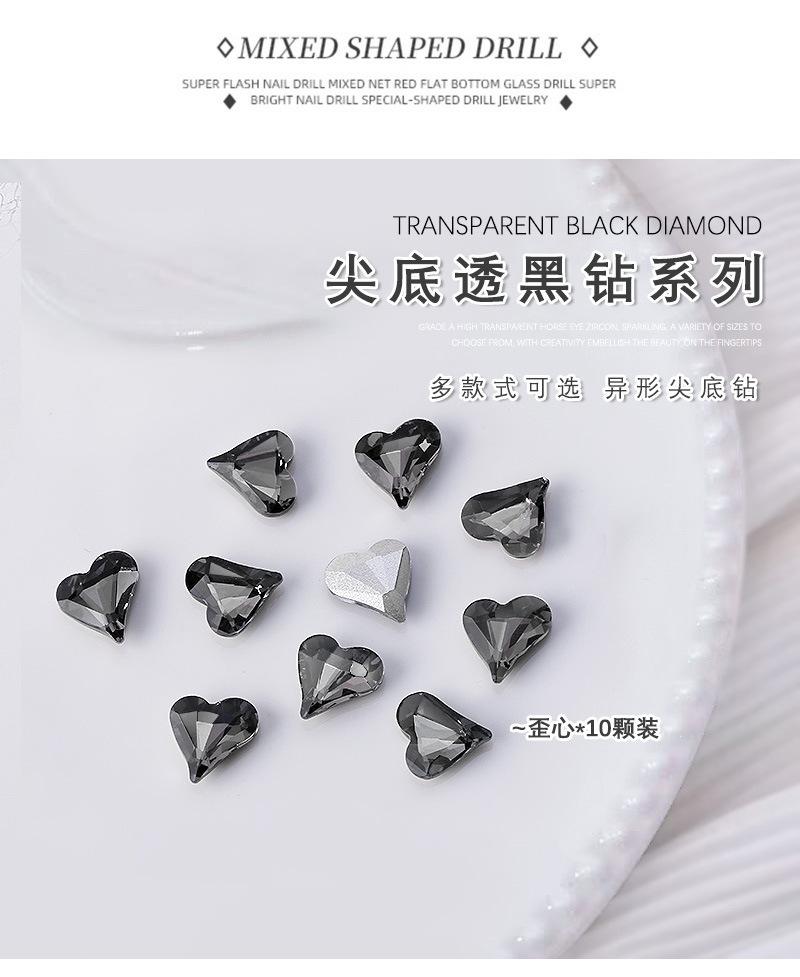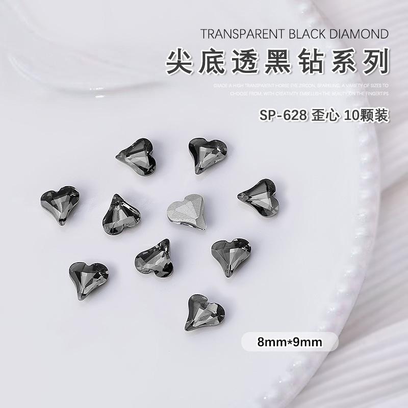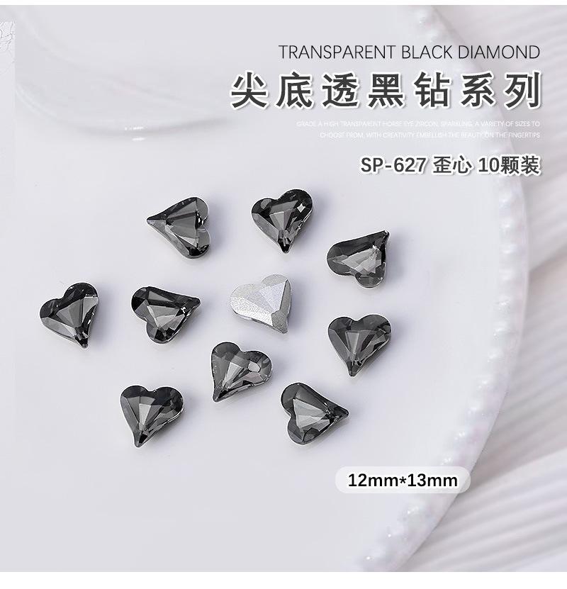 10 sharp bottom drill black (big crooked heart SP-627), 10 sharp bottom diamonds transparent black (small croo...
