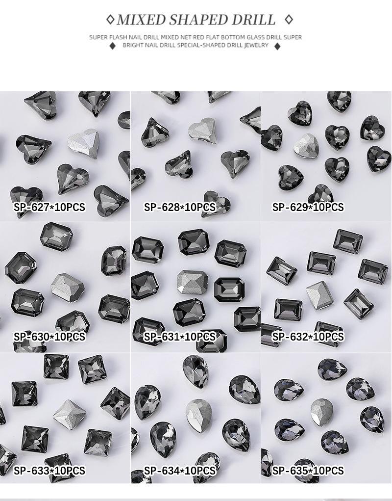 Compra Arte de uñas con punta inferior, taladro de amor, taladro de corazón torcido a través de espadas, cuadrado a través de decoraciones de uñas con diamantes de imitación de color 10 al por mayor en Joom.pro