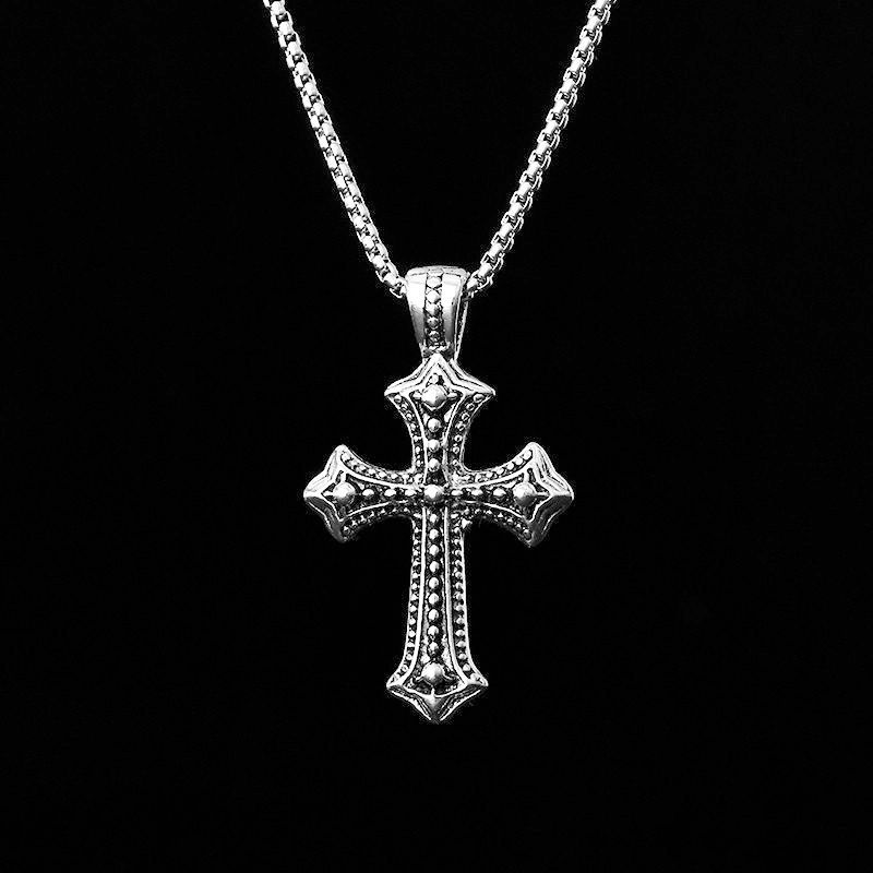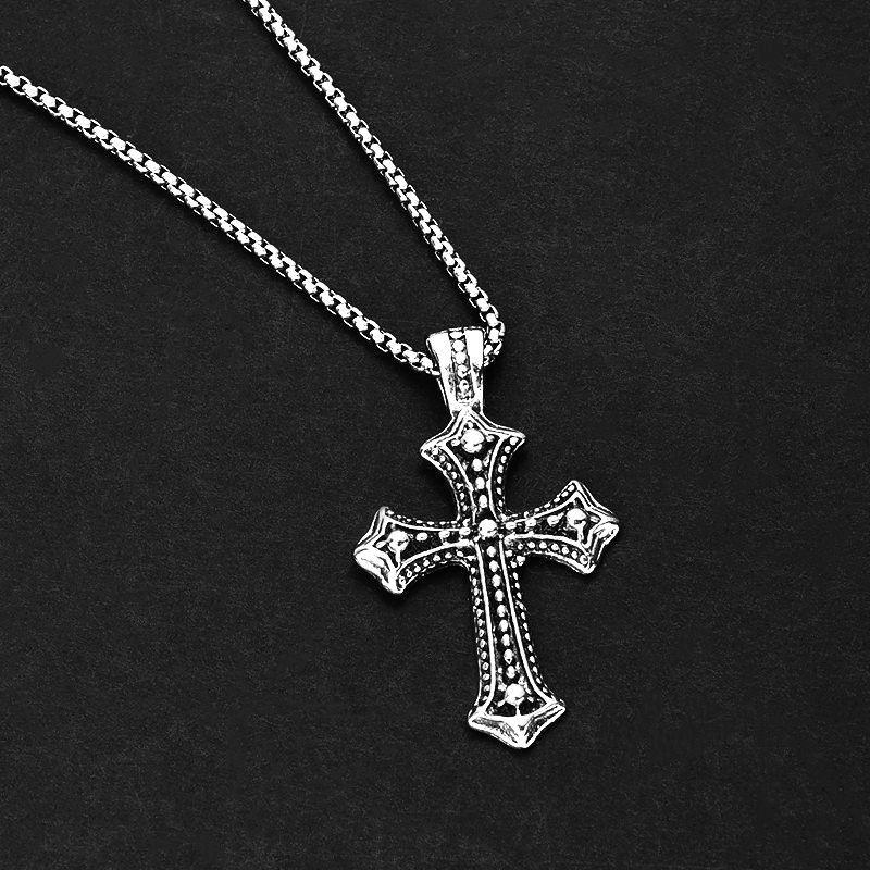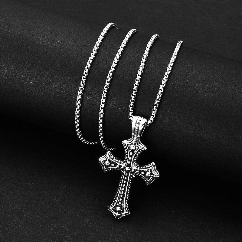Collar con colgante de cruz de acero y titanio estilo hip hop retro transfronterizo, moderno y personalizado, cadena de suéter para hombre que combina con todo.
