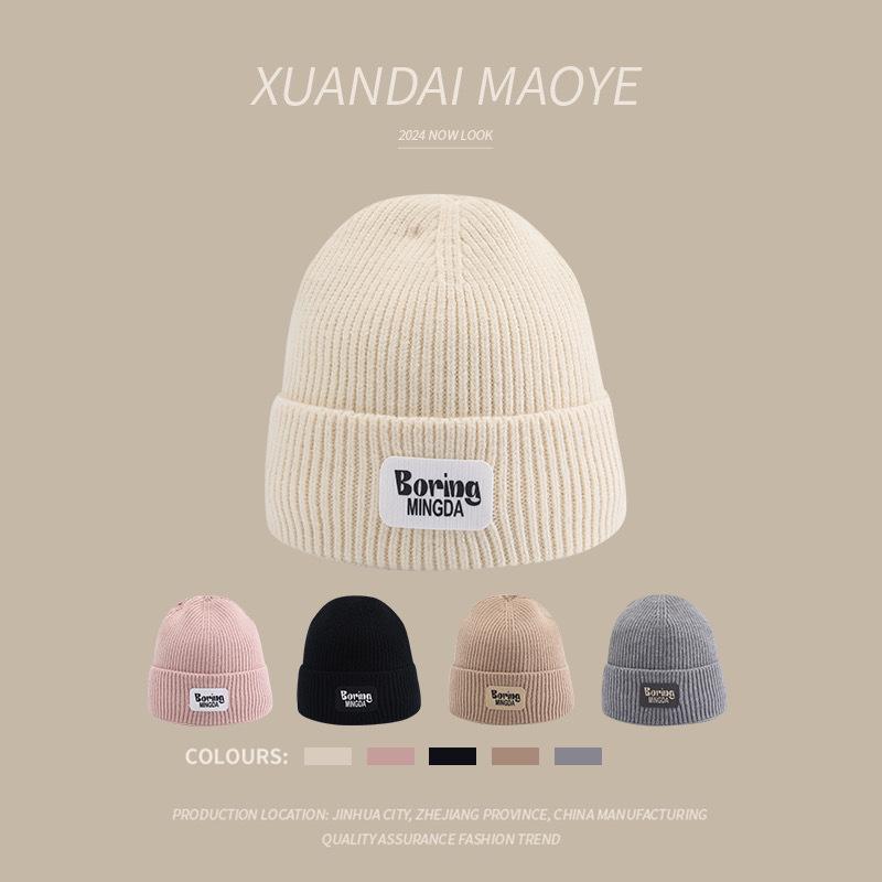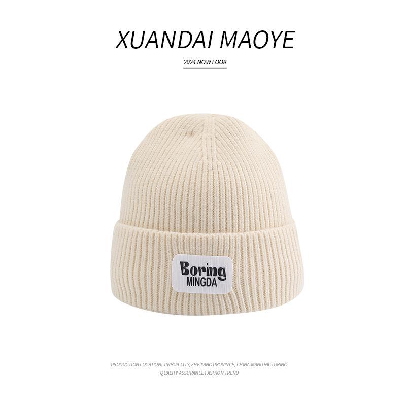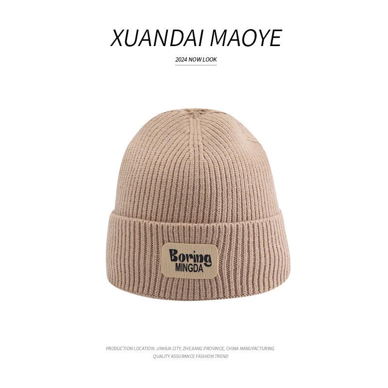 Gorro de punto para otoño e invierno, cálido, para hombre y mujer, de lana, combina con todo, informal, con protección para los oídos, gorro de moda con forro polar y letras gruesas.