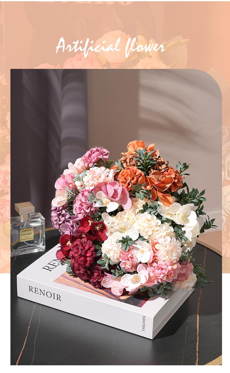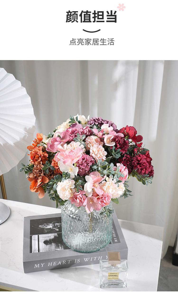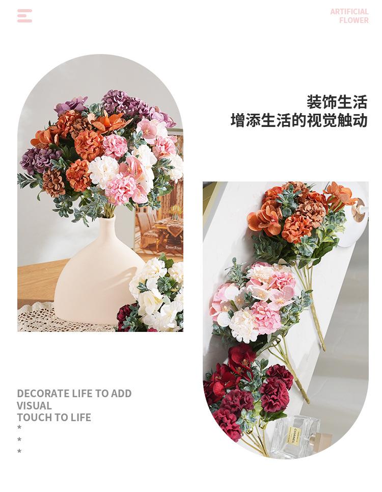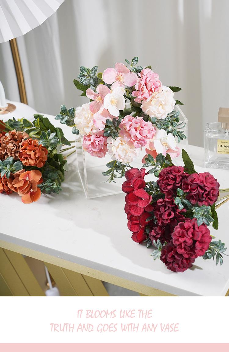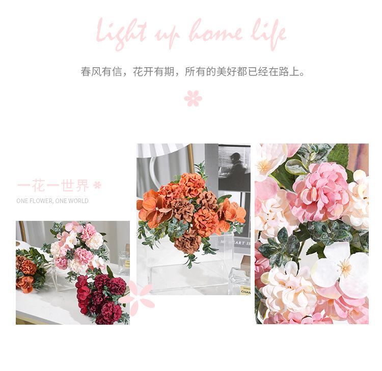 Hortensia artificial de estilo europeo, flor artificial, accesorios de decoración para bodas, decoración de mesa de comedor, accesorios de fotografía