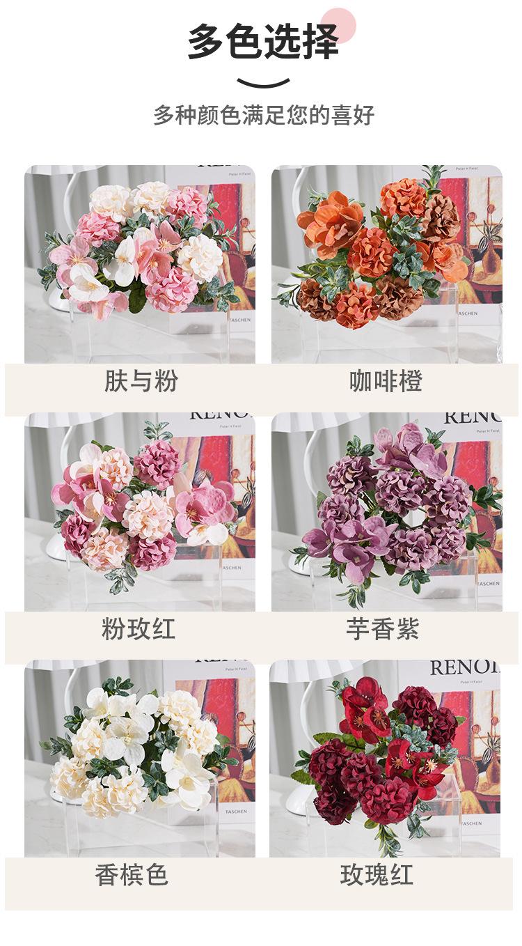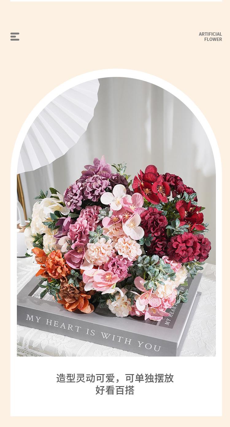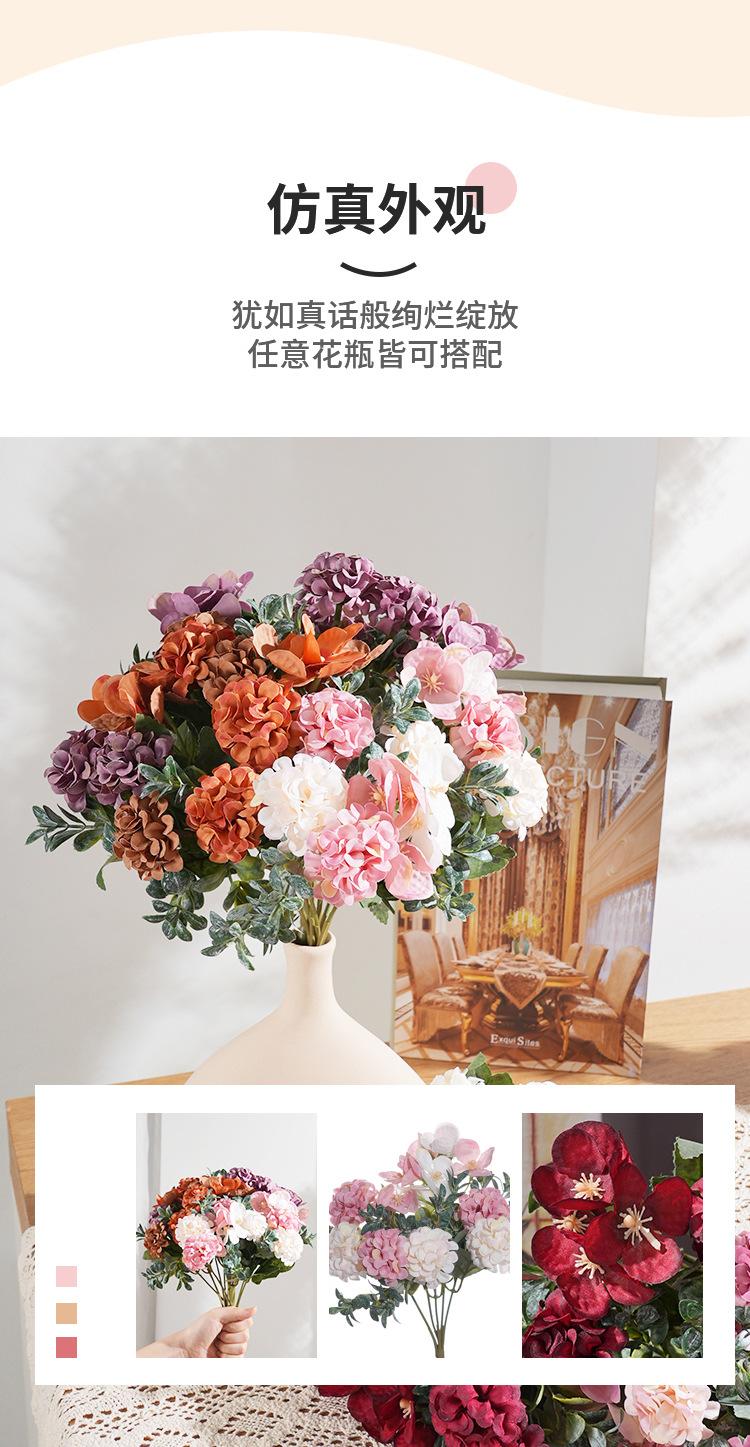 Hortensia artificial de estilo europeo, flor artificial, accesorios de decoración para bodas, decoración de mesa de comedor, accesorios de fotografía
