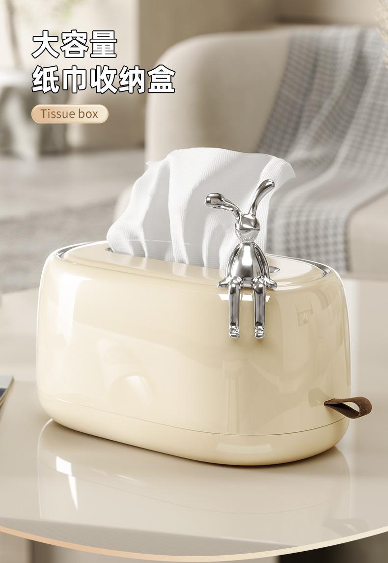 Tissue box cream color Square + rabbit, Tissue box cream color Square + boss dog, Cream yellow tea table tissu...