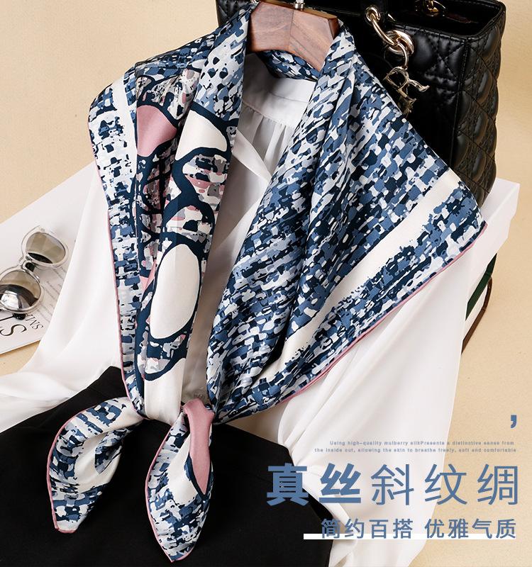 | ¡Color suave y pacífico! Elegante bufanda de seda twill retro para mujer, nueva bufanda cuadrada de seda de morera para primavera |