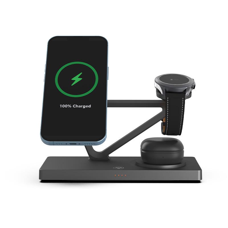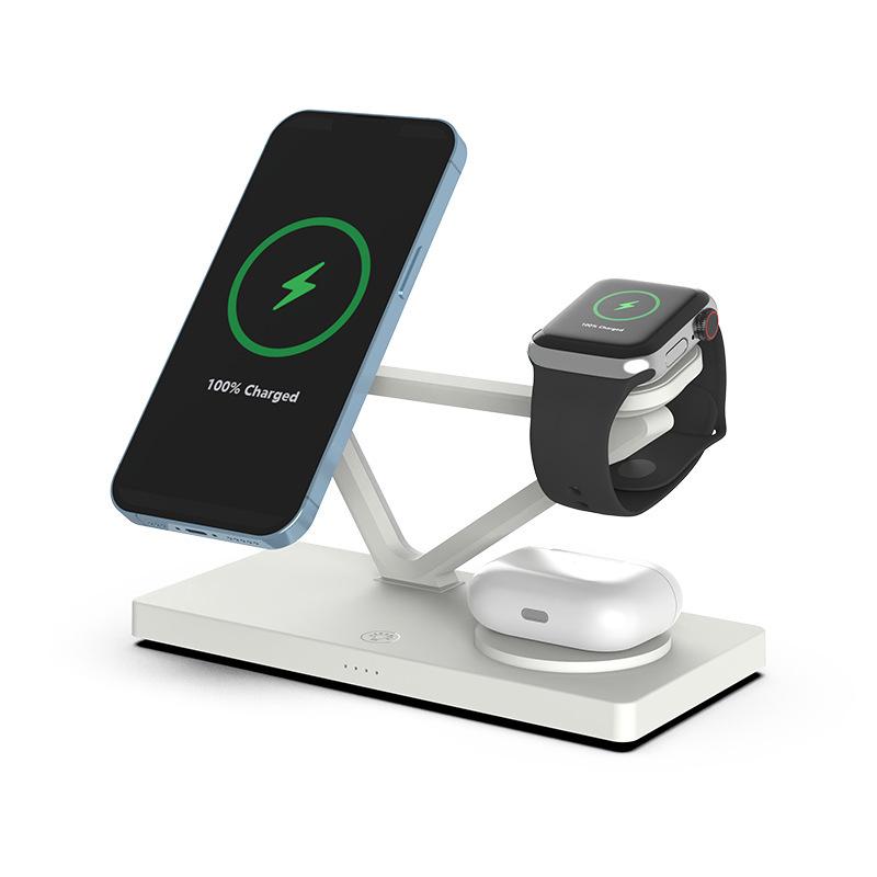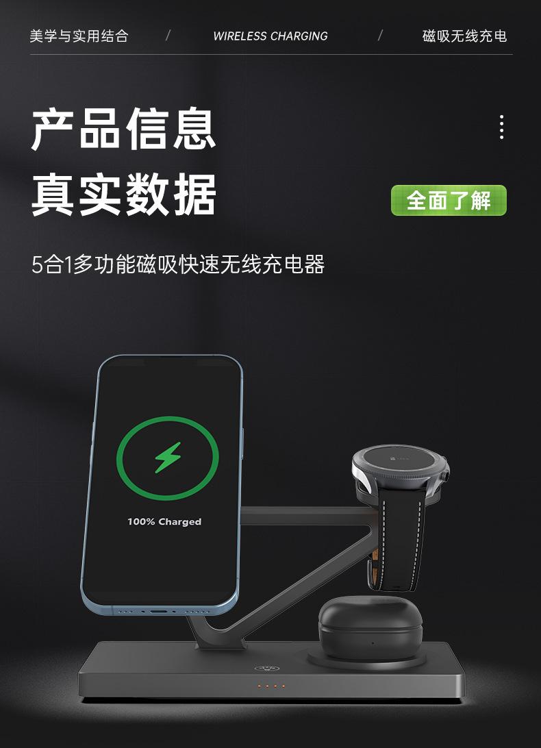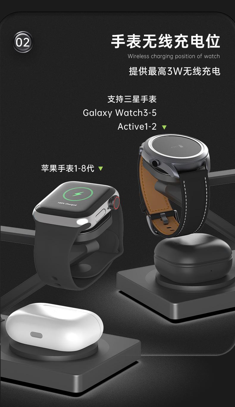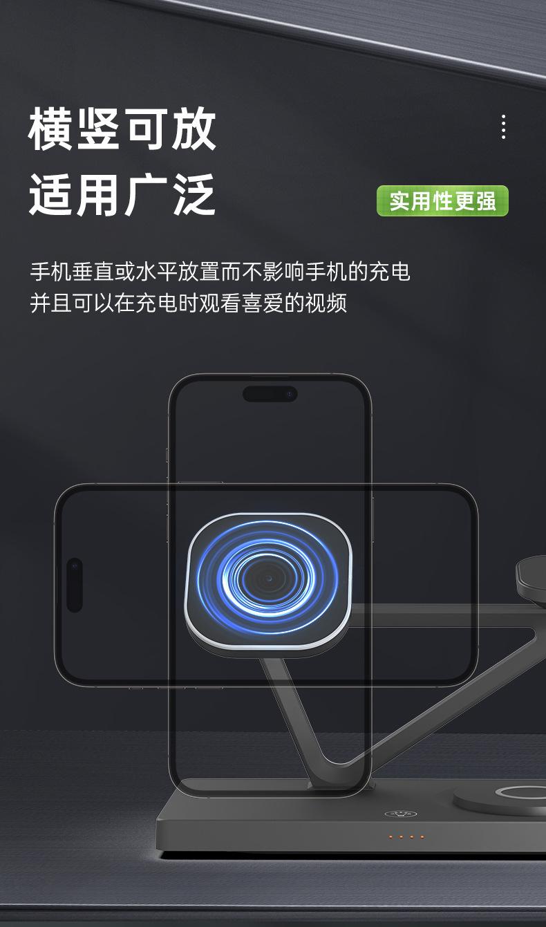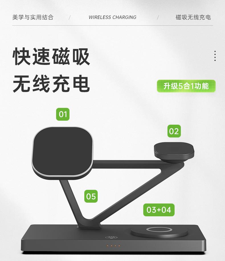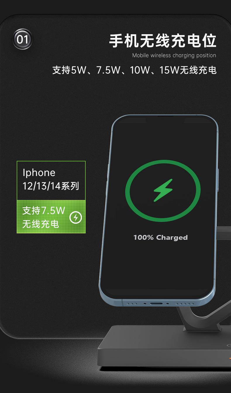 Cargador inalámbrico tres en uno con luz nocturna transfronteriza, soporte de escritorio para teléfono móvil, reloj, auriculares, cargador magnético