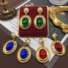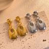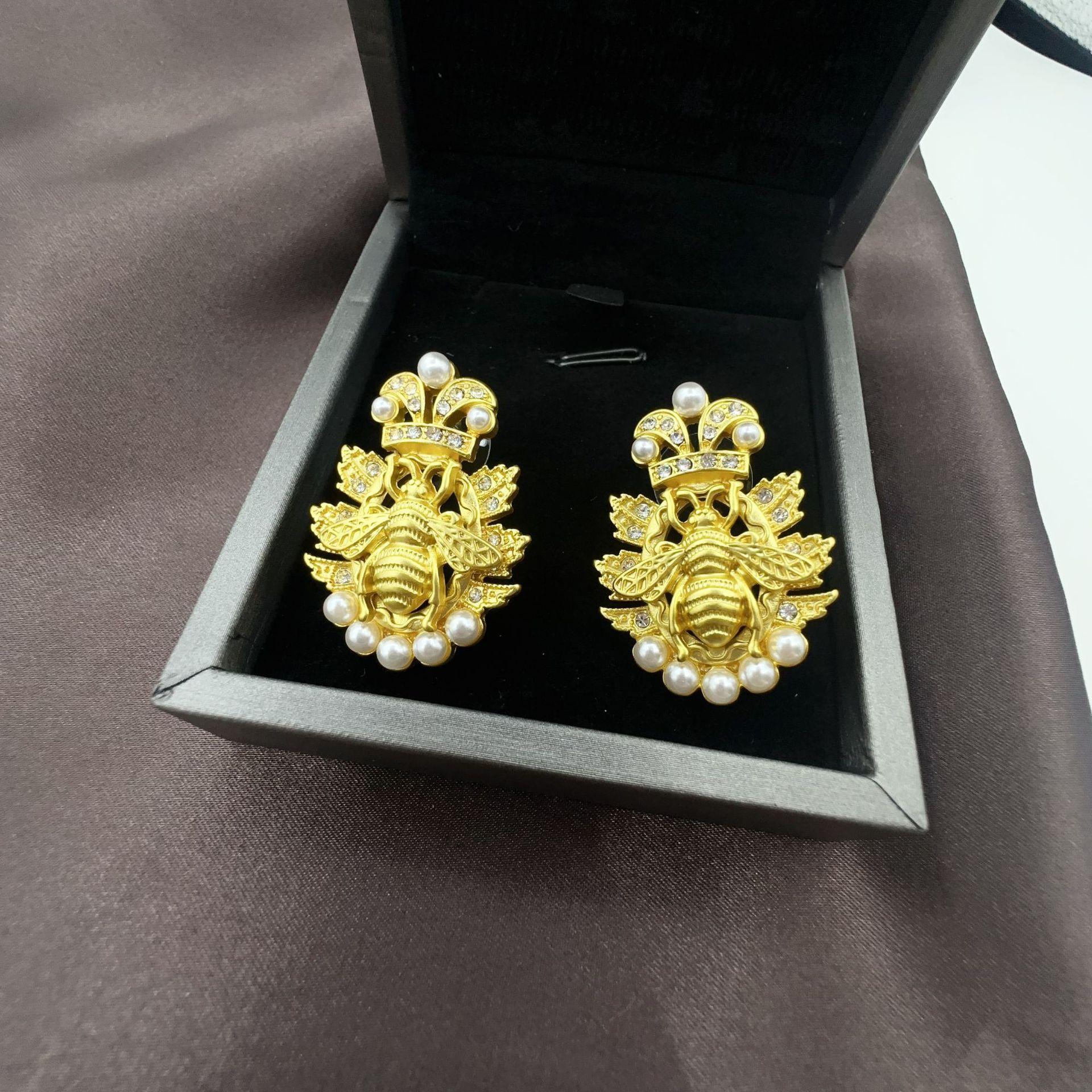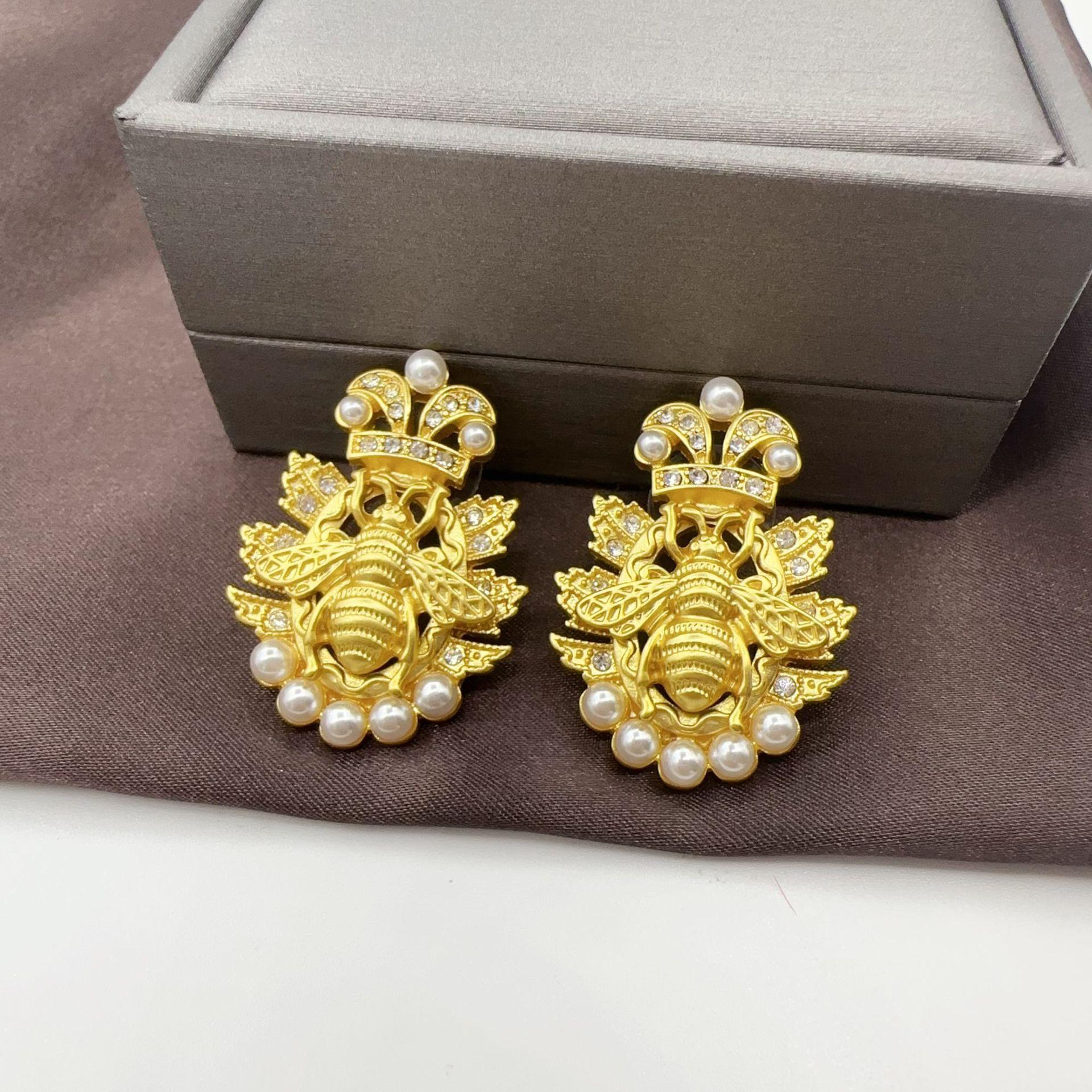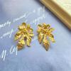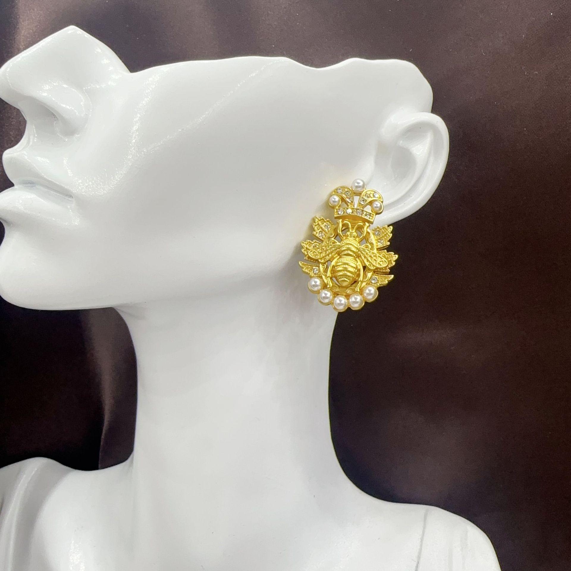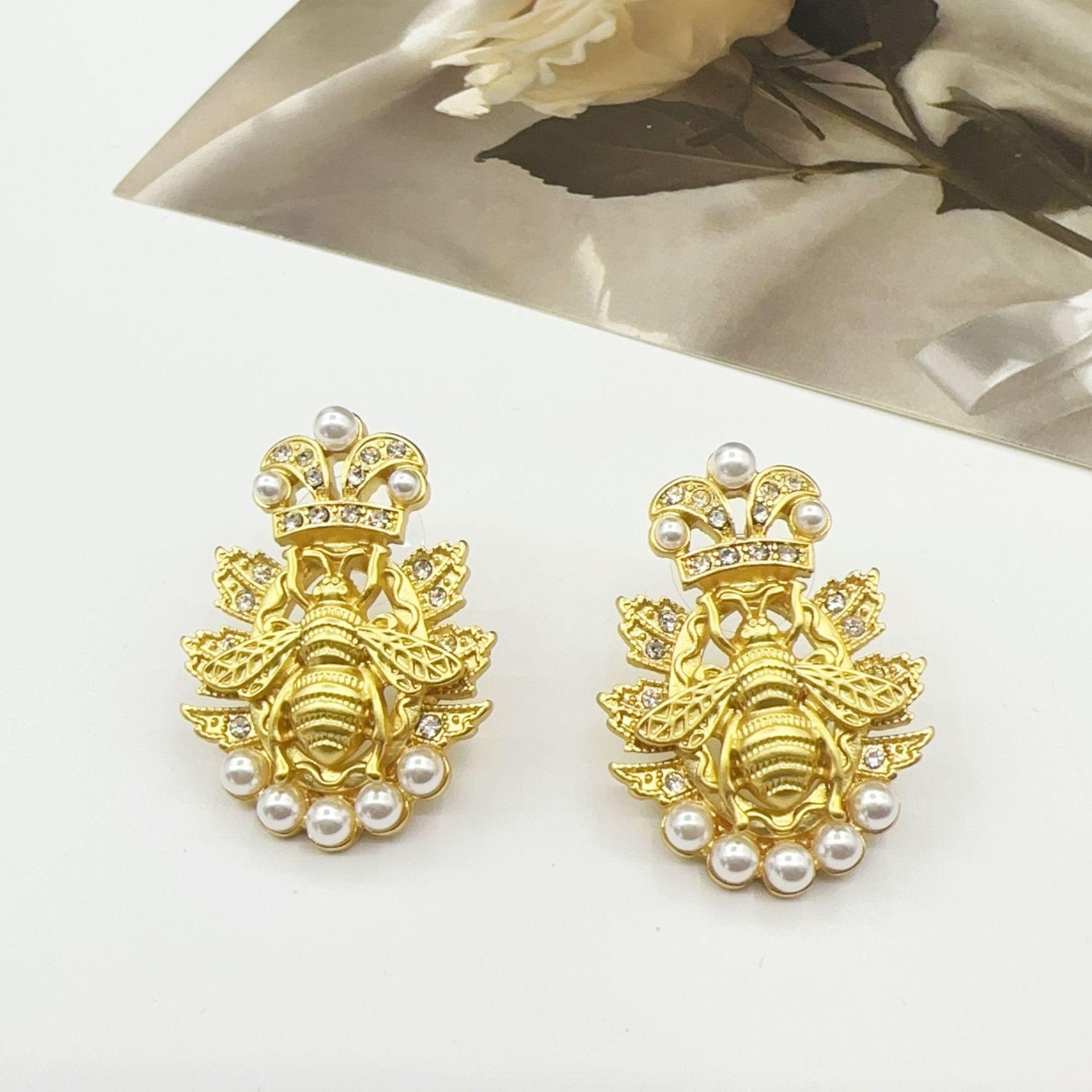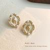 Pendientes de botón chapados en oro de estilo industrial pesado, retro, de alta calidad, de lujo ligero, exagerados, elegantes, de estilo palaciego, con perlas de mediados de la antigüedad.