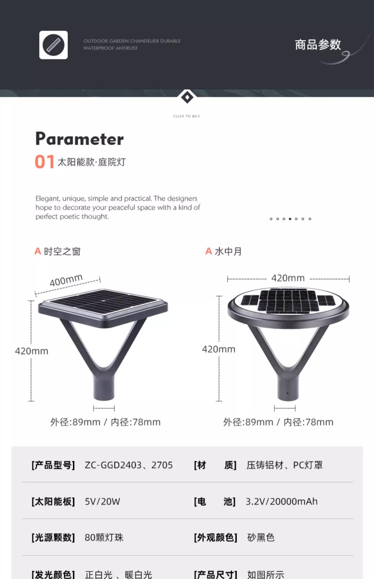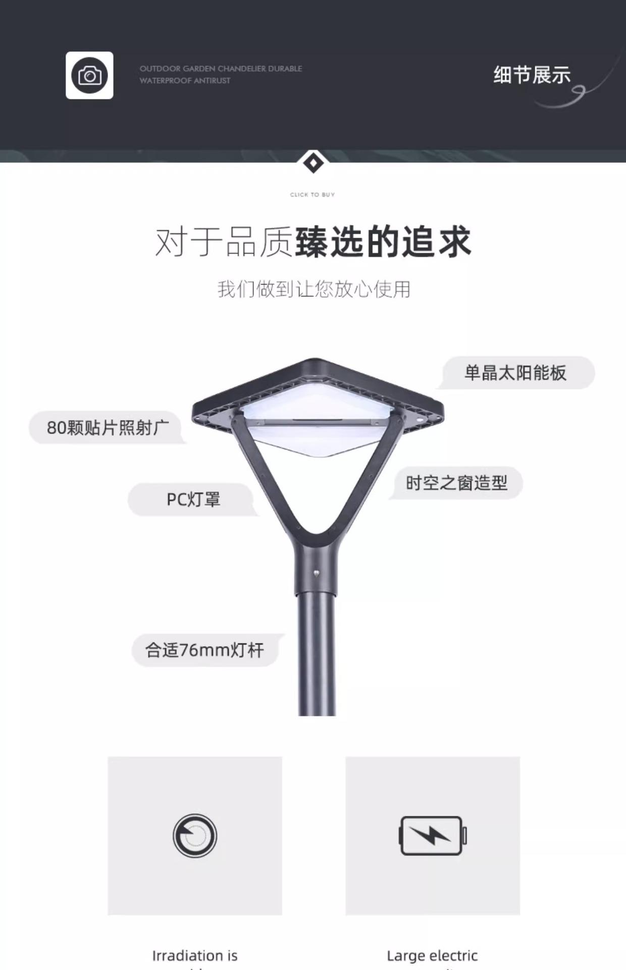 Lamp holder (excluding light pole), Height: 2.6m (lamp head + light pole), Height: 3m (lamp head + light pole ...