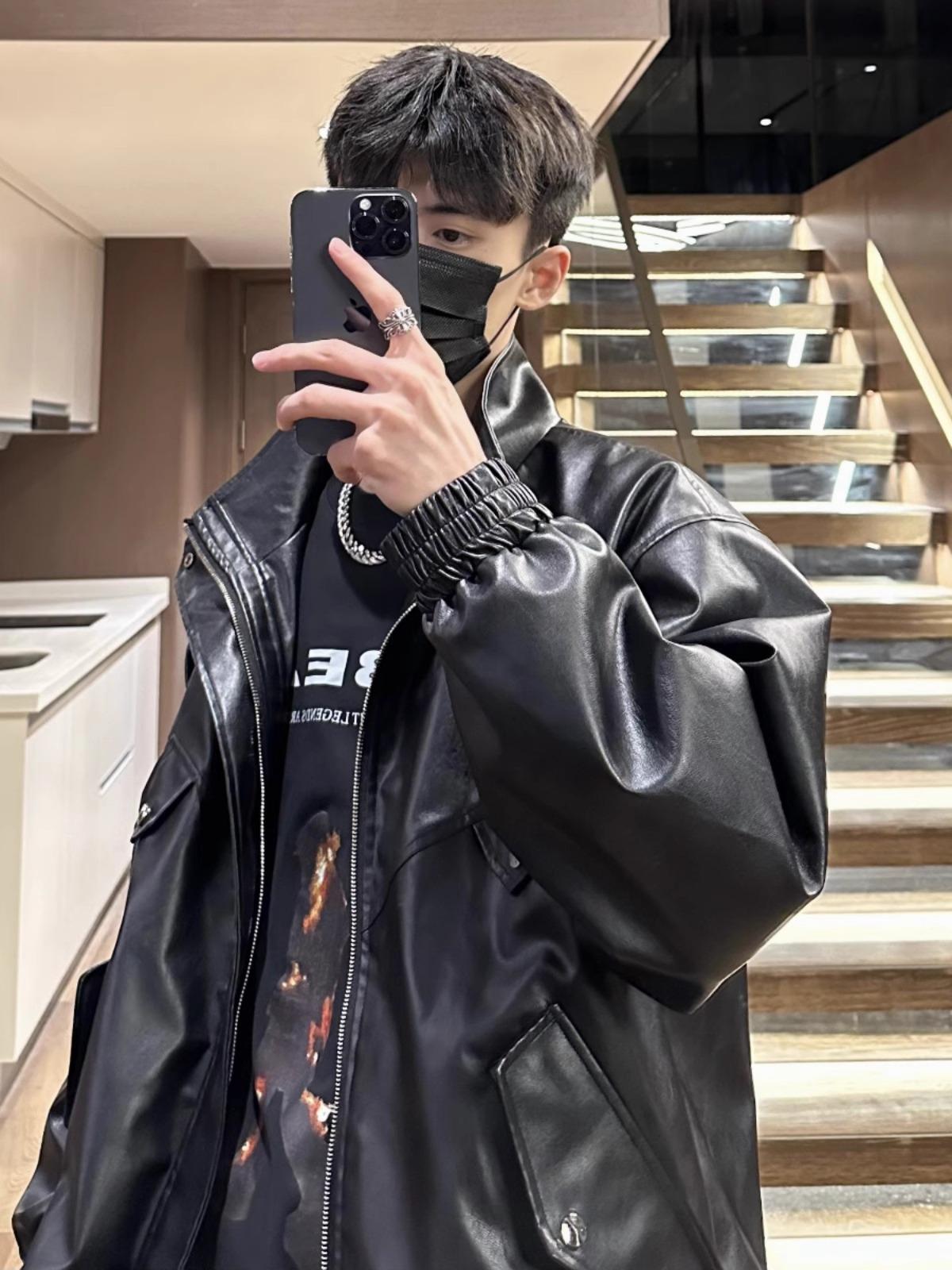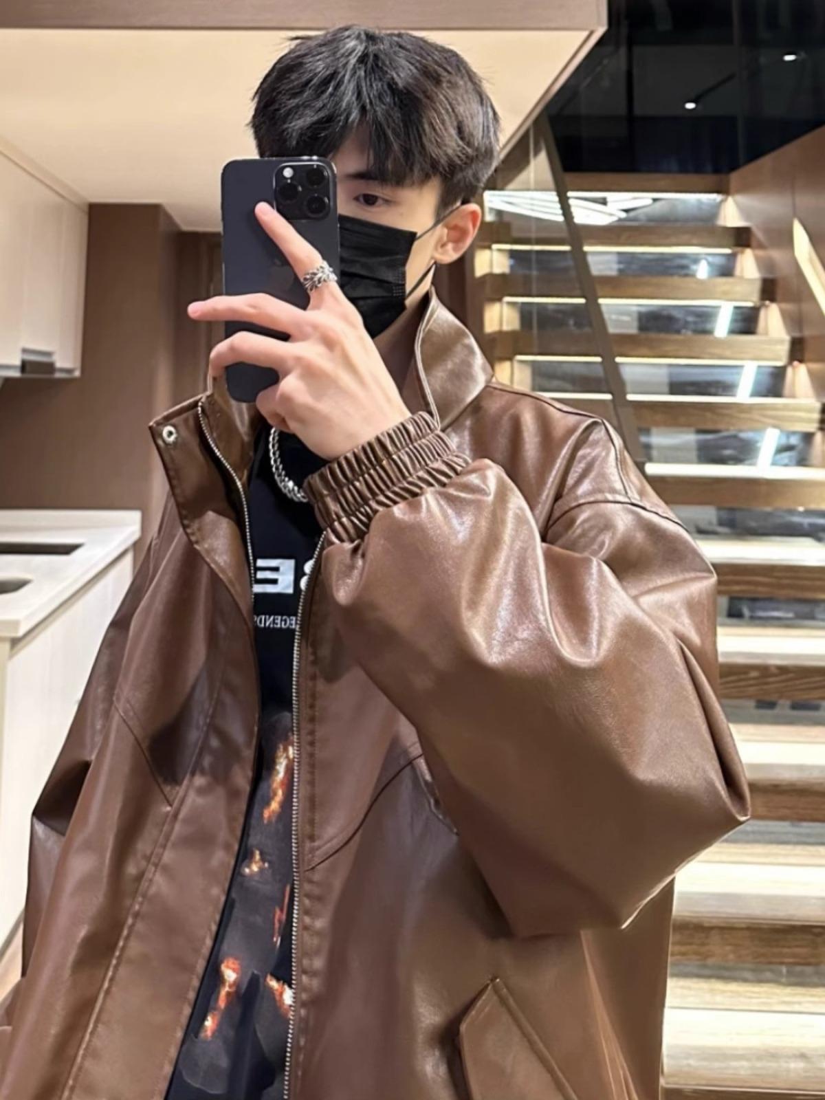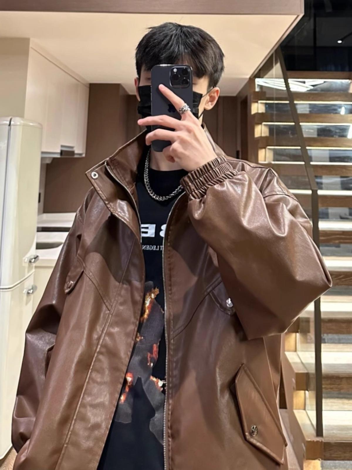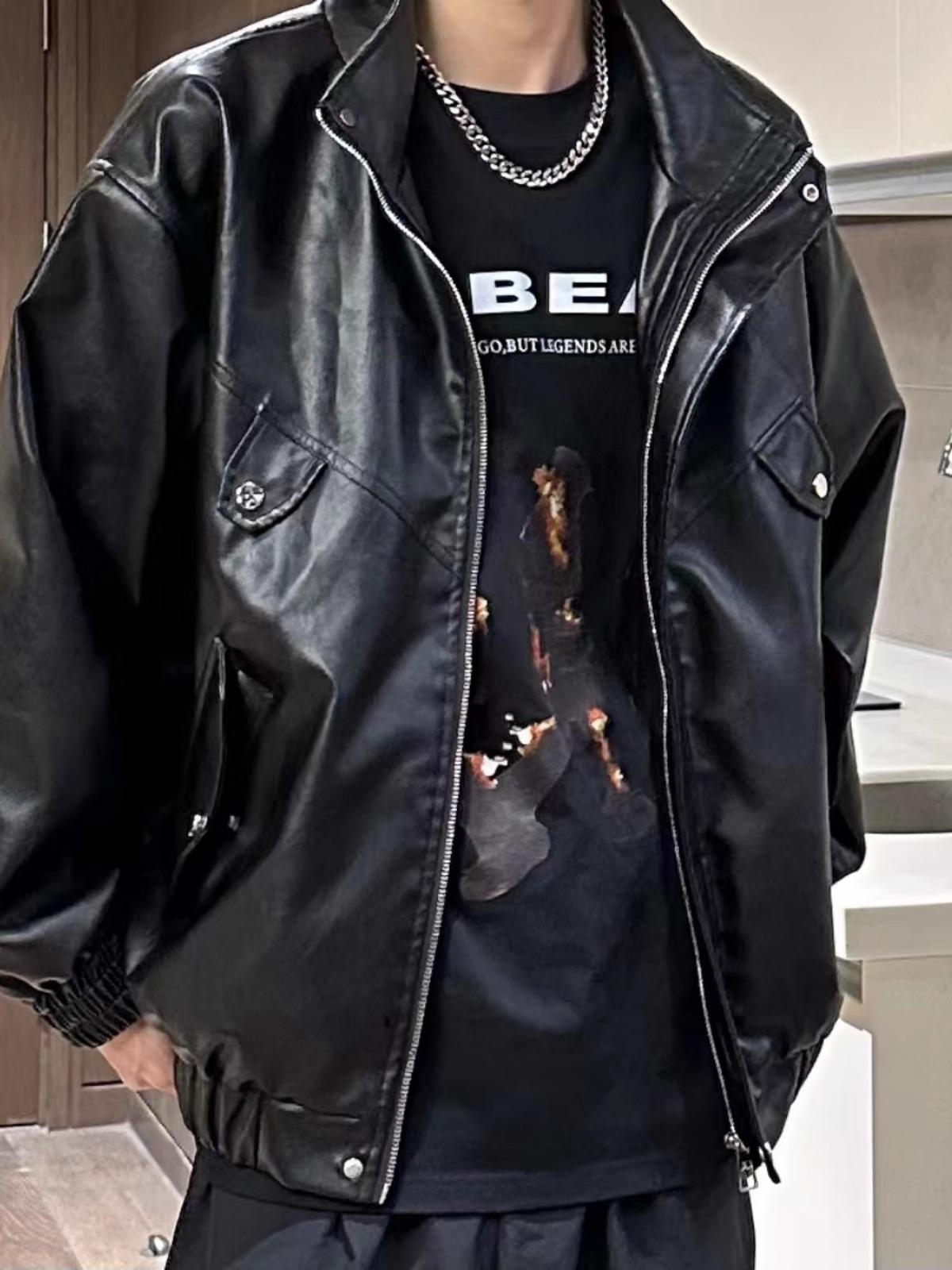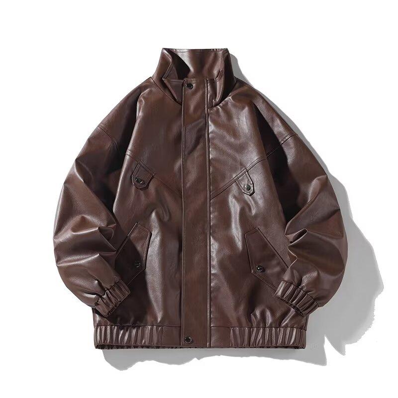 Compra Otoño e invierno, nueva ropa deportiva informal para parejas, ropa de motocicleta, abrigo de cuero personalizado retro holgado de talla grande al por mayor en Joom.pro
