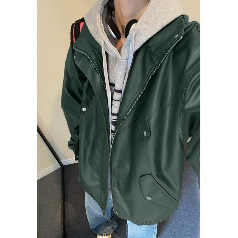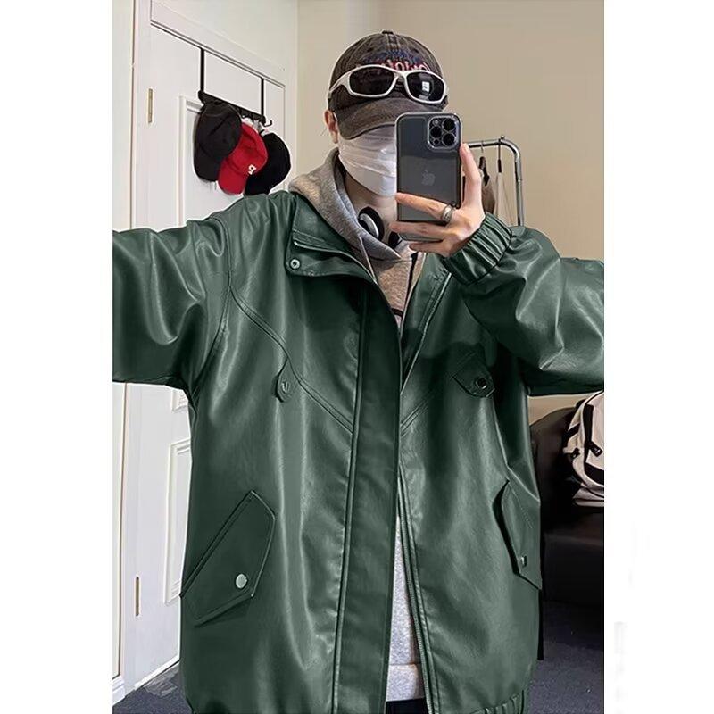 Otoño e invierno, nueva ropa deportiva informal para parejas, ropa de motocicleta, abrigo de cuero personalizado retro holgado de talla grande