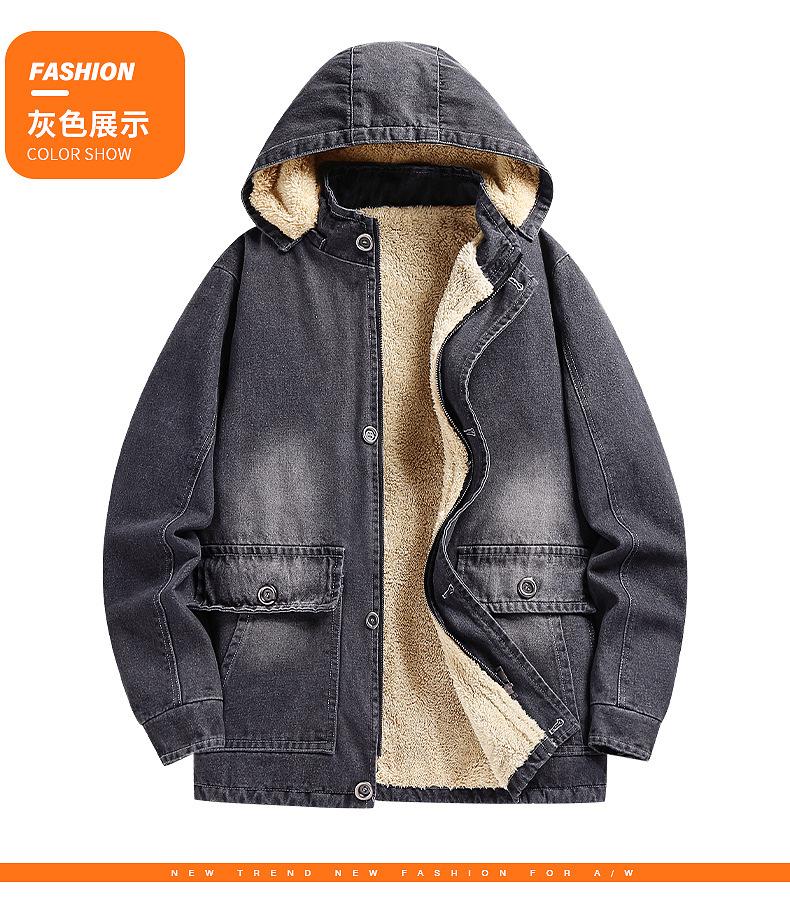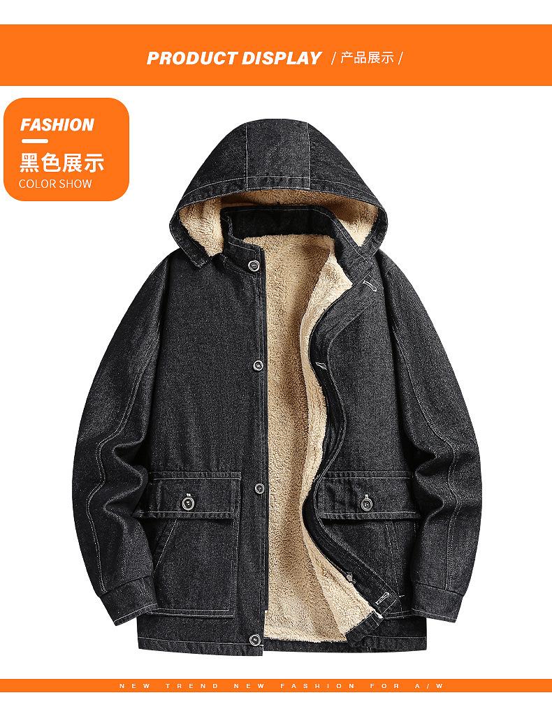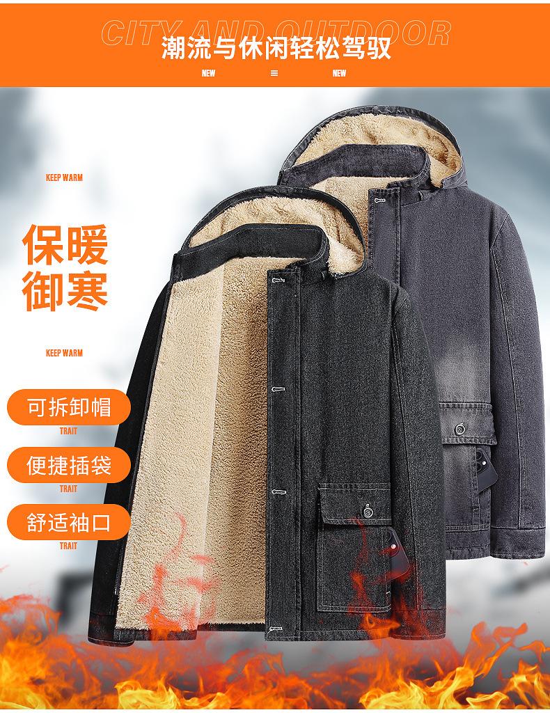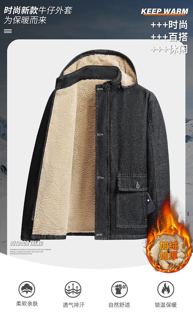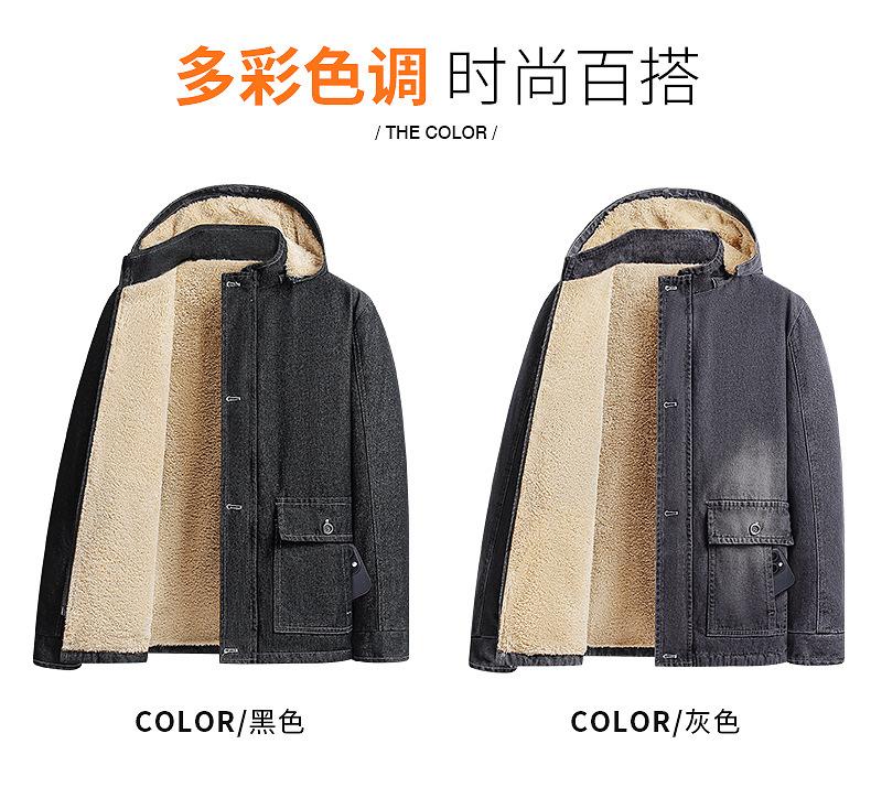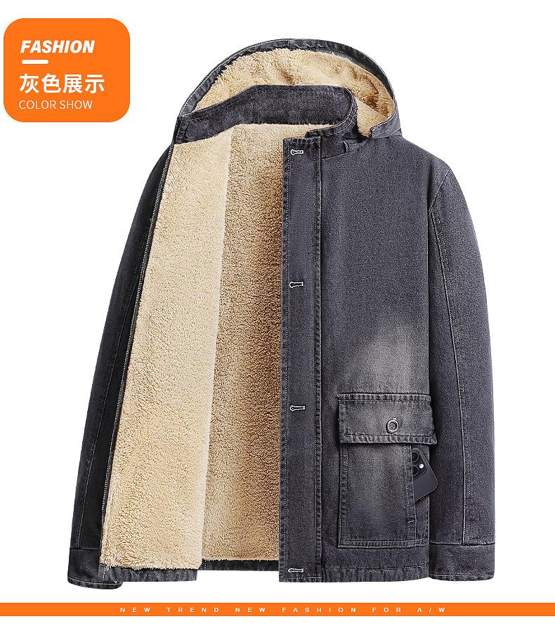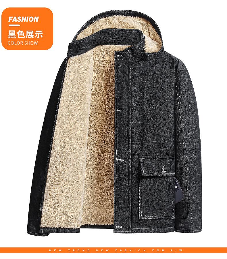 Chaqueta vaquera de otoño e invierno para hombre, nueva chaqueta con capucha cálida y gruesa con forro polar de invierno para papás de mediana edad y mayores.