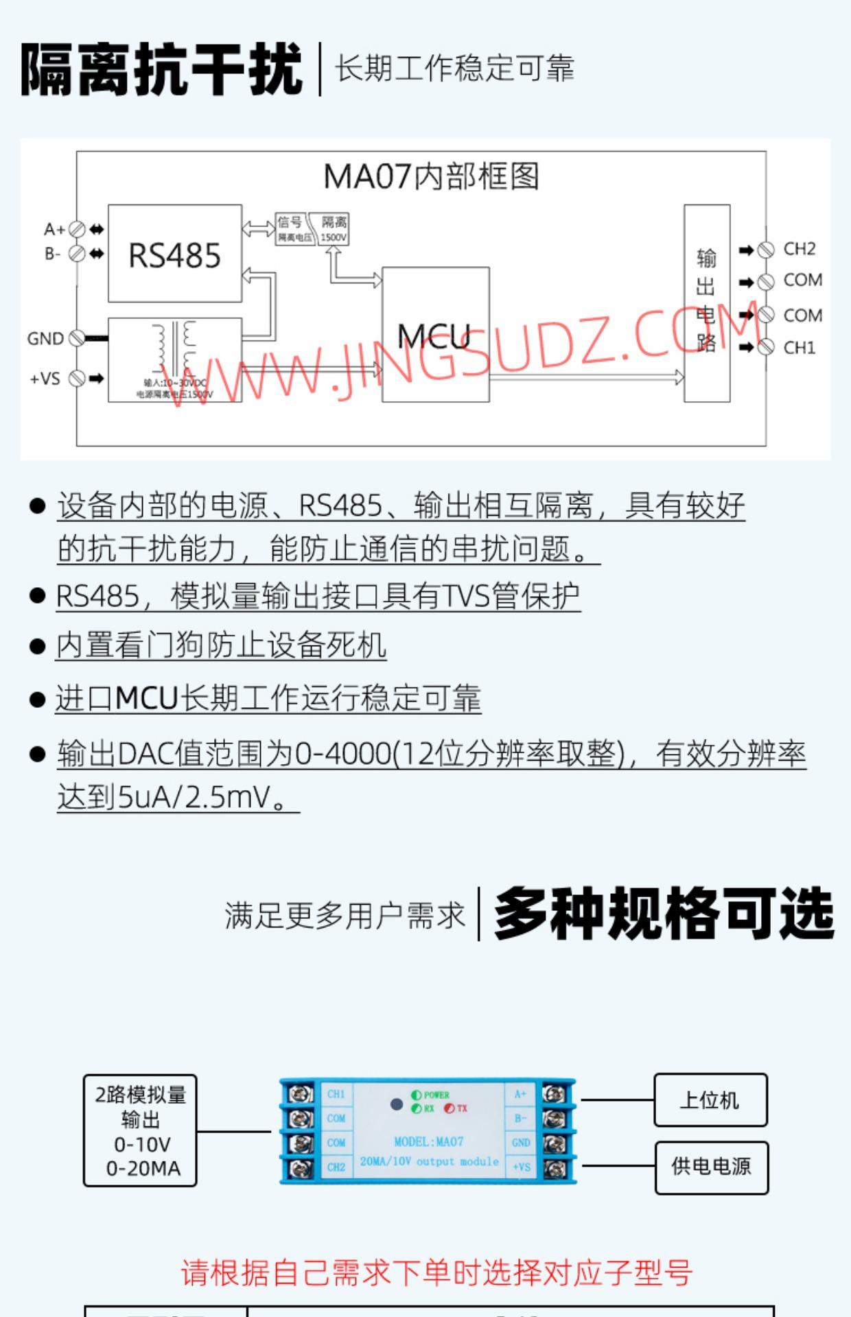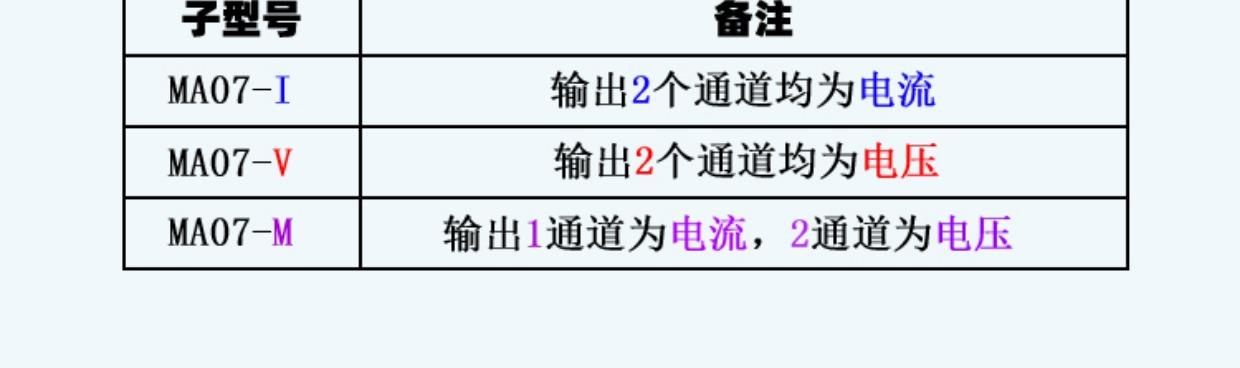Ma07-v voltage output, Ma07-i current output, Ma07-m one voltage output and one current output