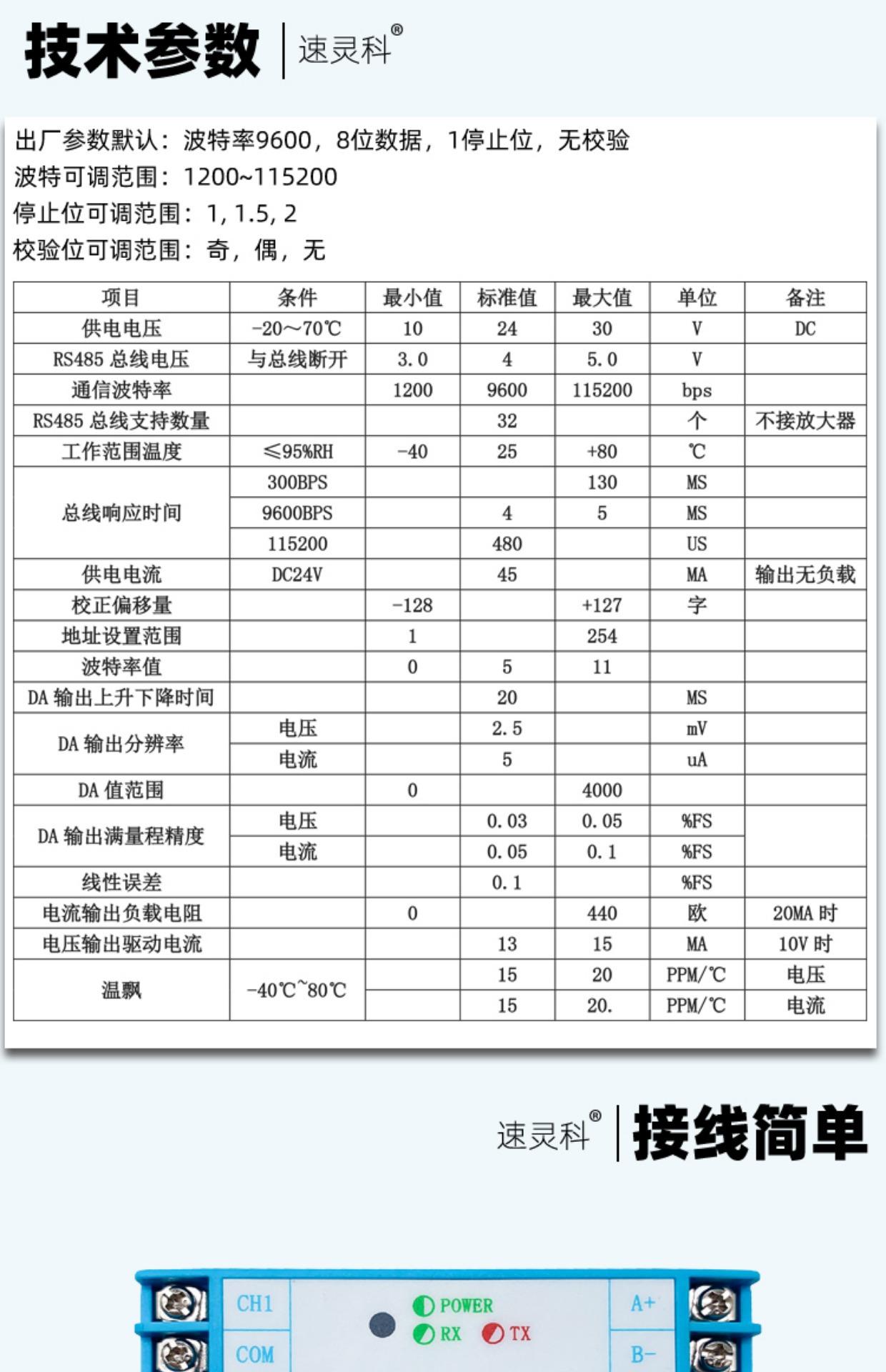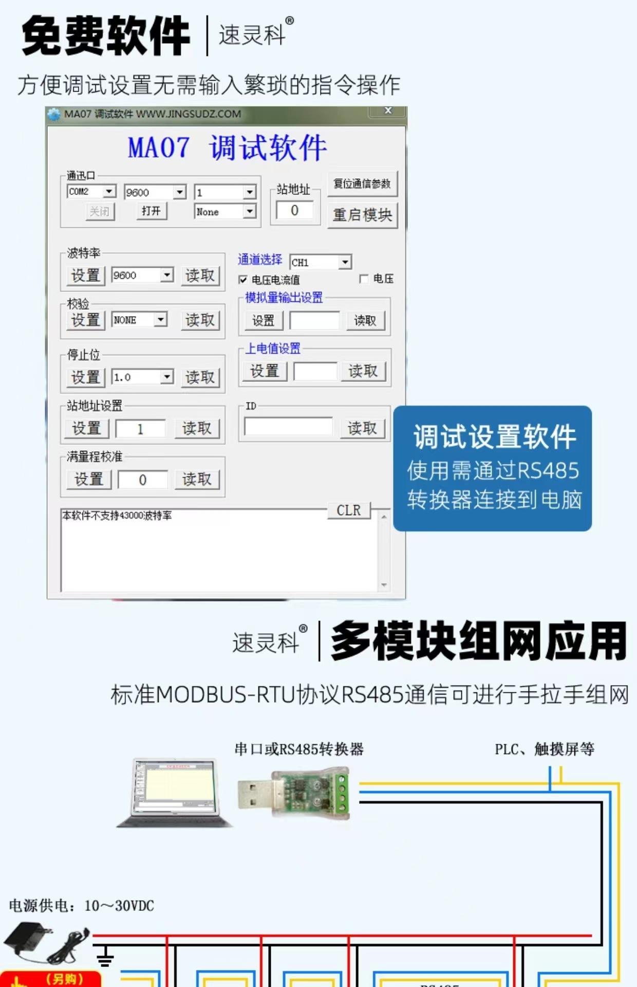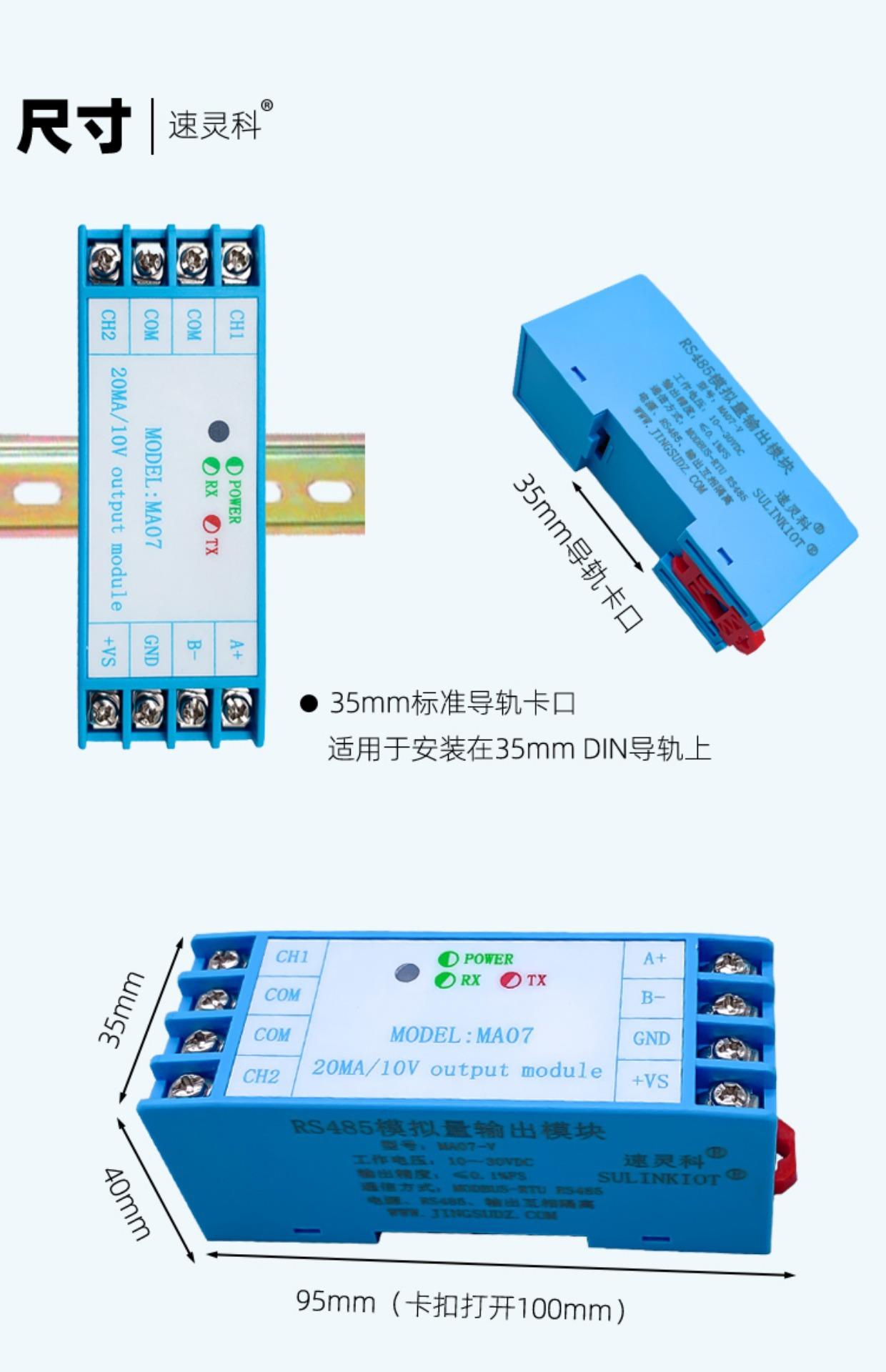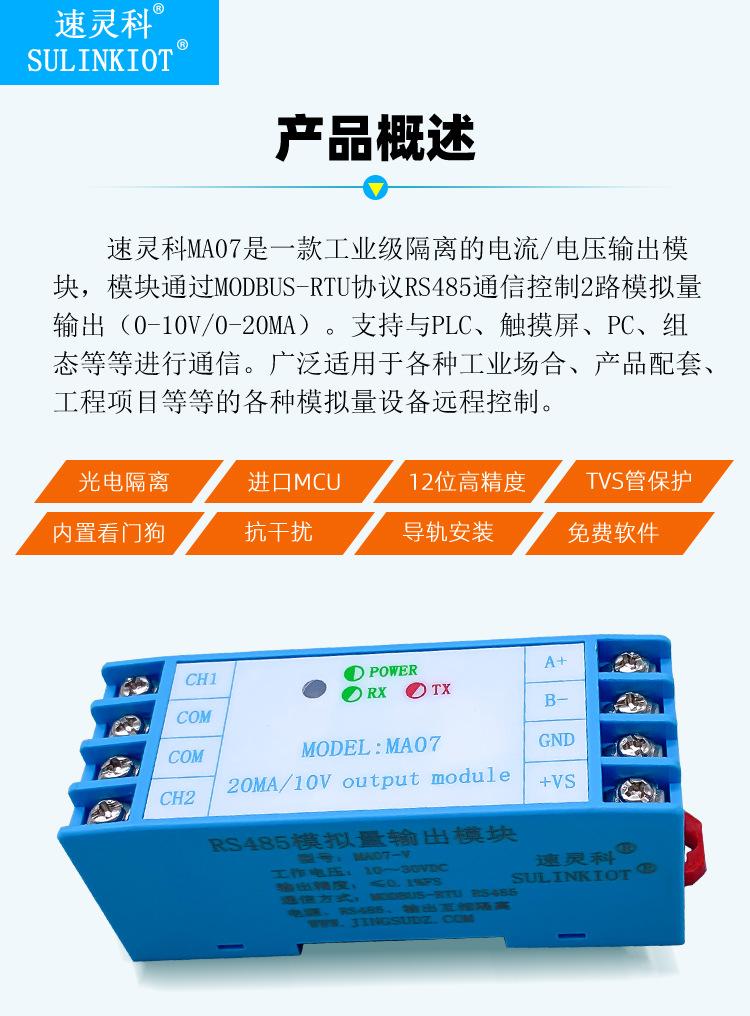 Comunicación RS485 a 2 canales corriente voltaje 0-10V 0-20MA señal salida de transmisor analógico MA07
