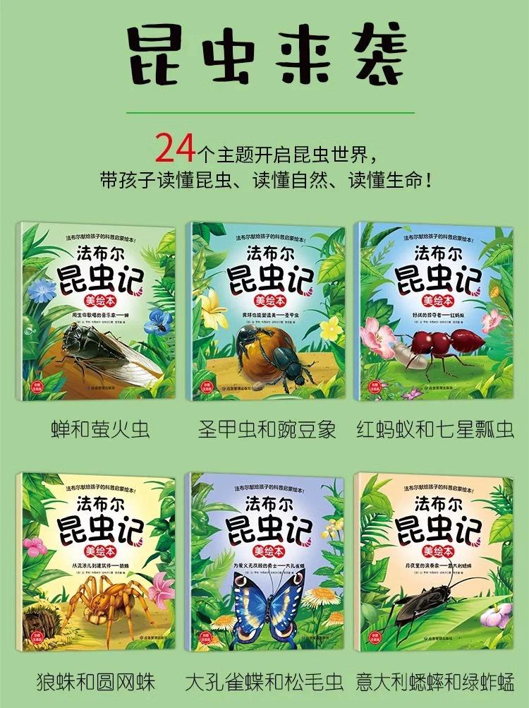 Libro ilustrado estadounidense Fabre Insects, conjunto completo de 12 imágenes a color, edición Zhuyin, para estudiantes de primaria, libros extracurriculares de divulgación científica.