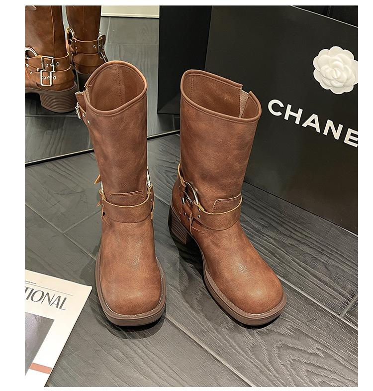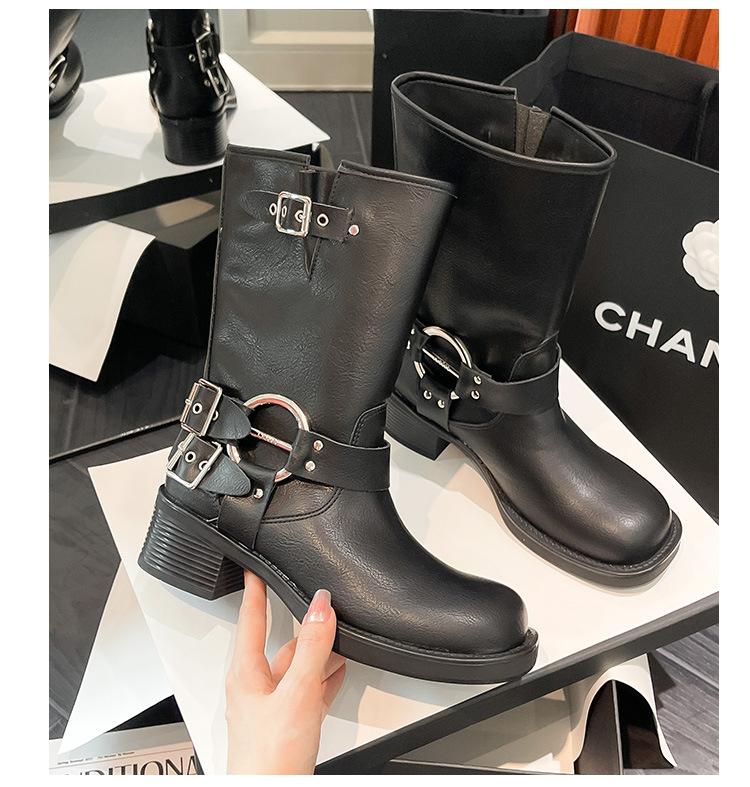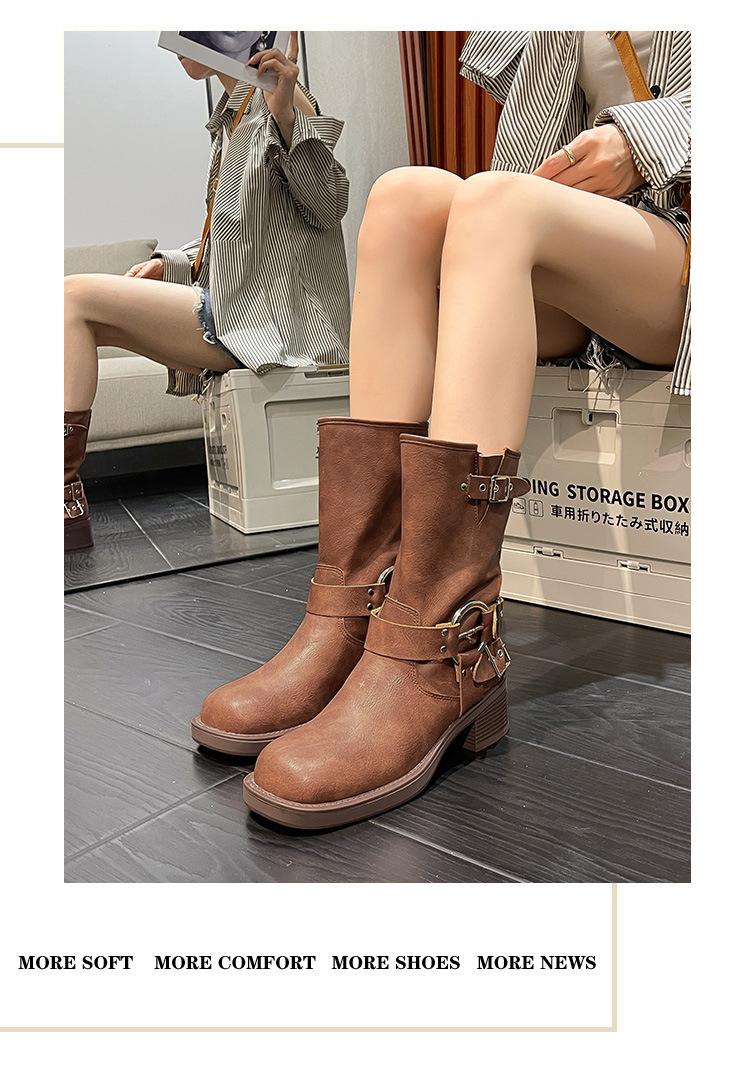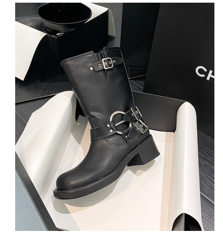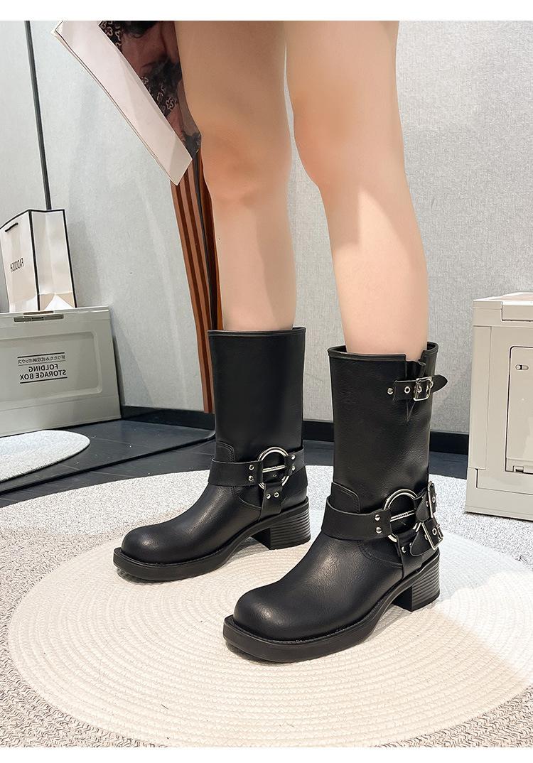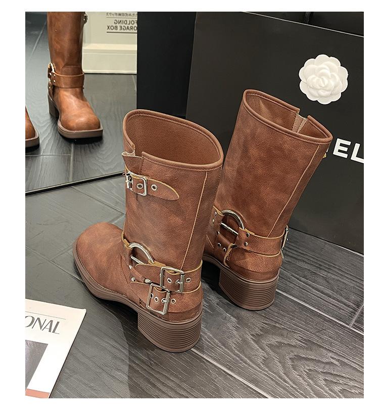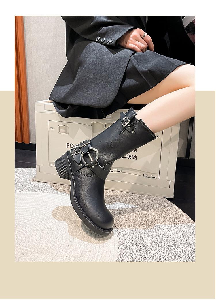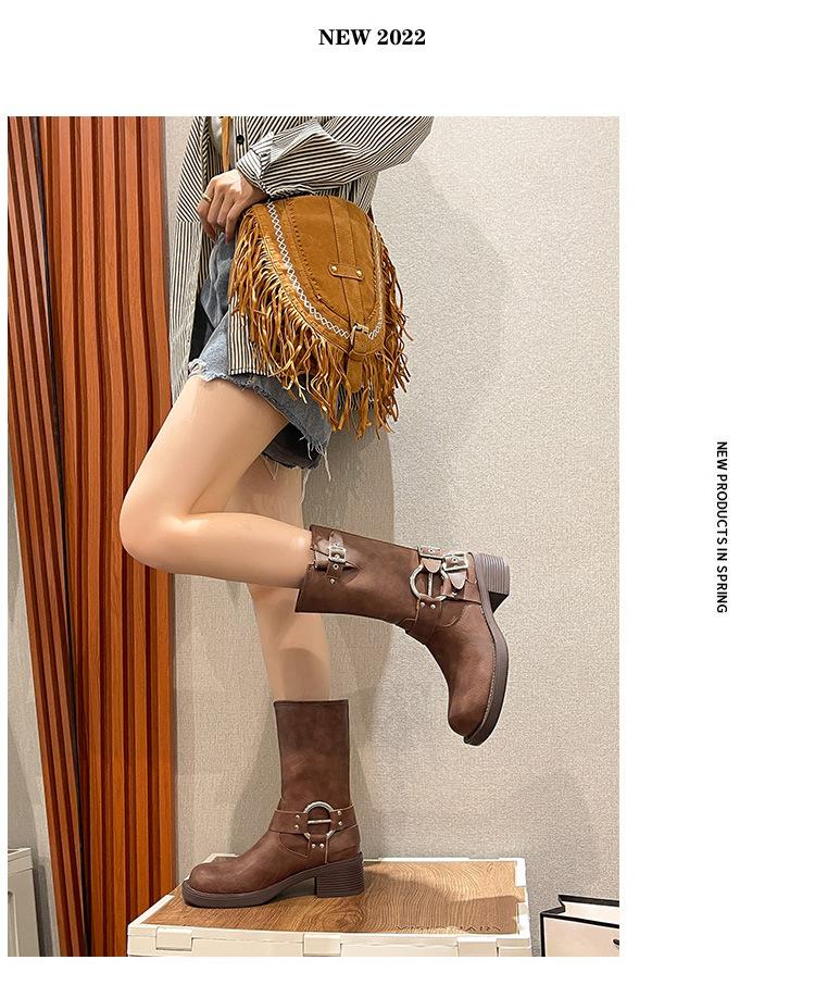 Compra Botas Vaqueras Western de Cuero Genuino 2023 Primavera y Verano Nuevas Estilo Británico Retro Combinan con Todo Hebilla Metálica Media Caña Botines Martin para Mujer al por mayor en Joom.pro