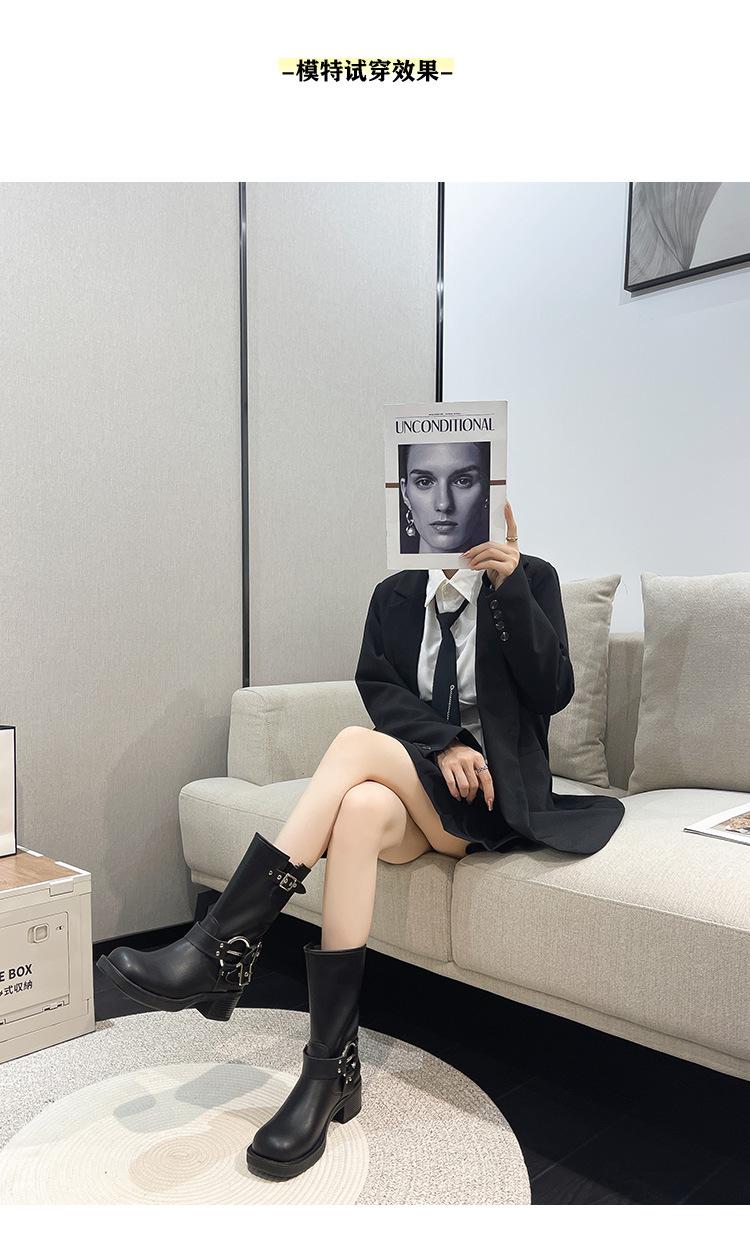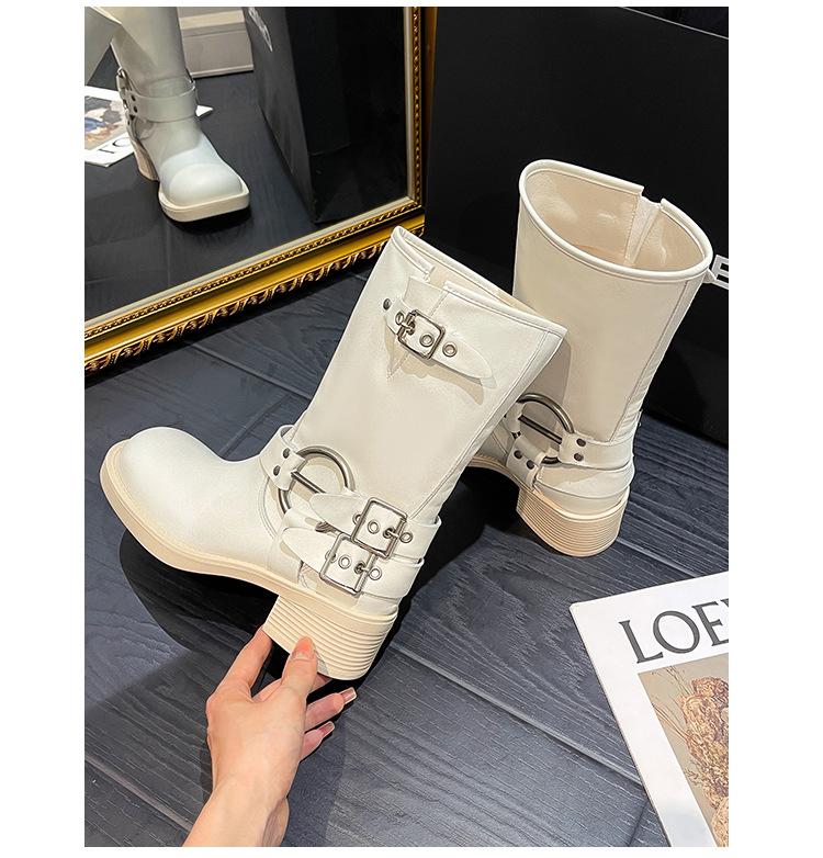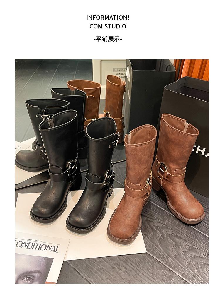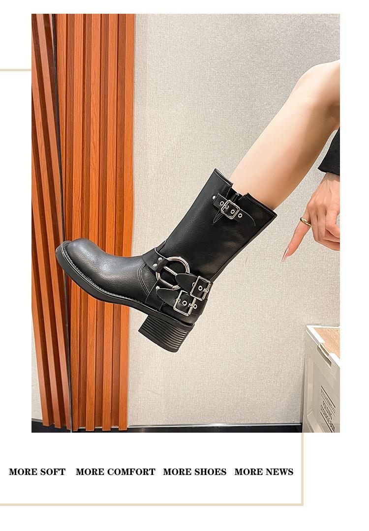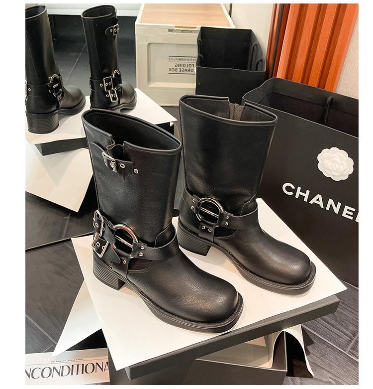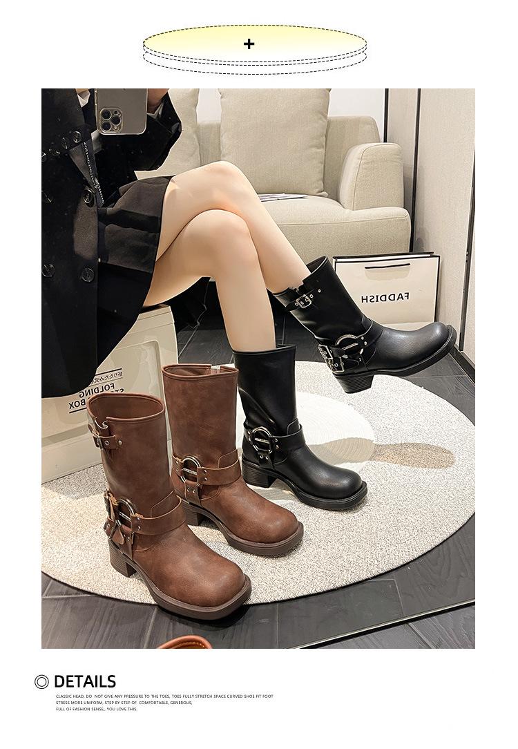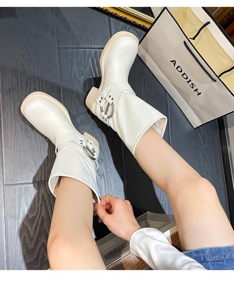 Compra Botas Vaqueras Western de Cuero Genuino 2023 Primavera y Verano Nuevas Estilo Británico Retro Combinan con Todo Hebilla Metálica Media Caña Botines Martin para Mujer al por mayor en Joom.pro