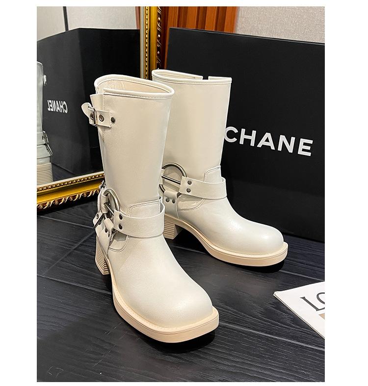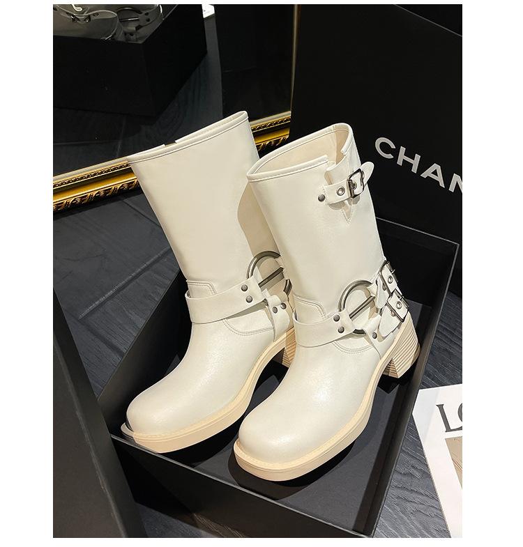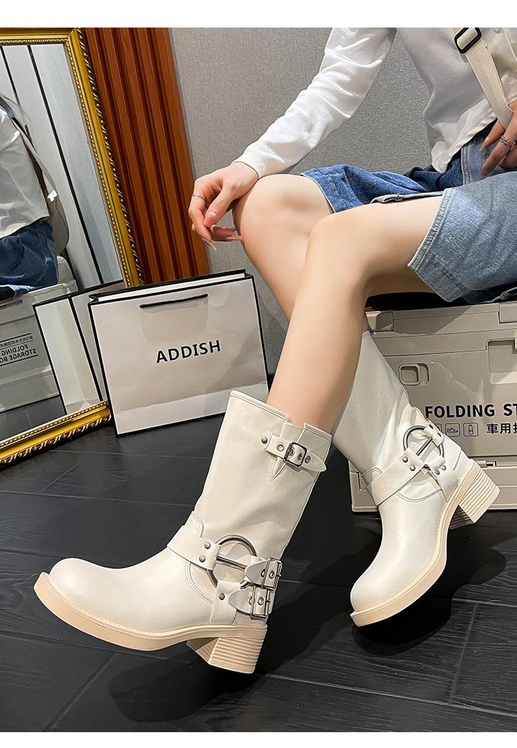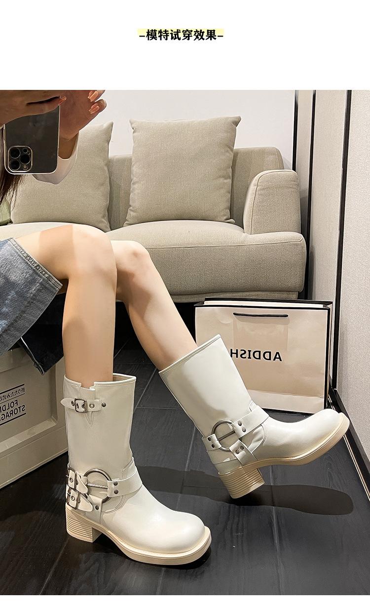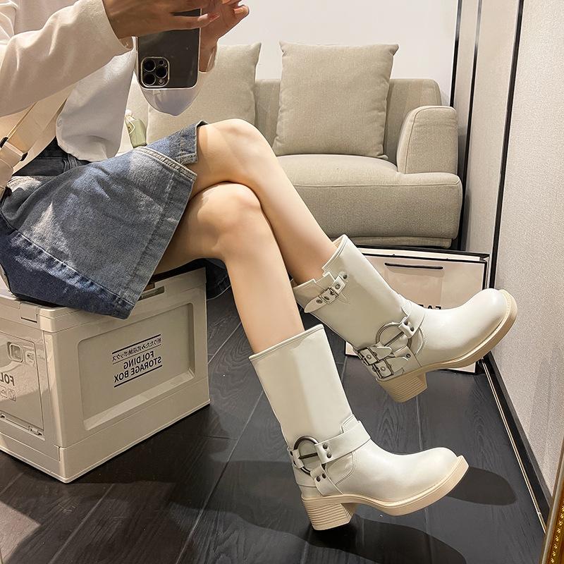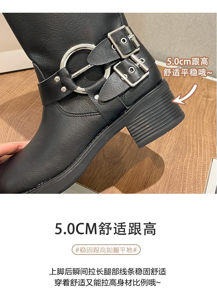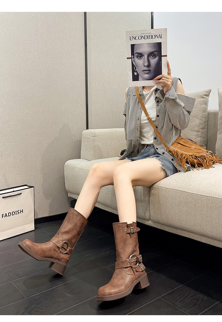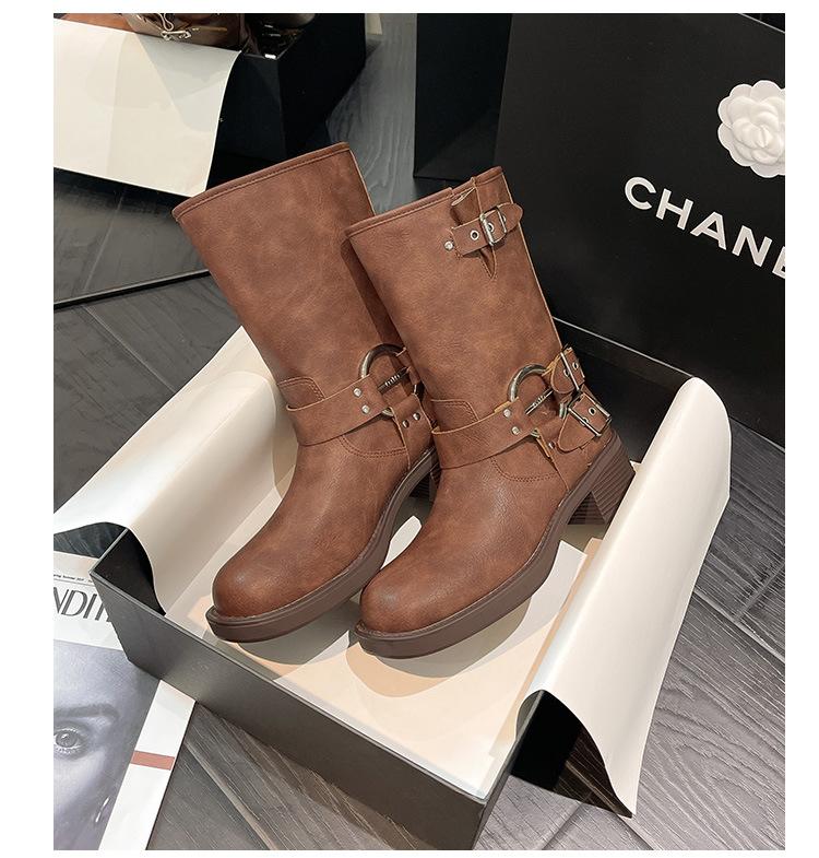 Compra Botas Vaqueras Western de Cuero Genuino 2023 Primavera y Verano Nuevas Estilo Británico Retro Combinan con Todo Hebilla Metálica Media Caña Botines Martin para Mujer al por mayor en Joom.pro