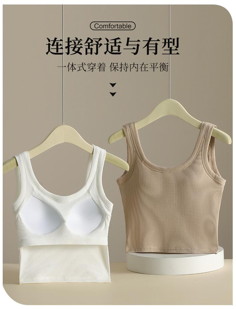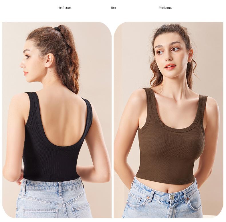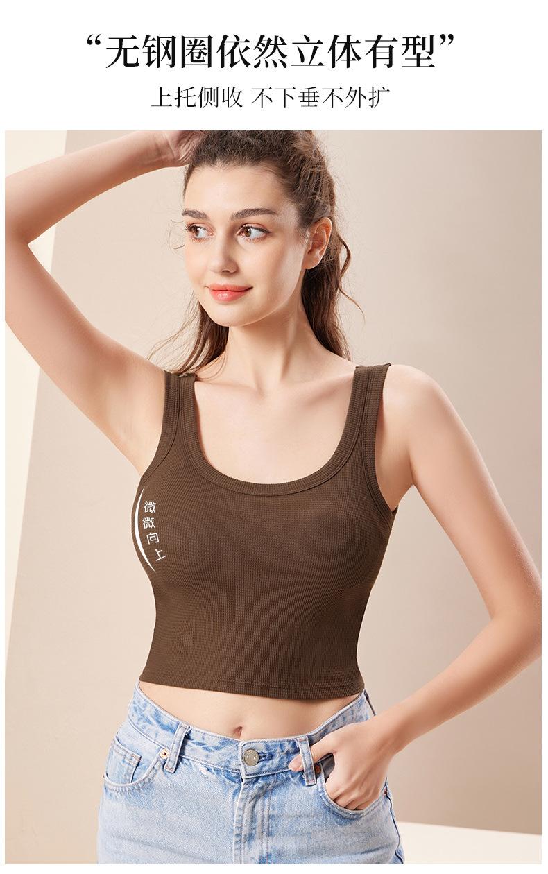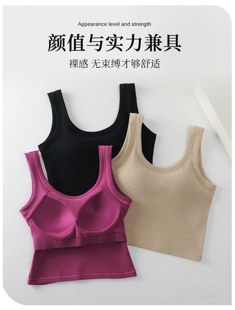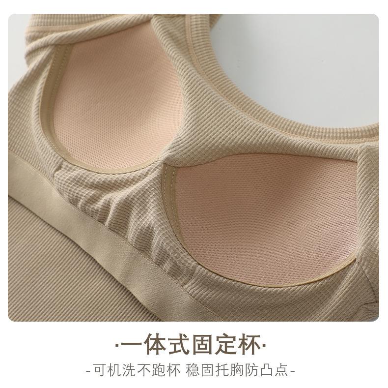 Ropa interior de espalda hermosa tipo gofre con almohadilla para el pecho, sujetador deportivo de una pieza para yoga, sujetador de ombligo, chaleco pequeño sin tirantes con pecho envuelto.