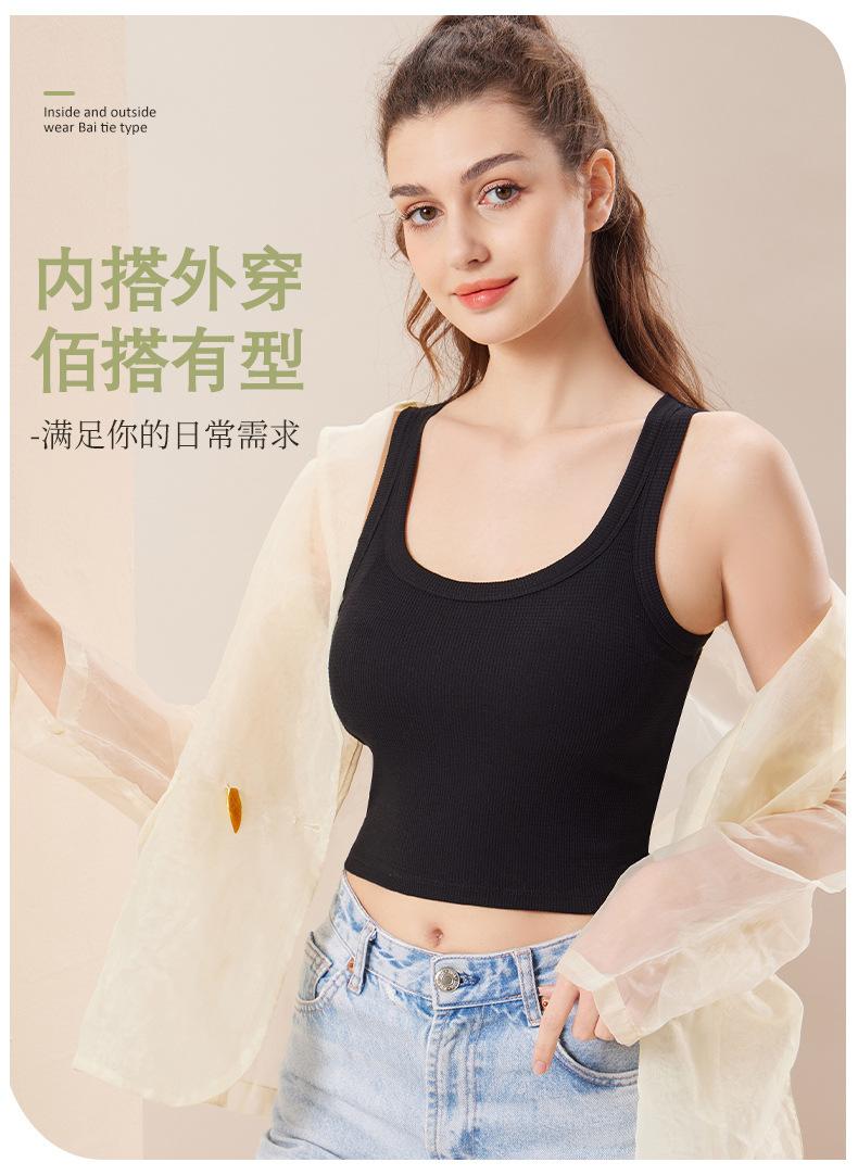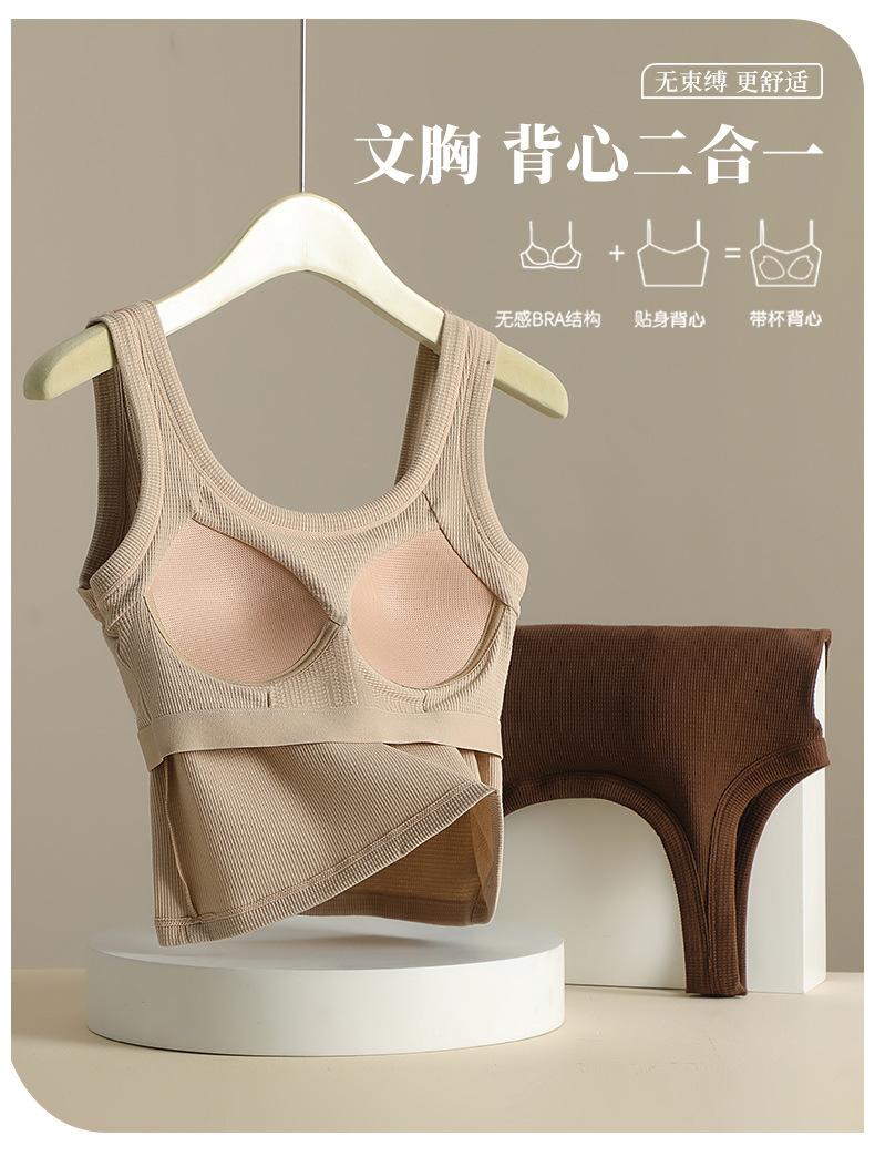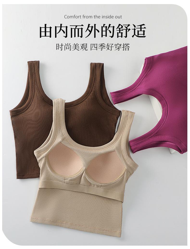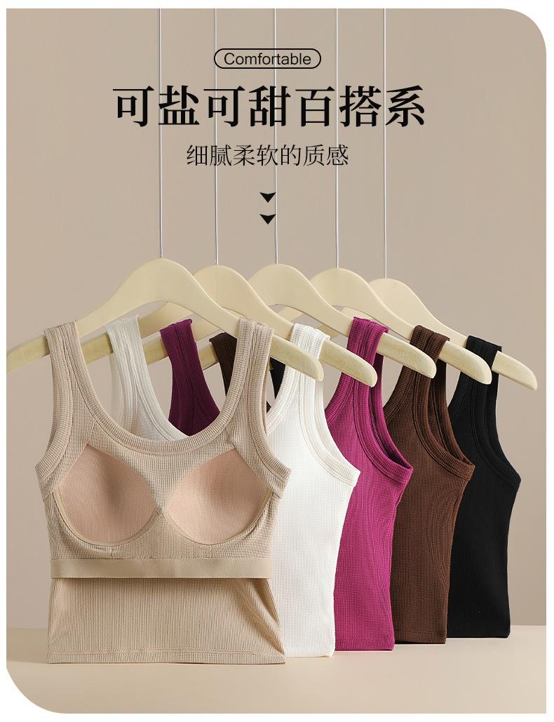 Ropa interior de espalda hermosa tipo gofre con almohadilla para el pecho, sujetador deportivo de una pieza para yoga, sujetador de ombligo, chaleco pequeño sin tirantes con pecho envuelto.