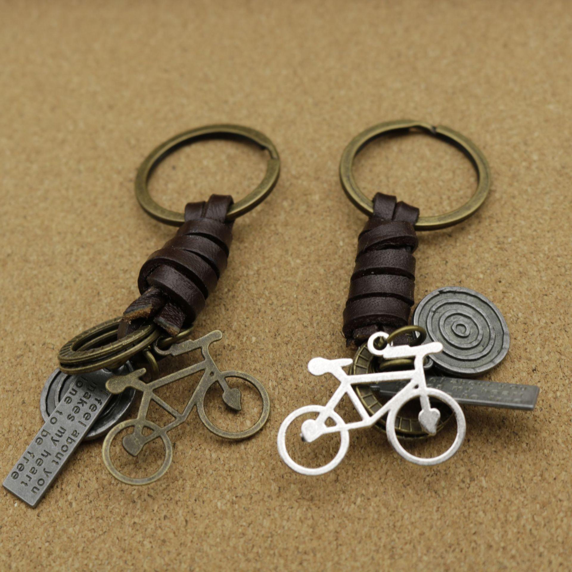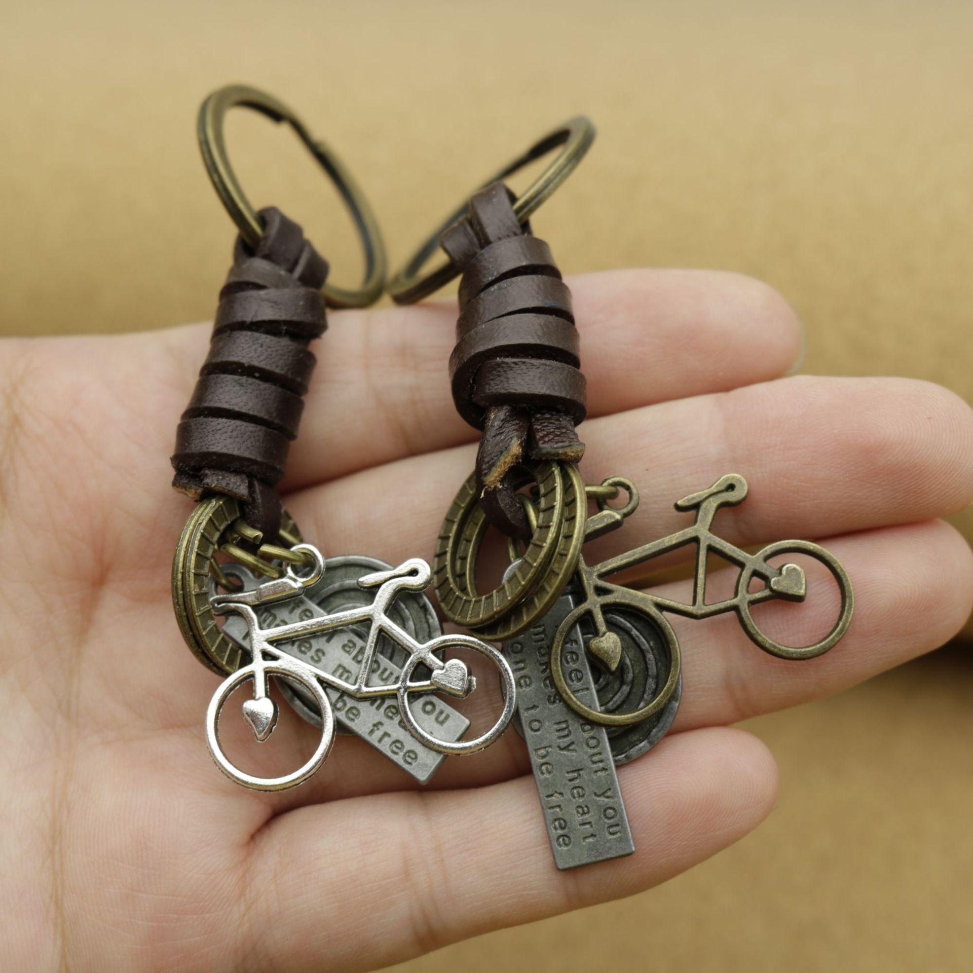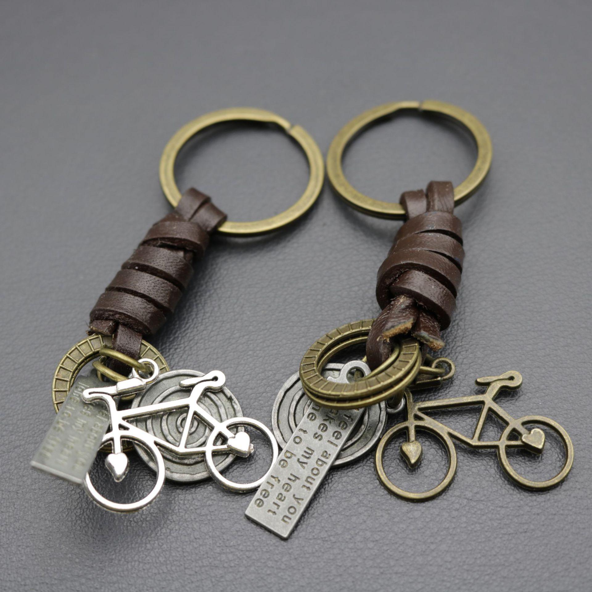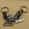 Llavero creativo de aleación de coche de carretera vintage de piel de vaca tejida 182