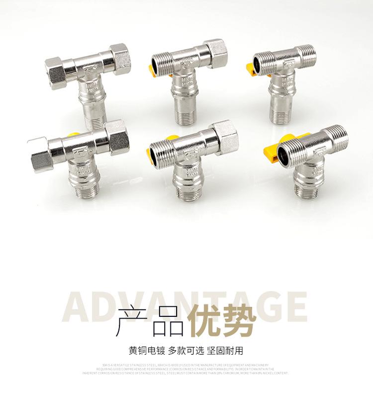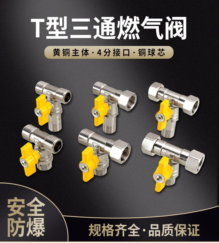 4 points external teeth three-way gas valve, 4 points left union-middle and long double external tooth gas val...
