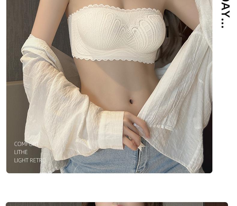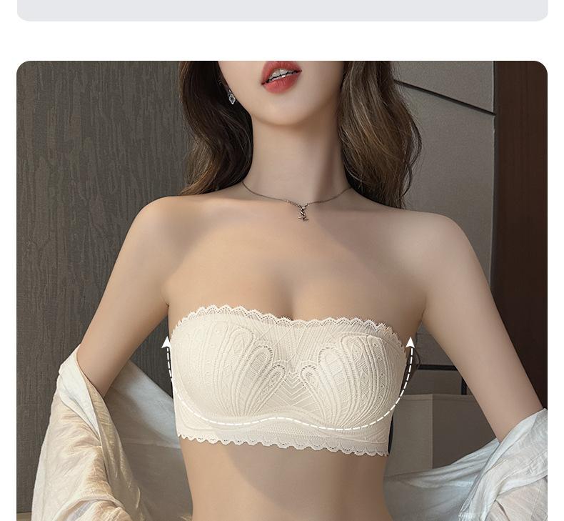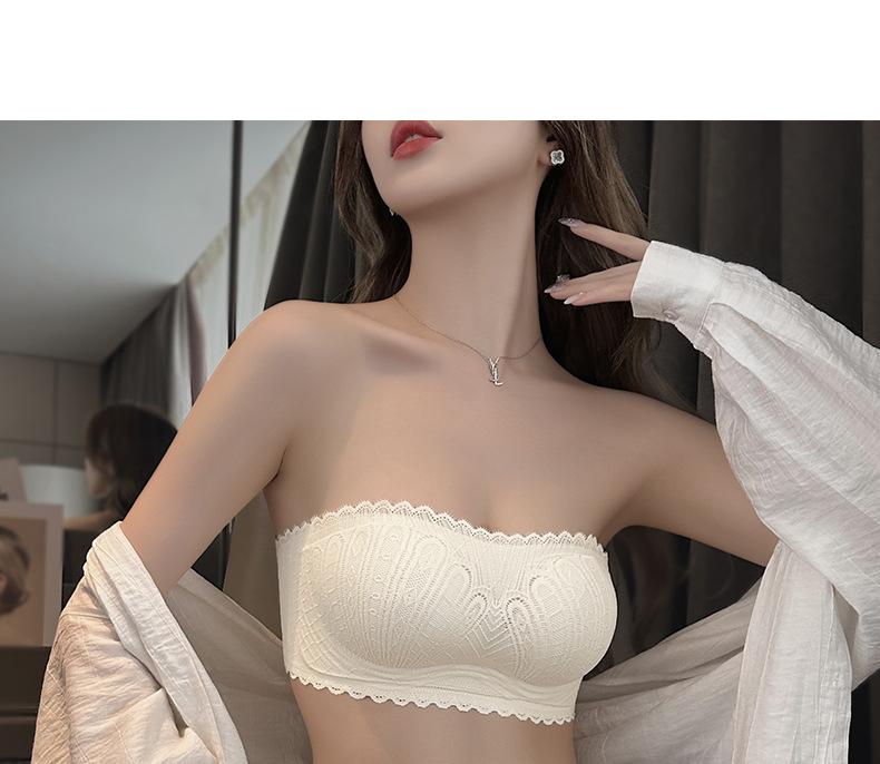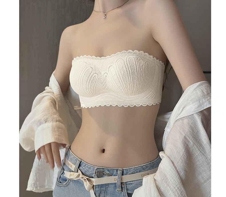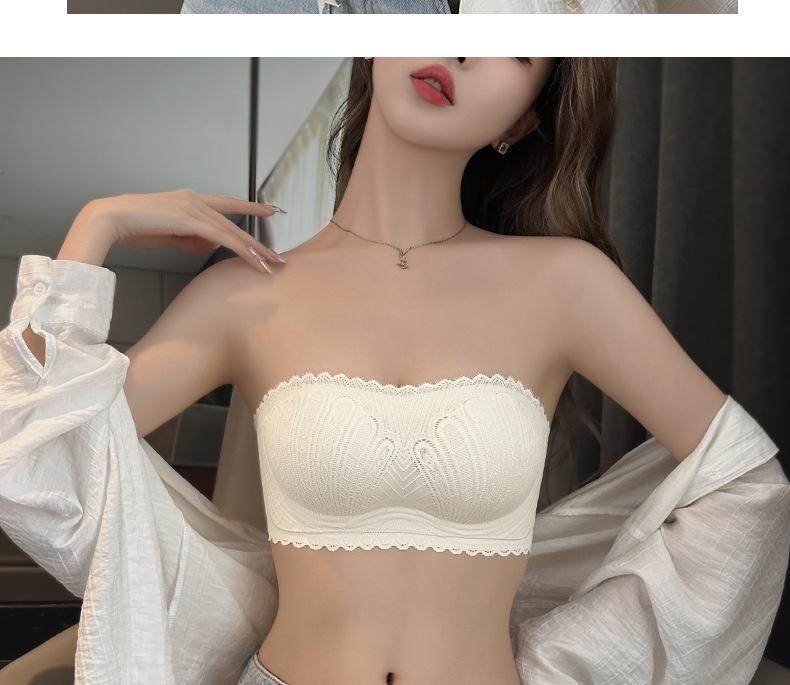 Ropa interior sin tirantes para mujer, pecho pequeño, push-up, sin aros, top con tira de gelatina, antideslizante, verano, blanco, top de tubo