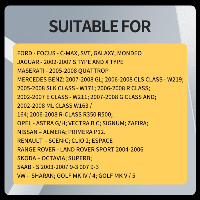 Mercedes-Benz: 2007-2008 GL; 2006-2008 Clase CLS - W219; 2005-2008 Clase SLK - W171; 2006-2008 Clase R; 2002-2007 Clase E - W211; 2007-2008 Clase G y; 2002-2008 Clase ML W163/164; 2006-2008 Clase R R350 R500;