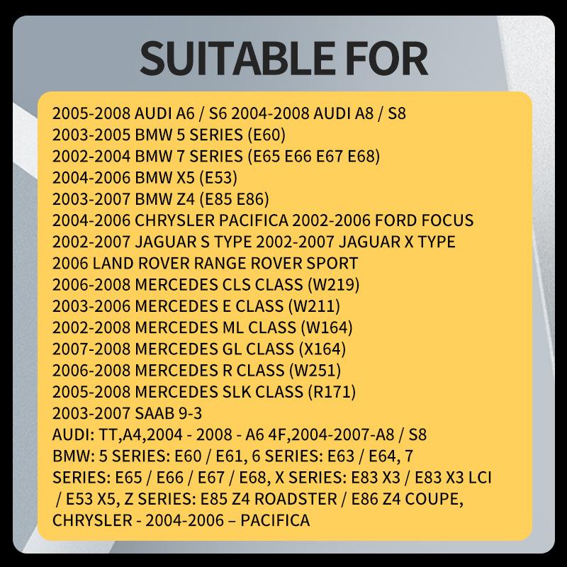BMW: Serie 5: E60 / E61, Serie 6 E63 / E64, Serie 7: E65 / E66 / E67 / E68, Serie X: E83 X3 / E83 X3 LCI / E53 X5, Serie Z: E85 Z4 Roadster / E86 Z4 Coupé,